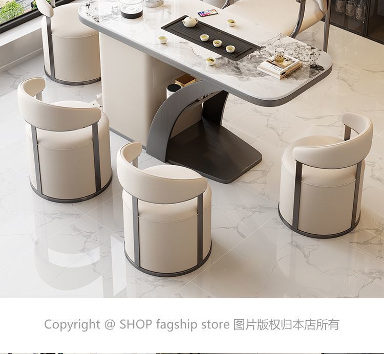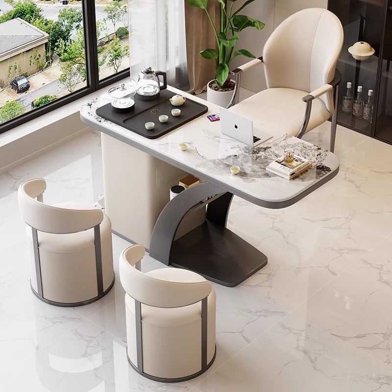 발코니 차 테이블과 의자 조합 새로운 작은 고급 암판 주전자 통합 가정용 작은 차 테이블 모바일 차 테이블스토어 가기