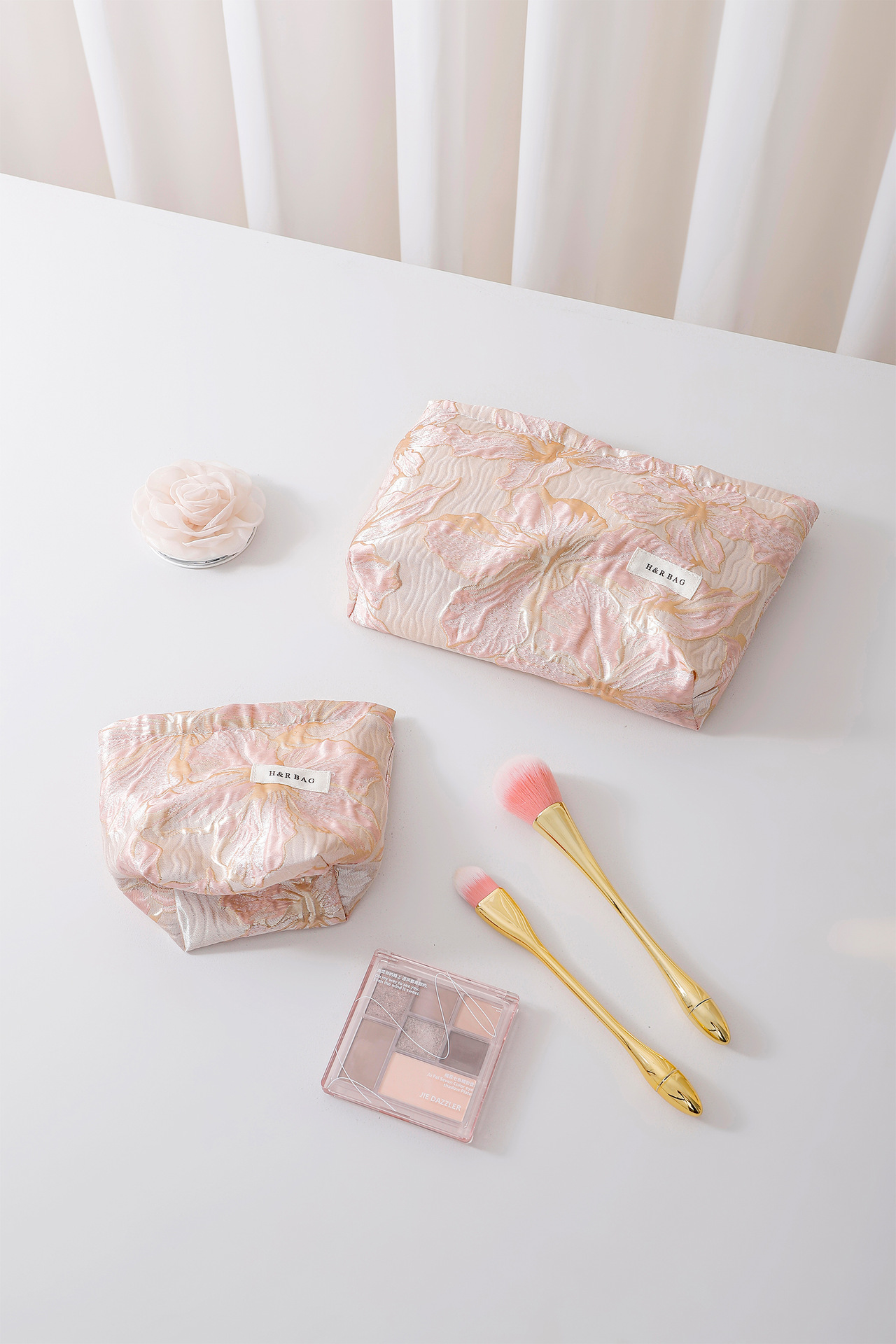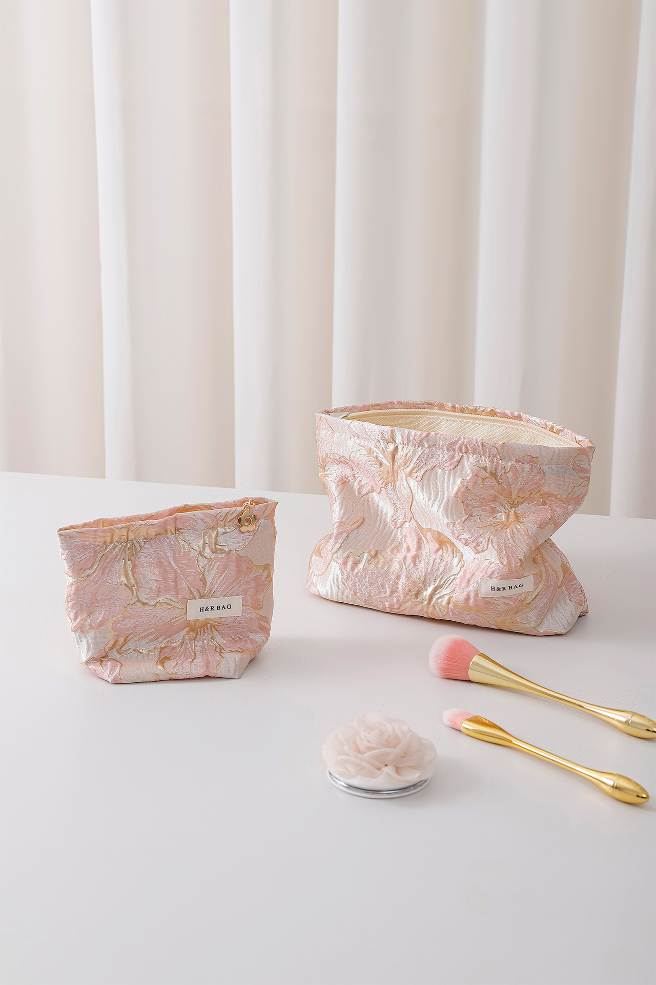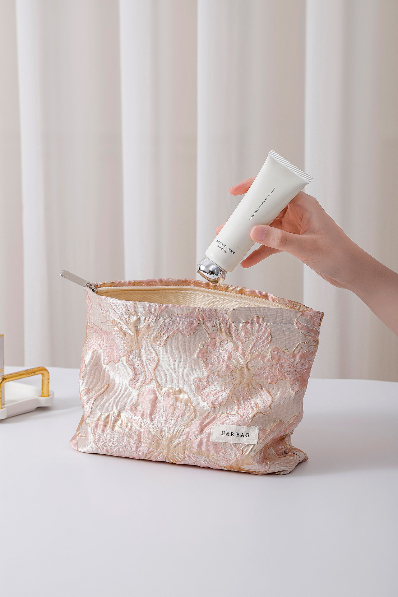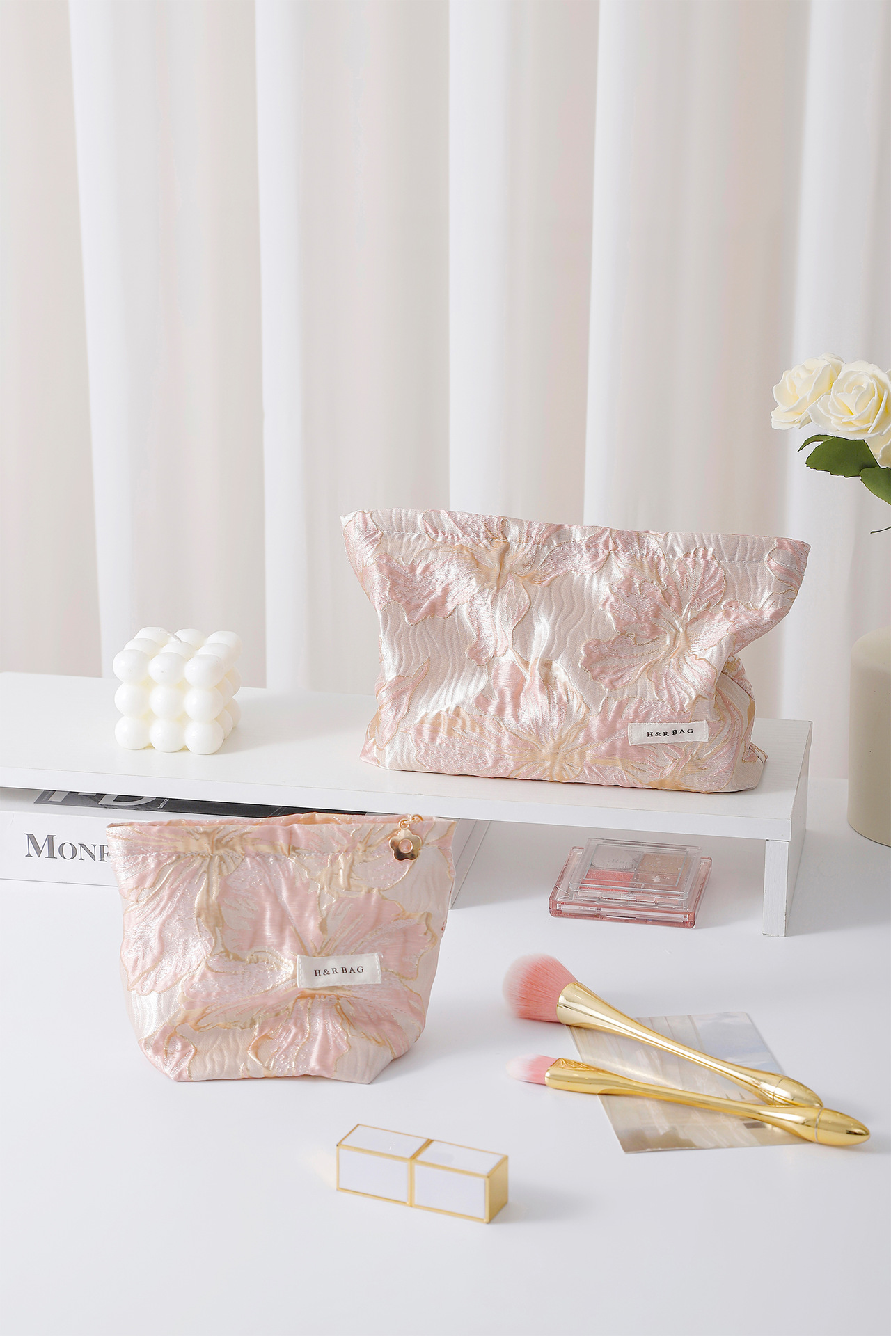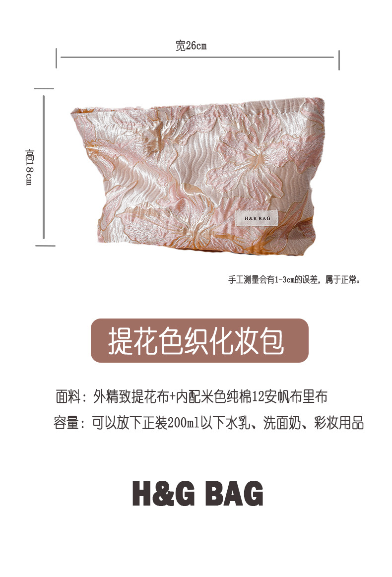 새로운 스타일 신선한 자카드 꽃 화장품 가방 대용량 여행 스킨 케어 보관 가방 클러치 가방 내부 가방