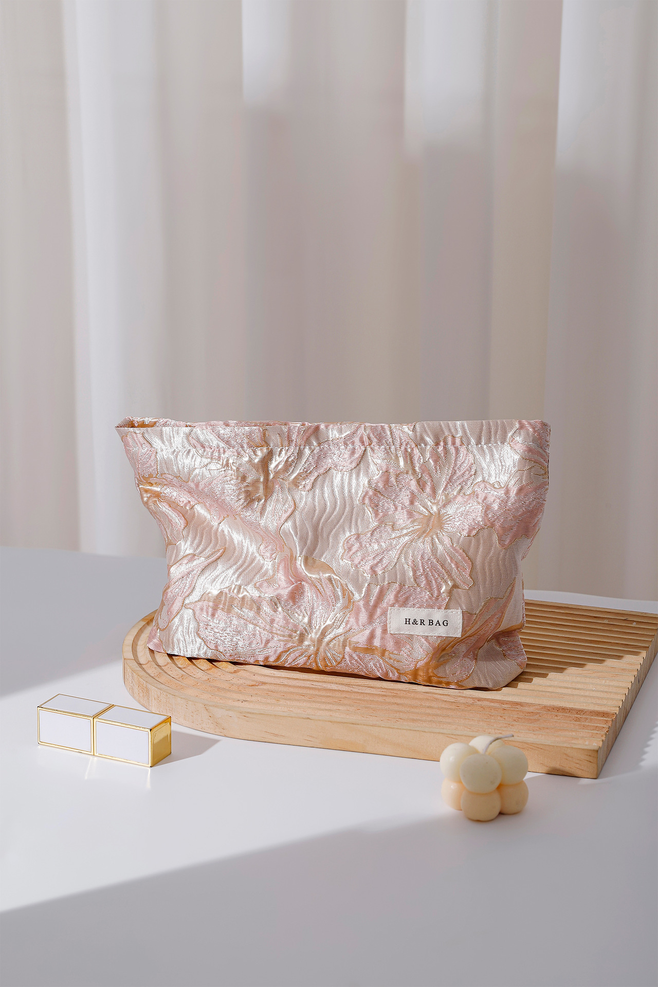 새로운 스타일 신선한 자카드 꽃 화장품 가방 대용량 여행 스킨 케어 보관 가방 클러치 가방 내부 가방스토어 가기
