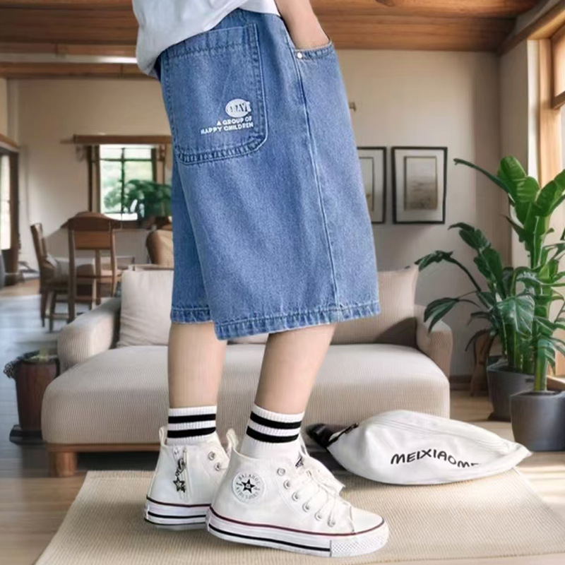어린이 여름 소년 반바지 얇은 데님 바지 남성용 느슨한 캐주얼 바지 아동복 새로운 트렌디 바지스토어 가기