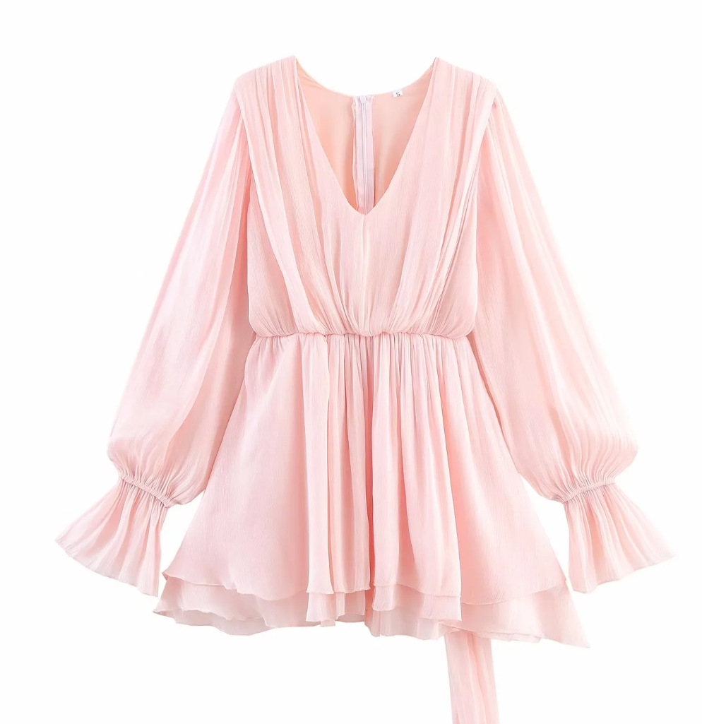 • 브이넥 핑크 드레스