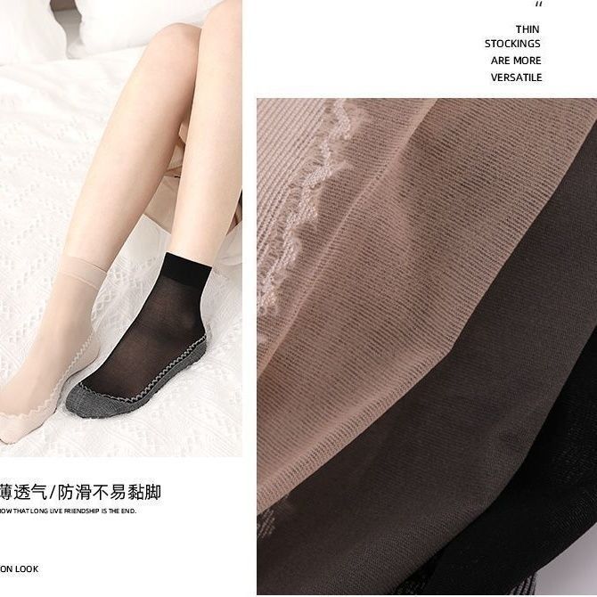 봄과 여름 얇은 코어 포장 실크면 바닥 스틸 와이어 양말 여성용 실크 스타킹 안티 후크 실크와 면화 땀 흡수성 통기성 짧은 스타킹스토어 가기