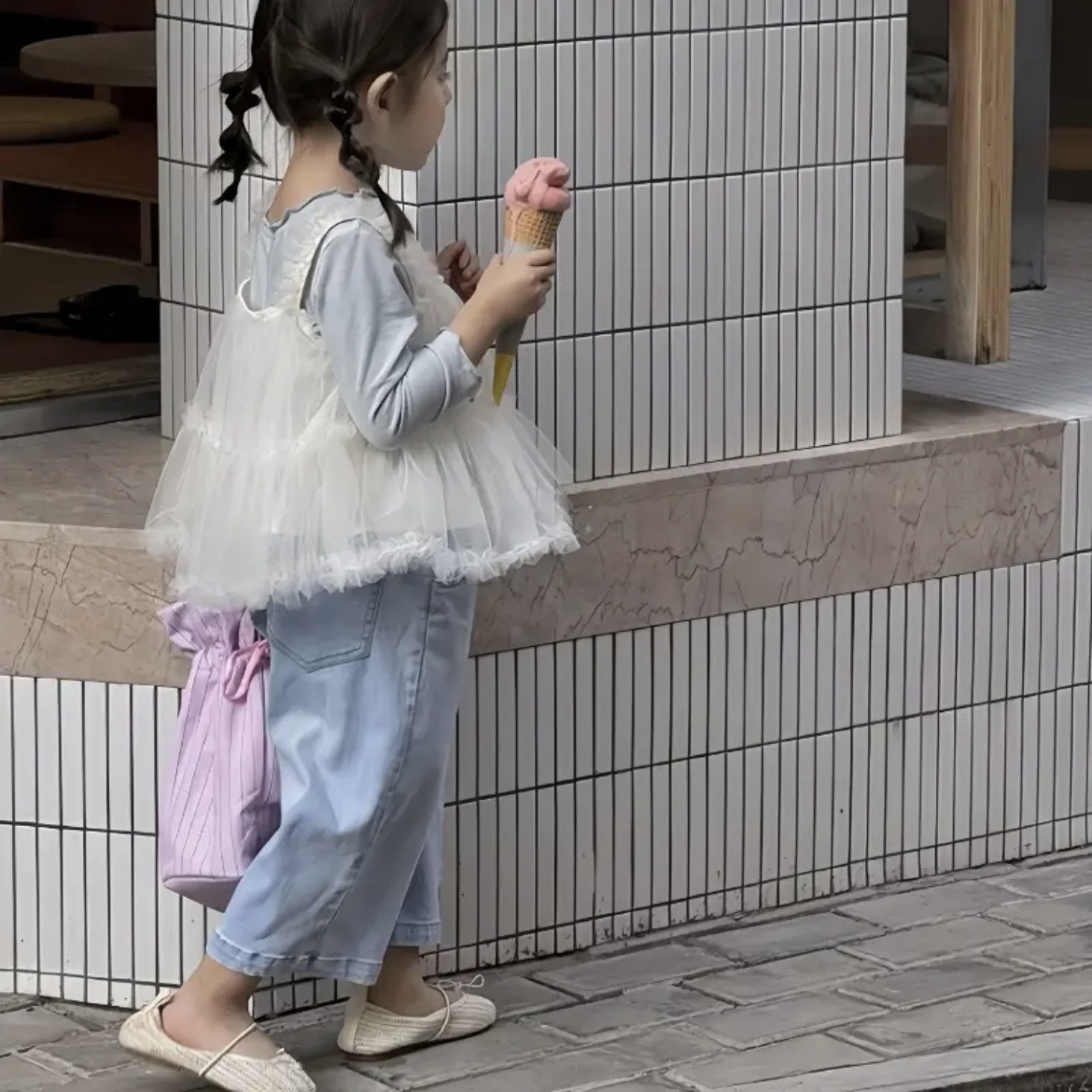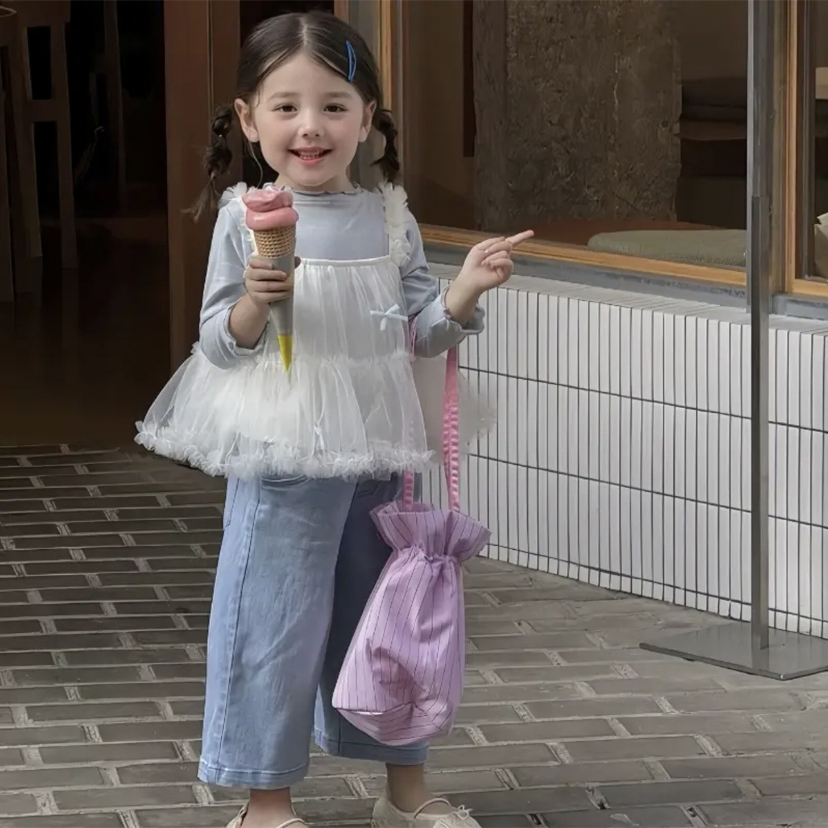 2025 년 봄 새로운 레이스 활 조끼 슬링 3 피스 세트 한국 패션 어린 소녀를위한 달콤한 3 피스 세트스토어 가기