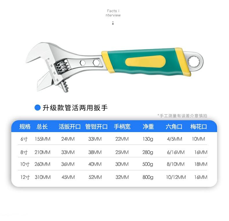 • 8inch 조정 가능한 렌치 - 튜브 가동 이중 사용