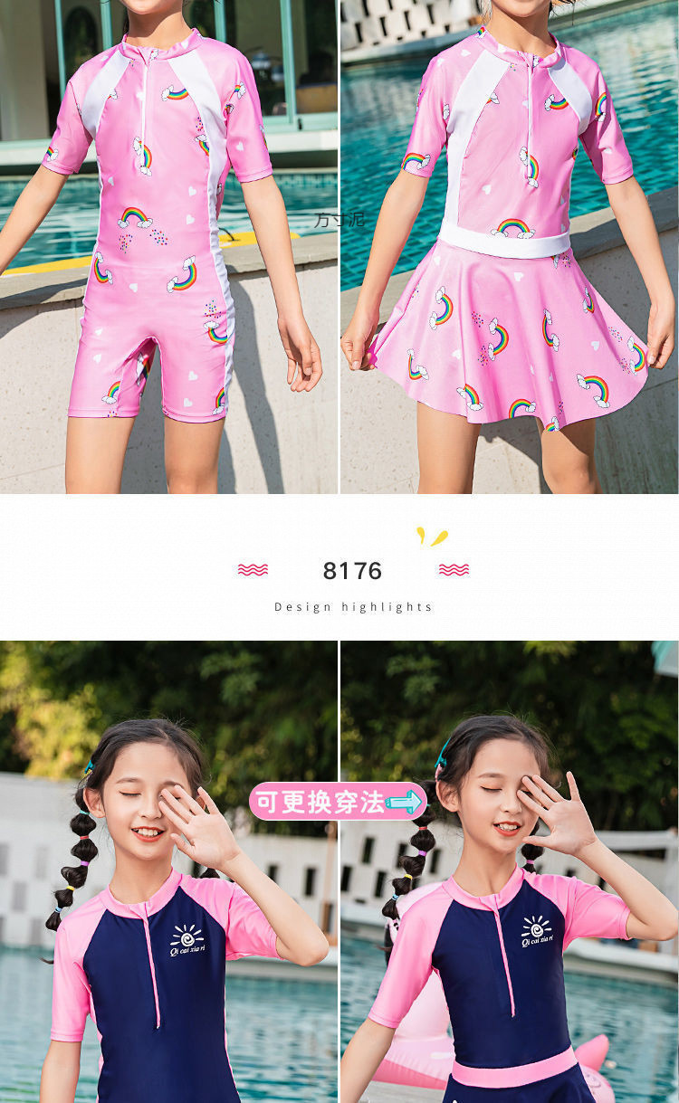 소년 소녀를위한 어린이 수영복 선스크린 반팔 정장 큰 아이와 소녀를위한 수영복 빠른 건조 수영복