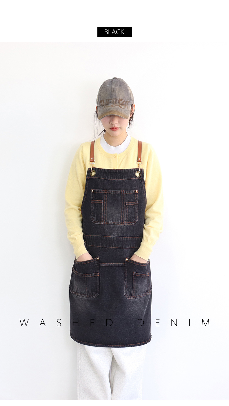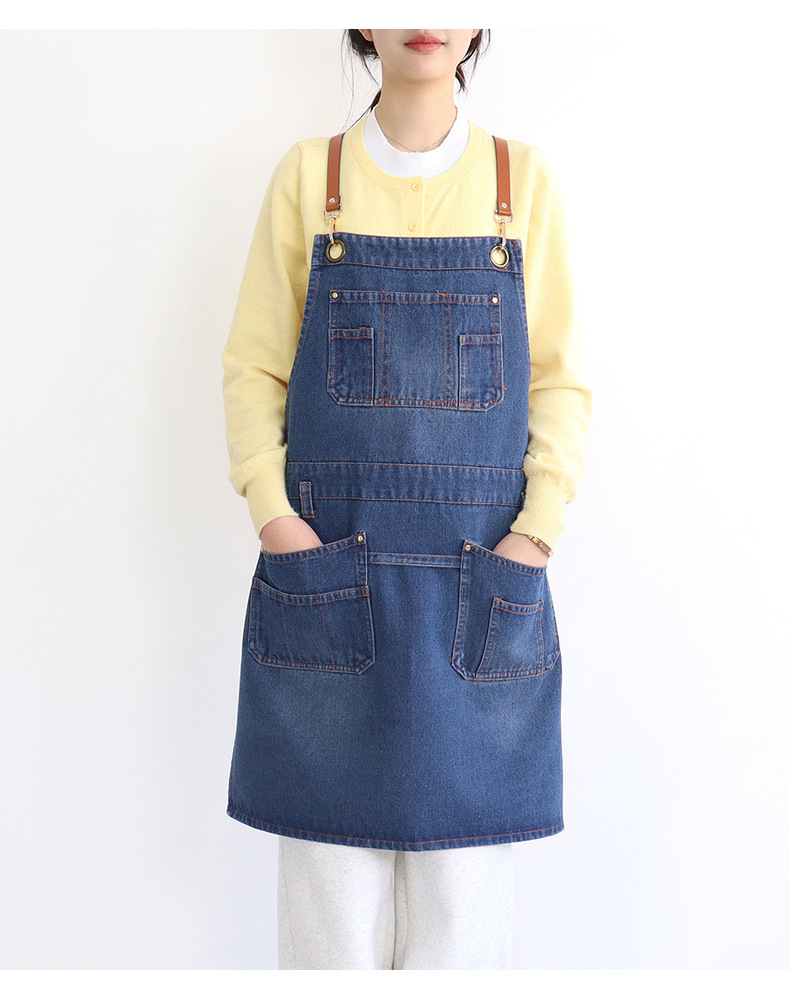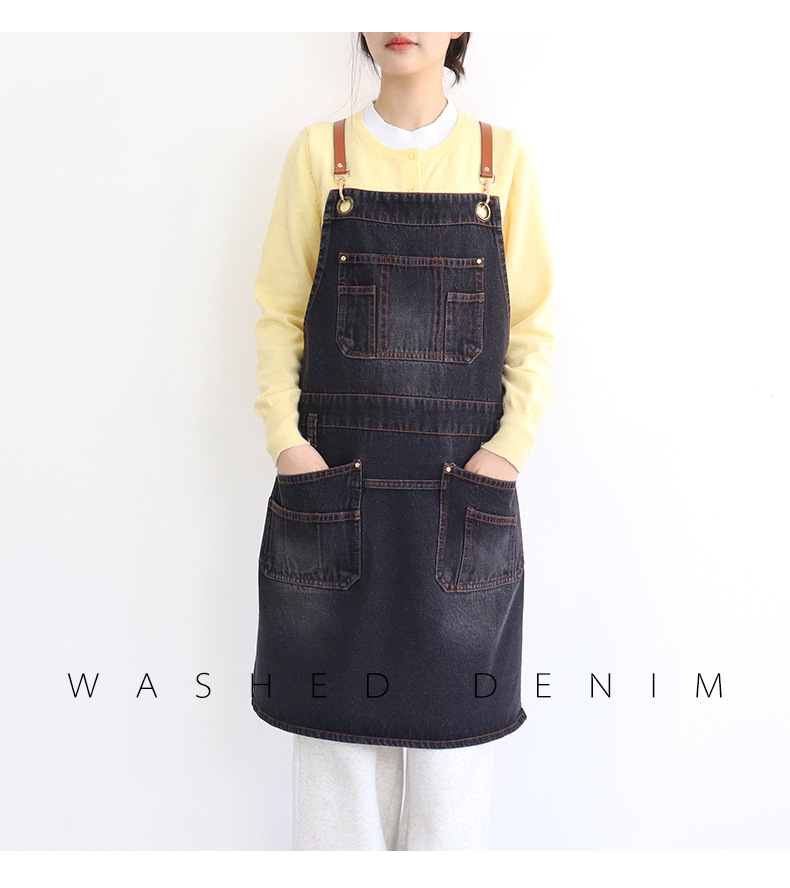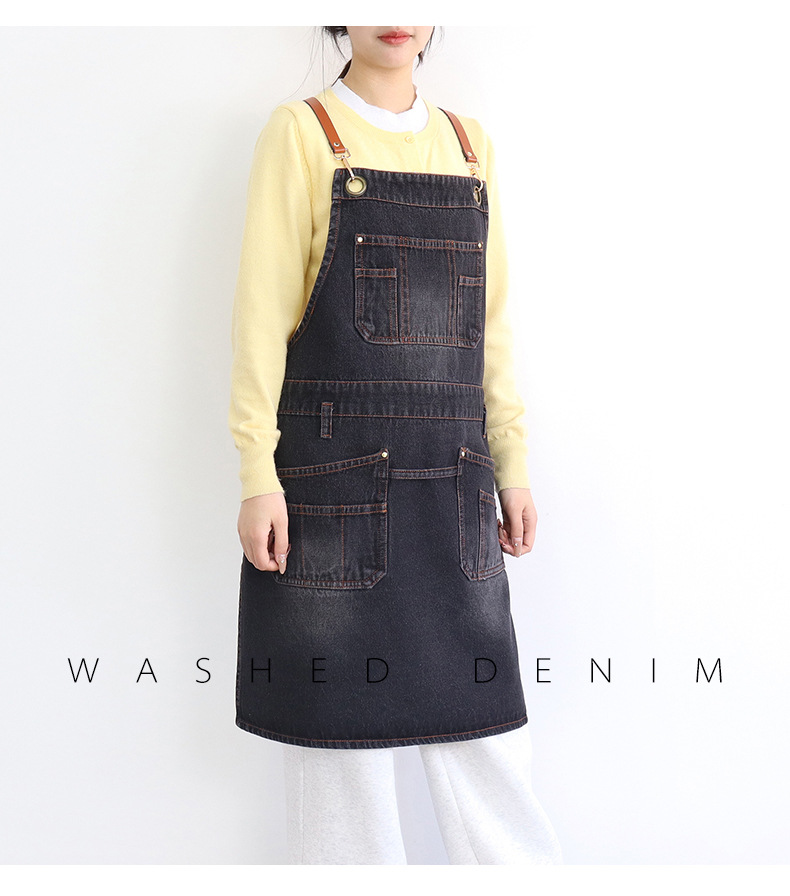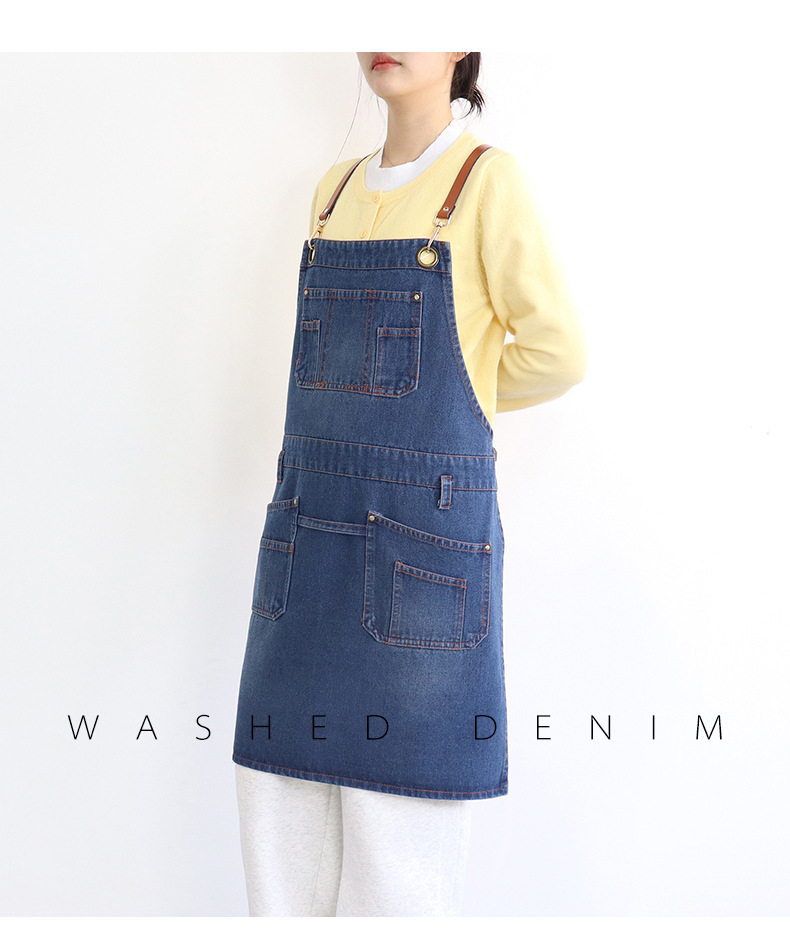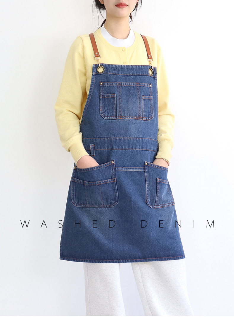 아마존 새로운 앞치마 씻은 데님 멀티 포켓 캐주얼 원예 일본 커피 여성 그림 장인 작업복