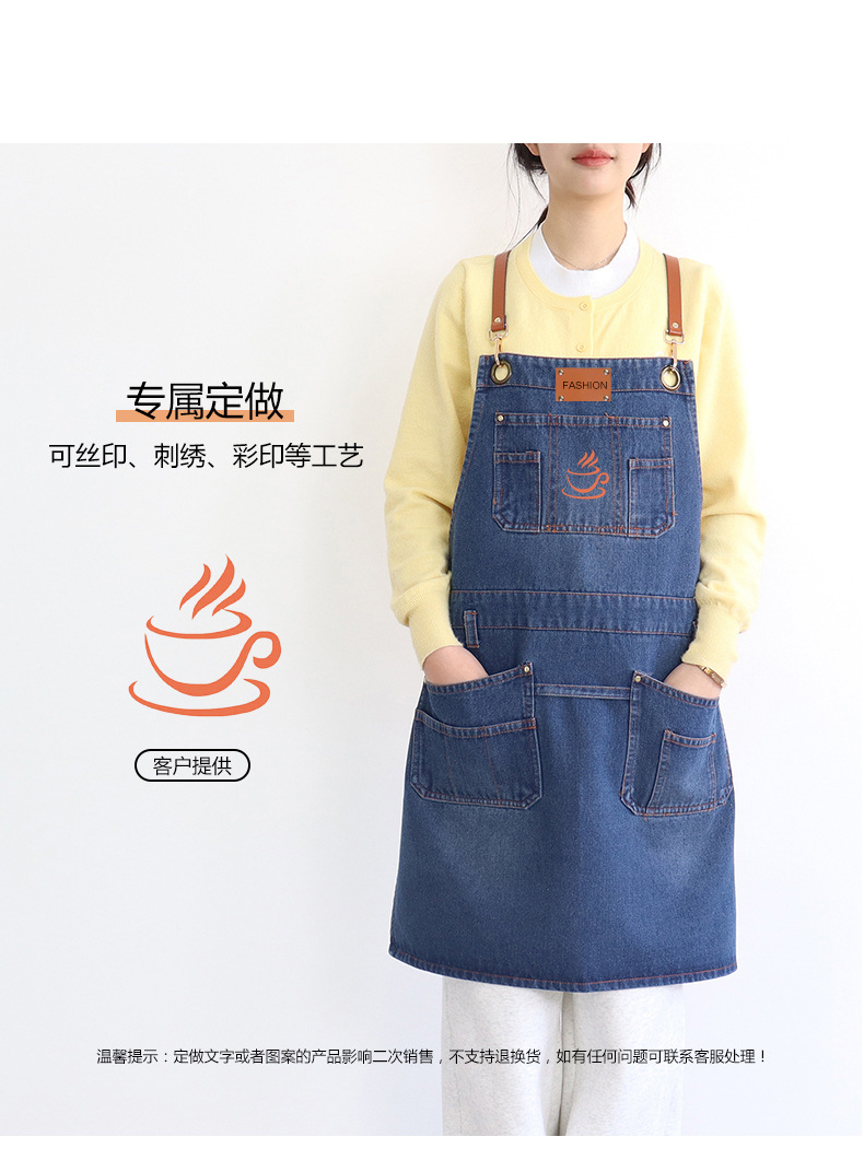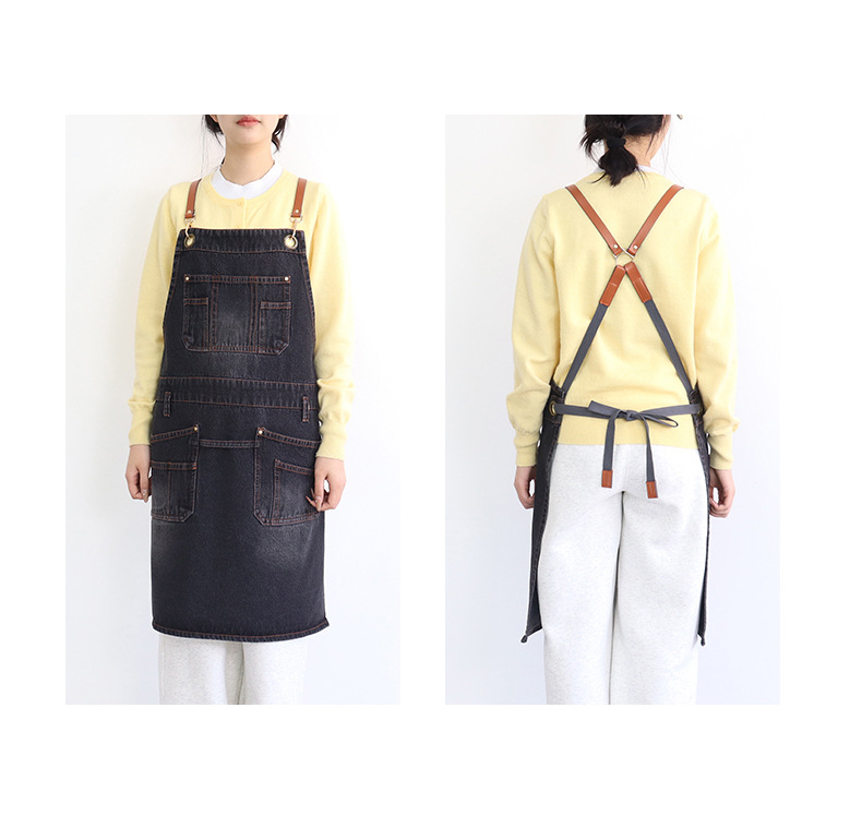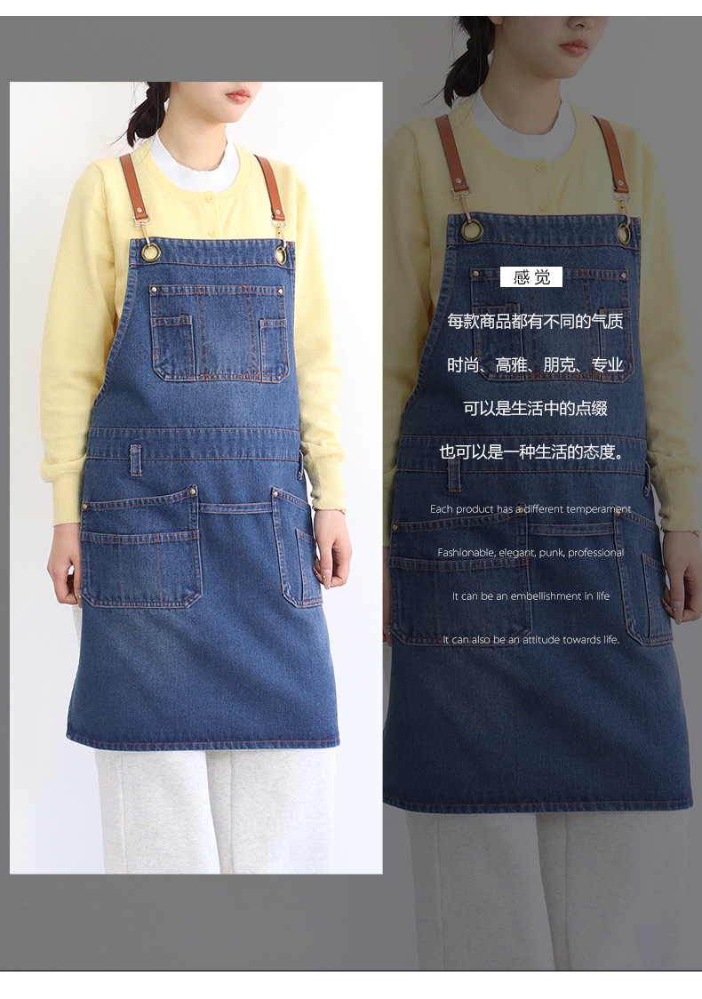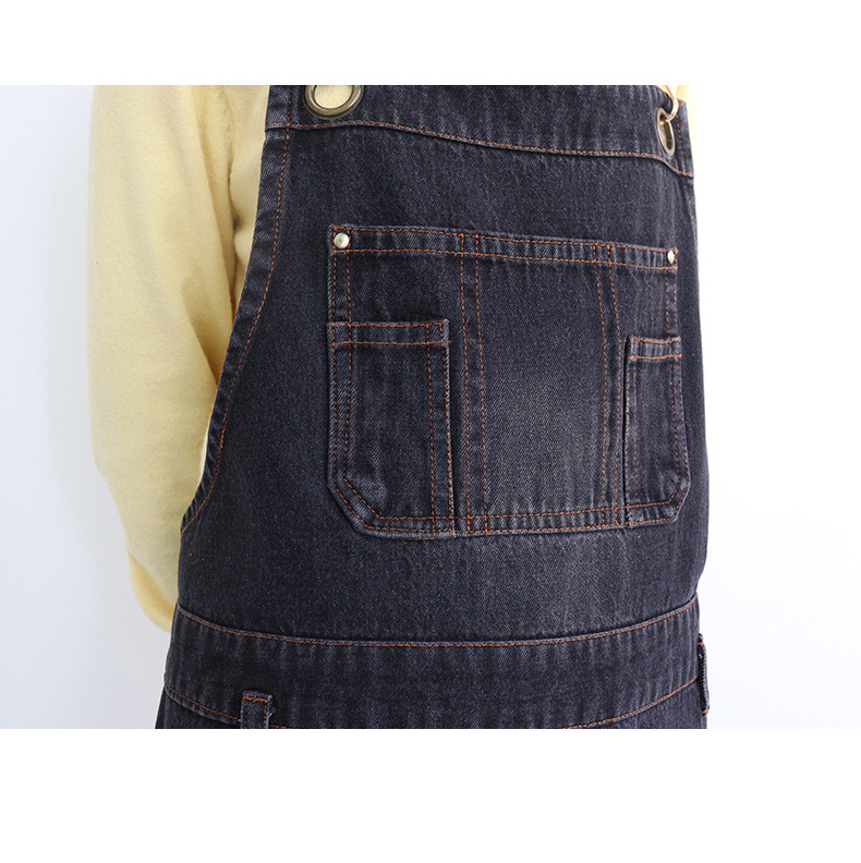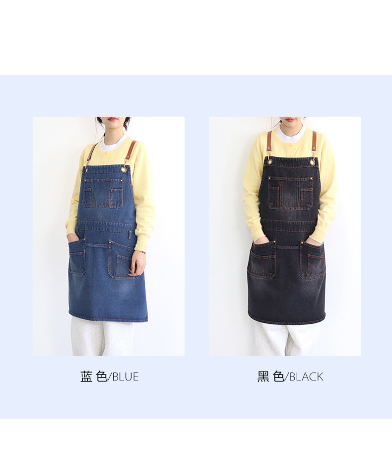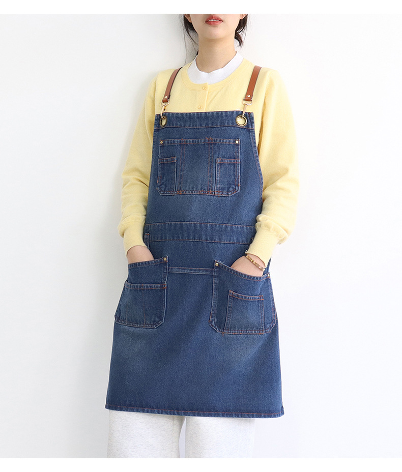 아마존 새로운 앞치마 씻은 데님 멀티 포켓 캐주얼 원예 일본 커피 여성 그림 장인 작업복