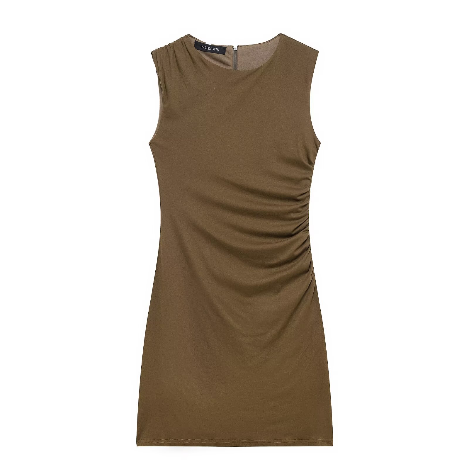 2025 봄 새로운 유럽과 미국의 국경 여성 착용 기질 접힘 장식 짧은 원피스 w085 238082스토어 가기
