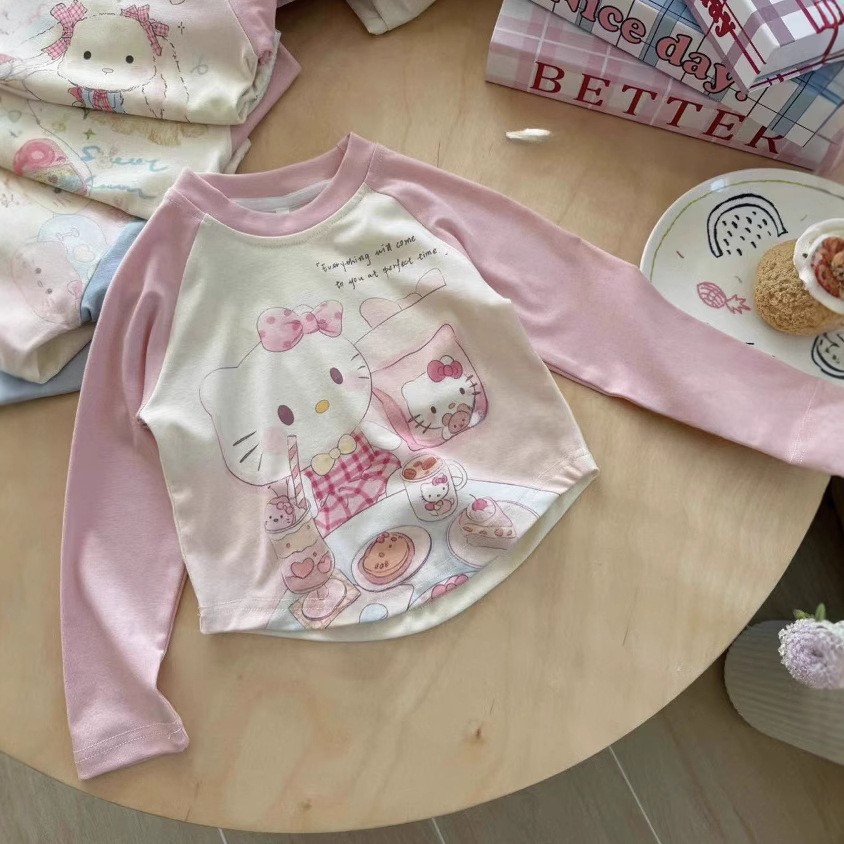 소녀 긴팔 티셔츠 봄 키티 고양이 탑 아기 소녀 봄 새로운 어린이 귀여운 베이스 셔츠 트렌디 아동복스토어 가기