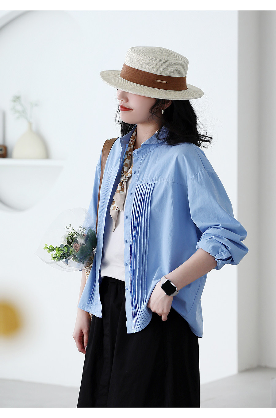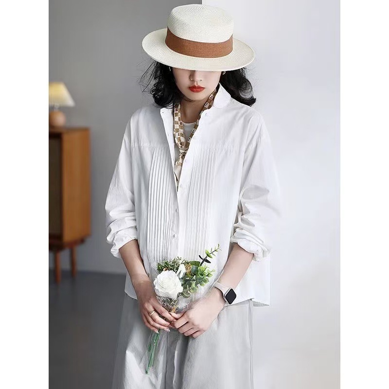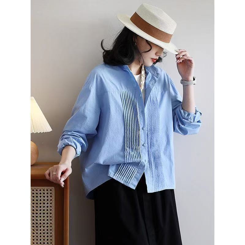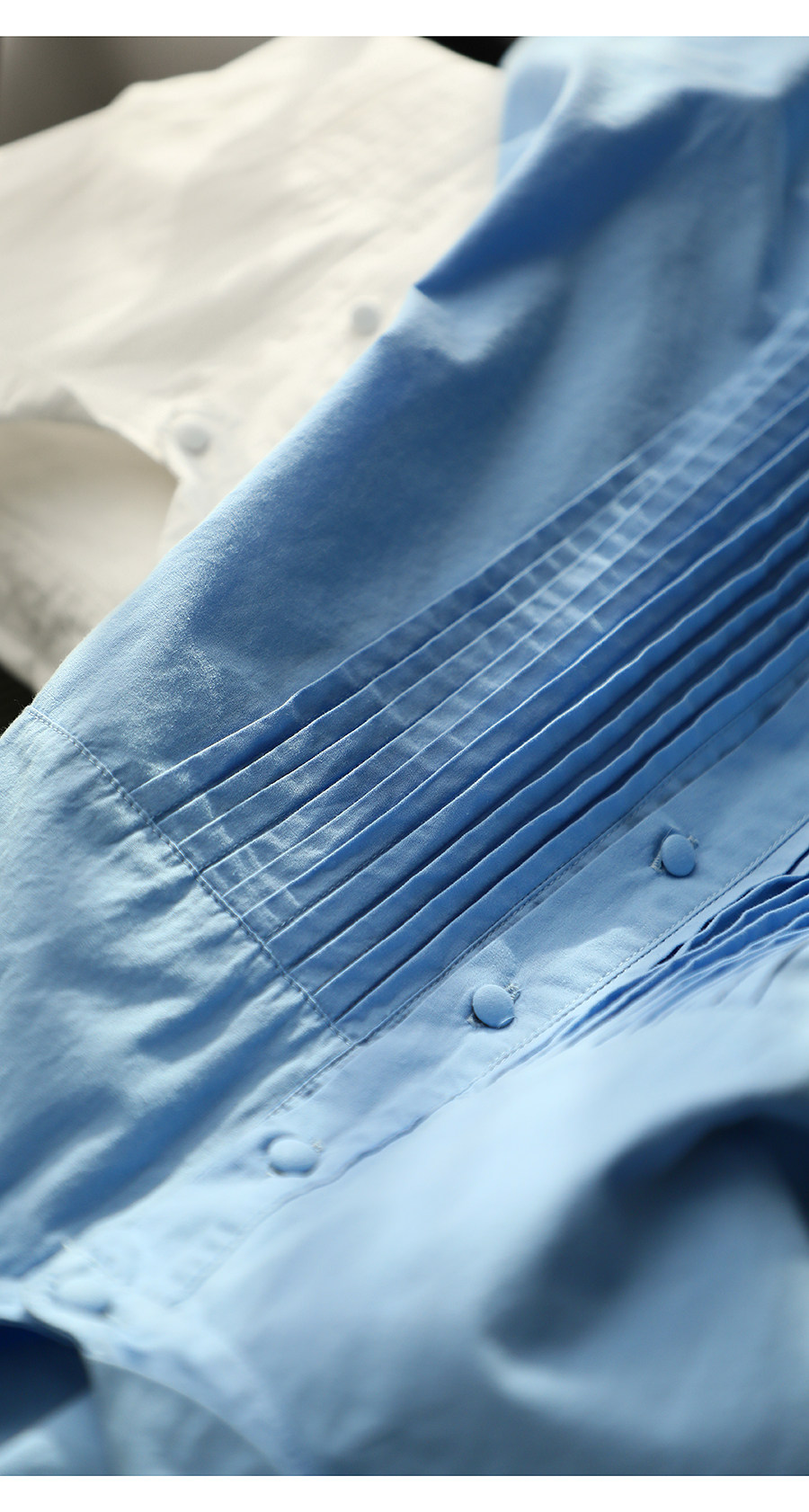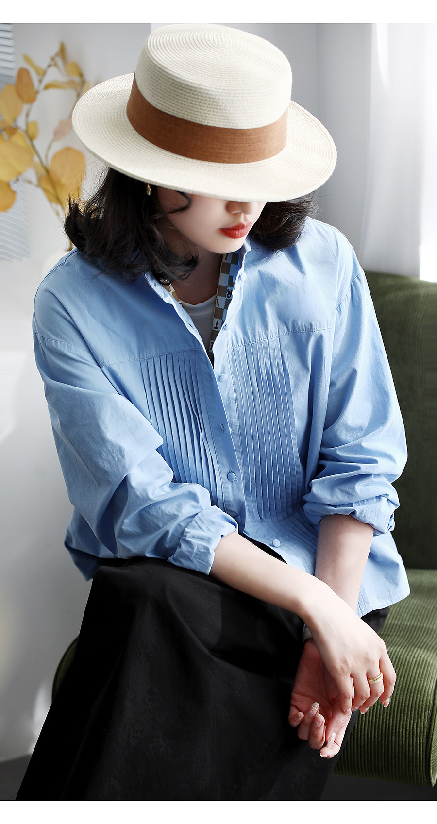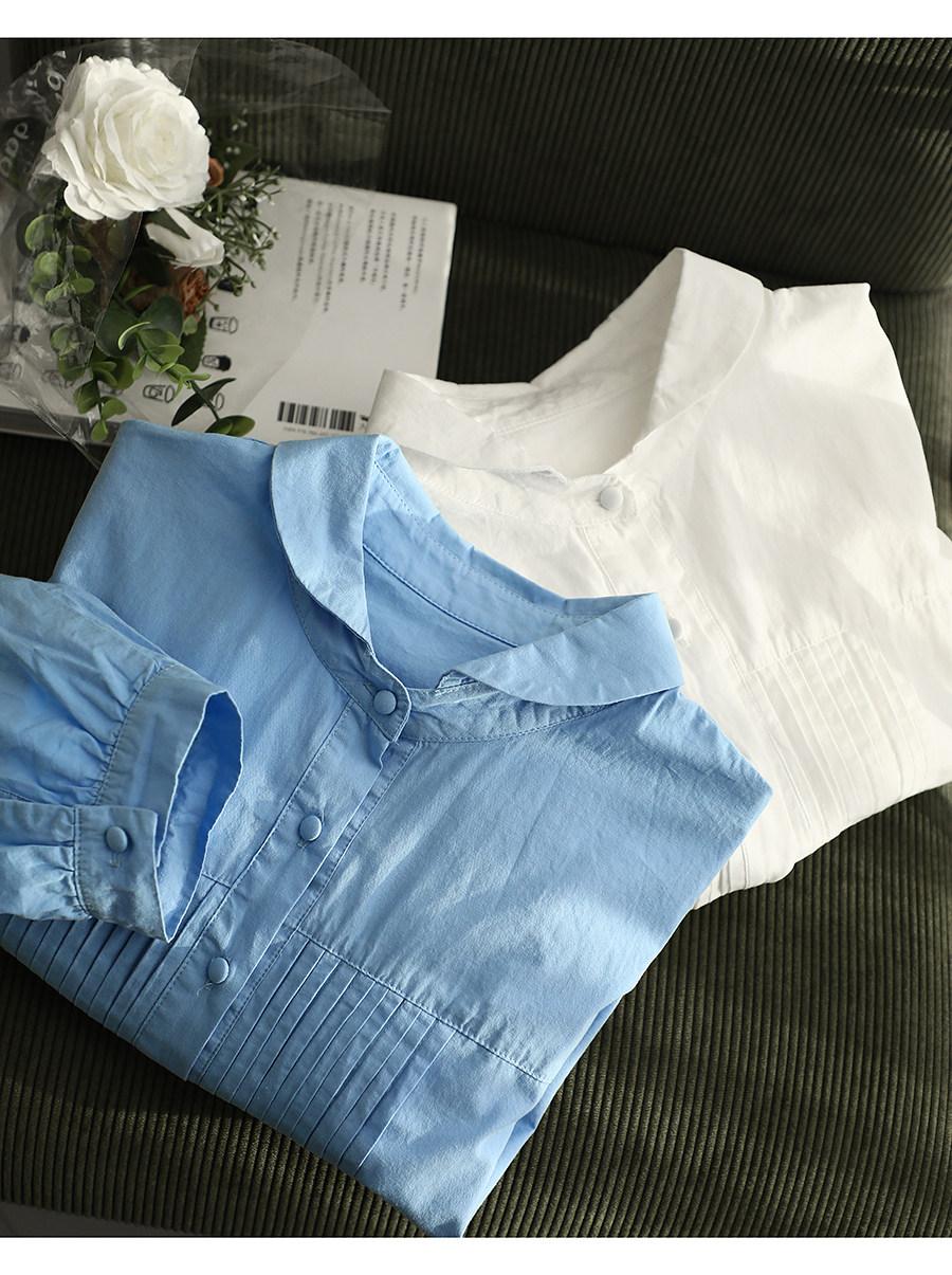 봄 새 면 셔츠 여성용 옷깃 캐주얼 느슨한 슬림 한국 스타일 오르간 주름 셔츠 여자 5000