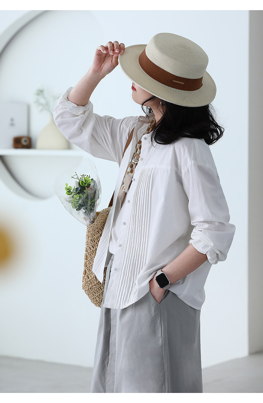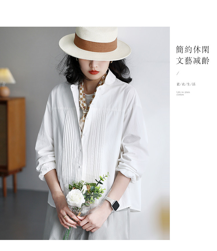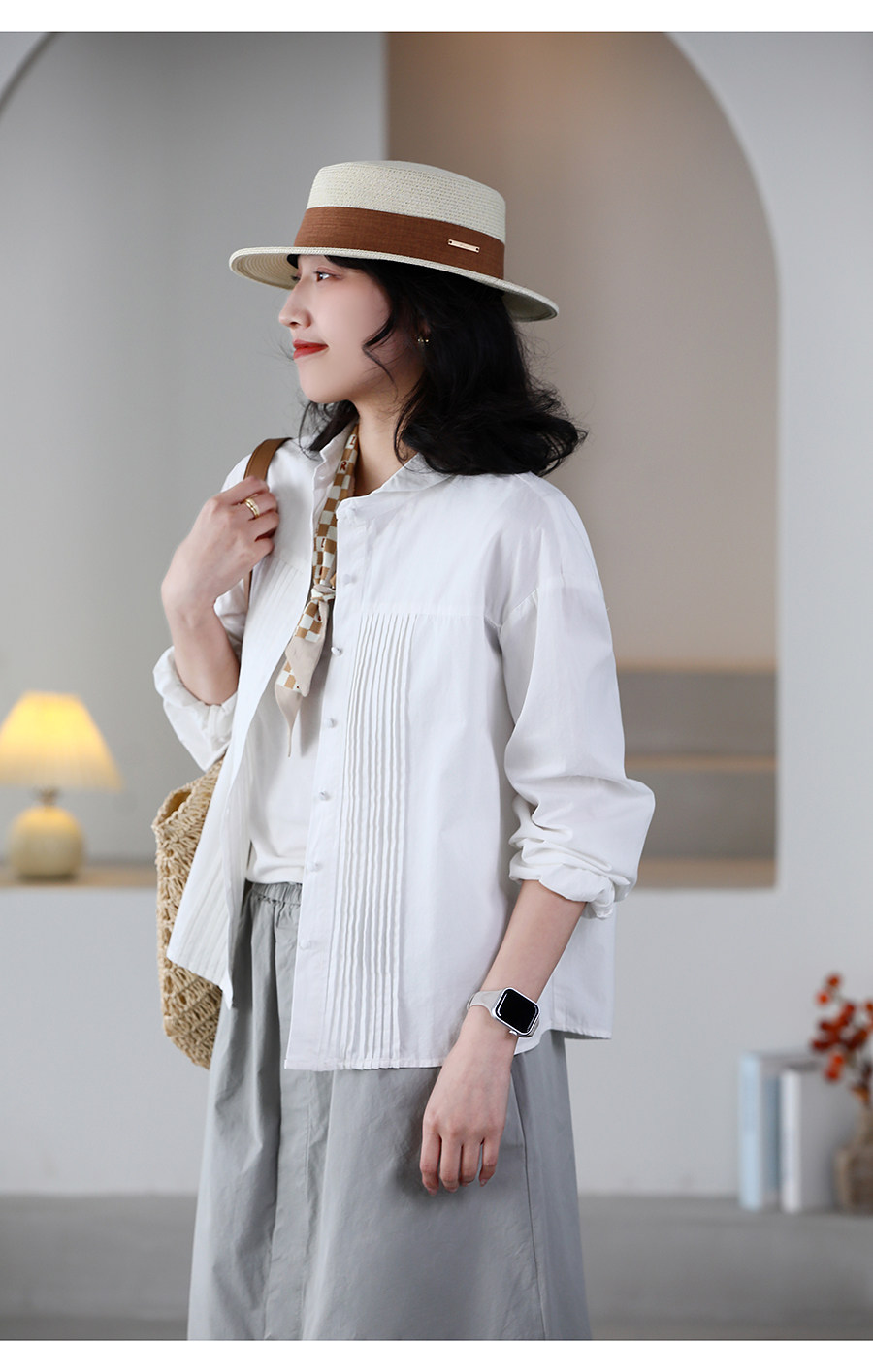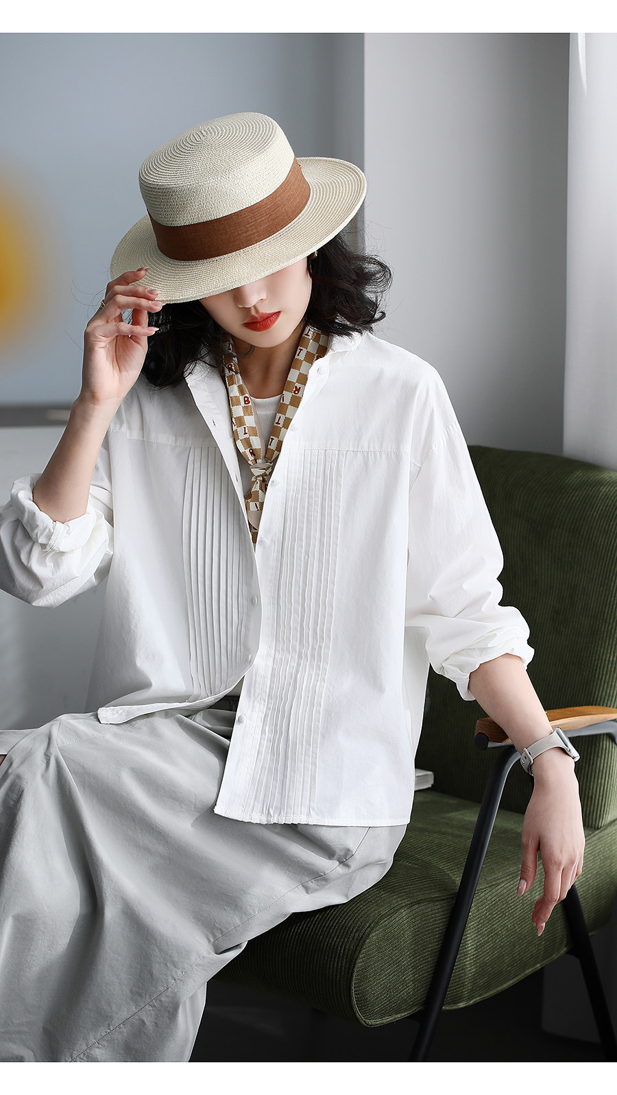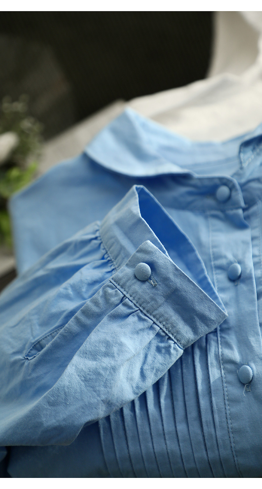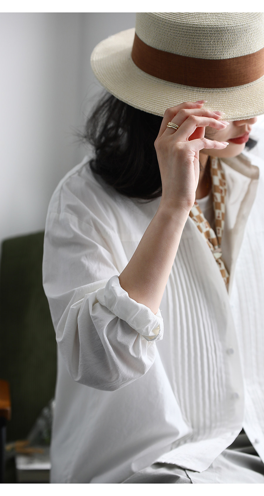 봄 새 면 셔츠 여성용 옷깃 캐주얼 느슨한 슬림 한국 스타일 오르간 주름 셔츠 여자 5000