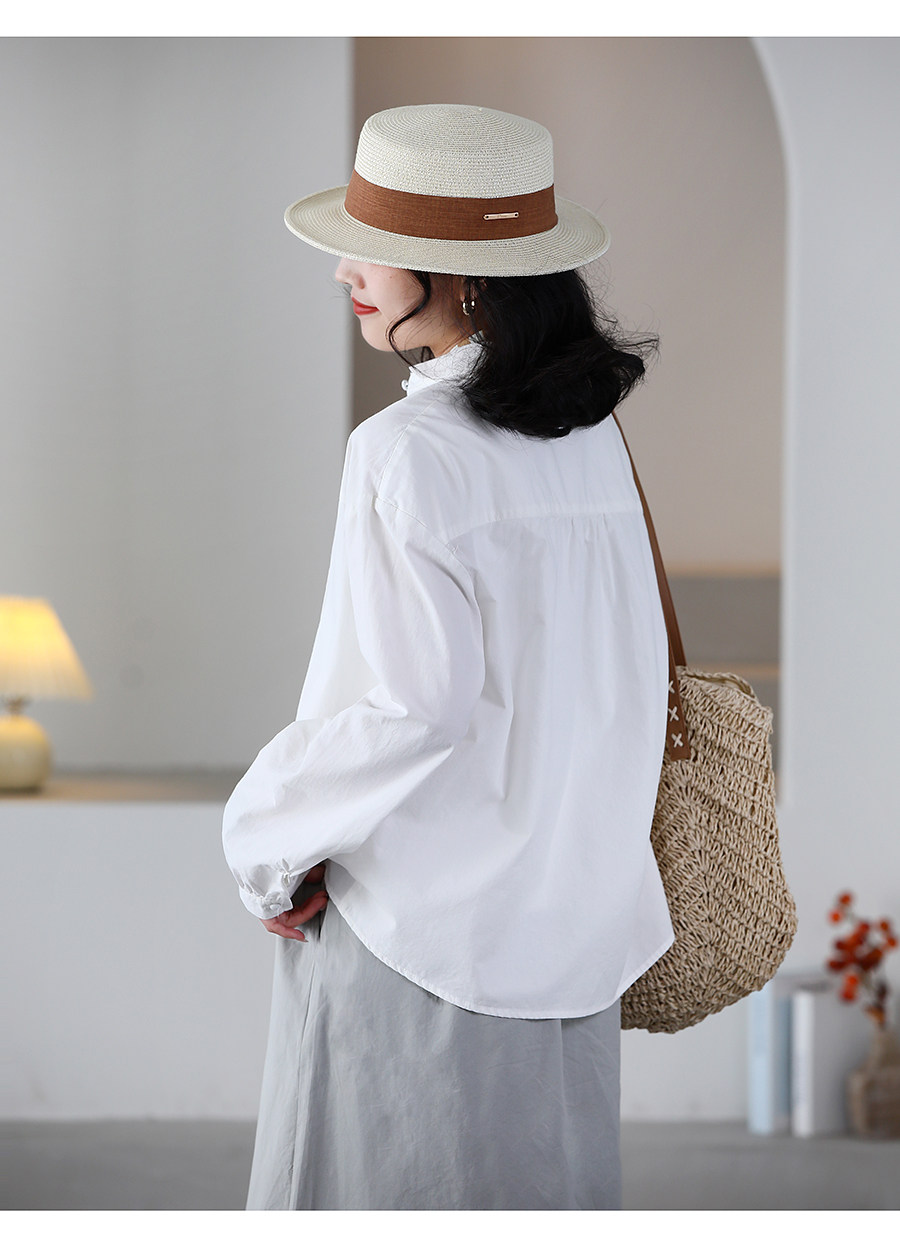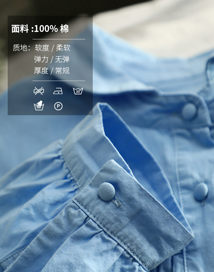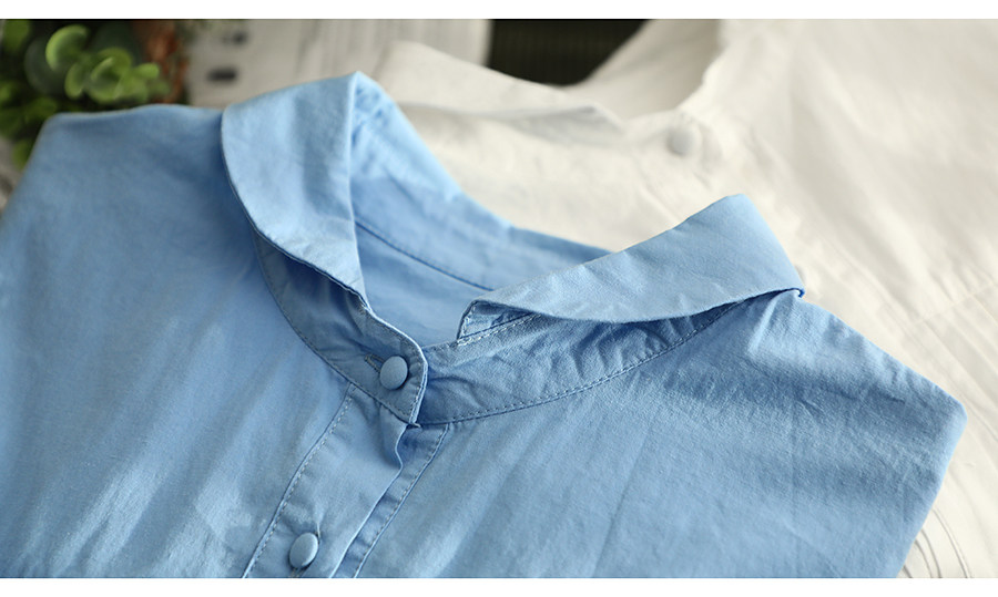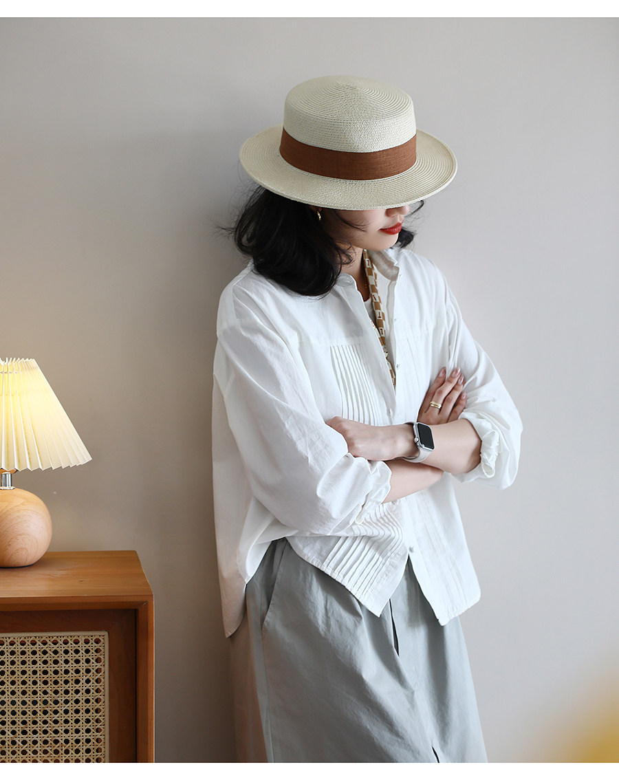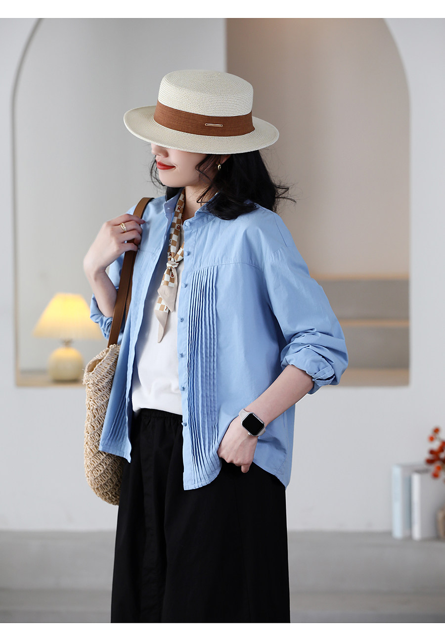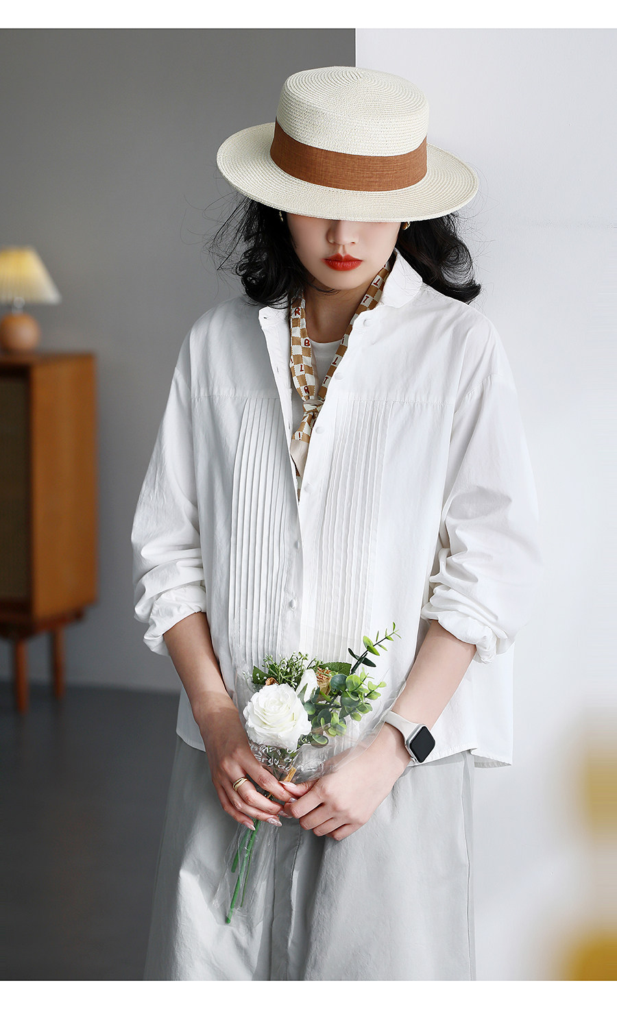 봄 새 면 셔츠 여성용 옷깃 캐주얼 느슨한 슬림 한국 스타일 오르간 주름 셔츠 여자 5000