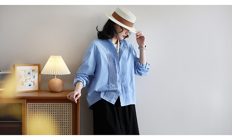 봄 새 면 셔츠 여성용 옷깃 캐주얼 느슨한 슬림 한국 스타일 오르간 주름 셔츠 여자 5000스토어 가기