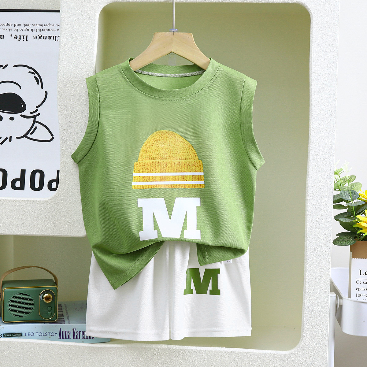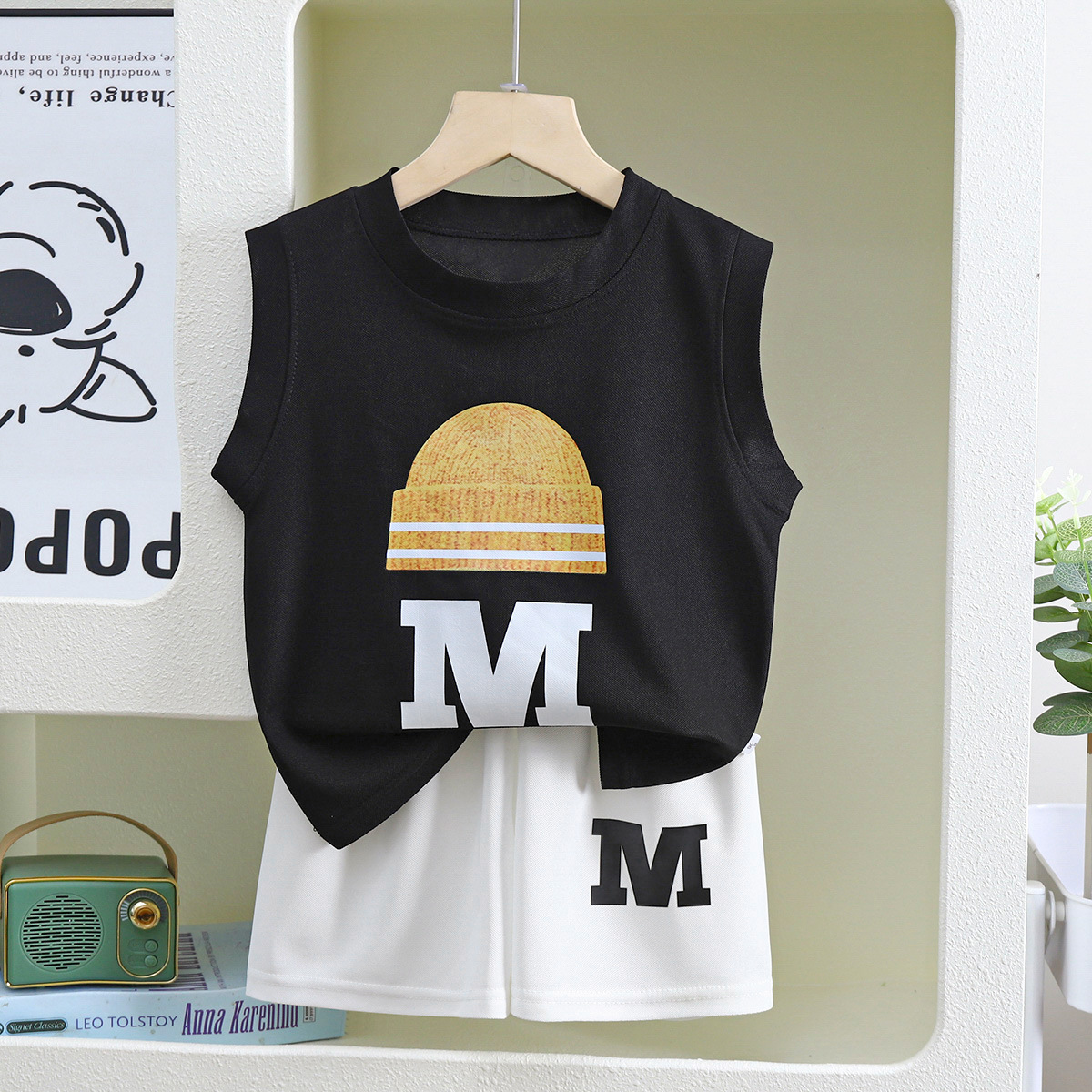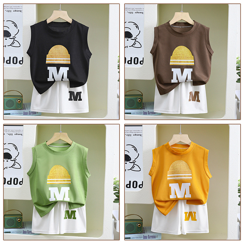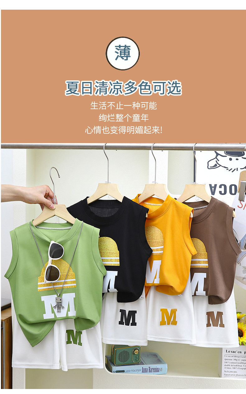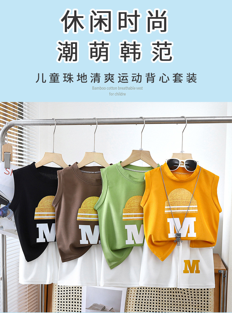 새 아동조끼 세트 소년 민소매 재킷 반바지 한국 여름 투피스 아동복 공장 직접 판매