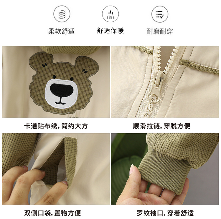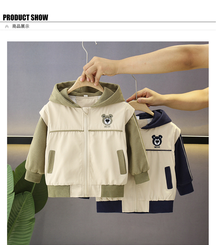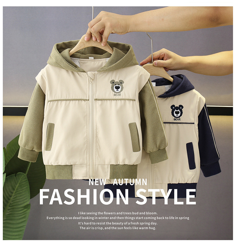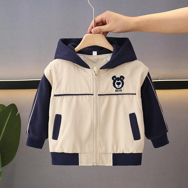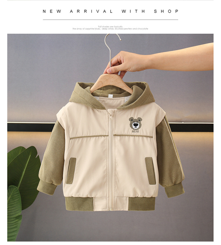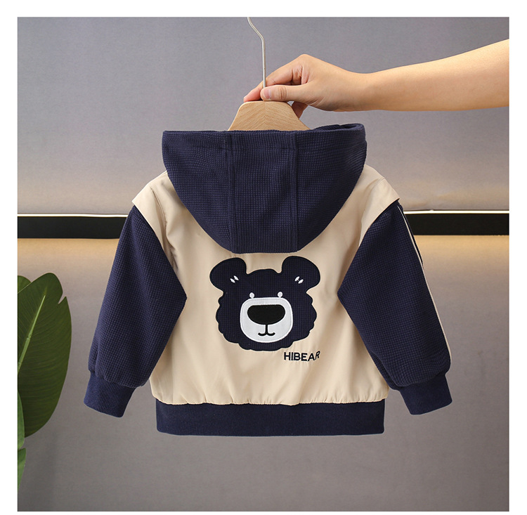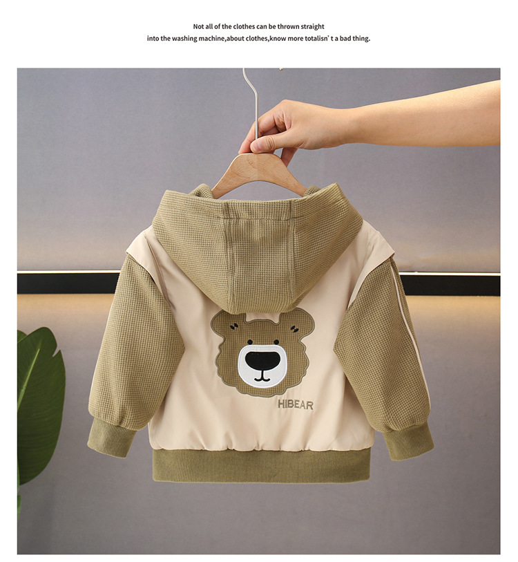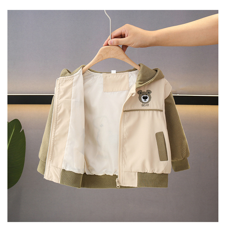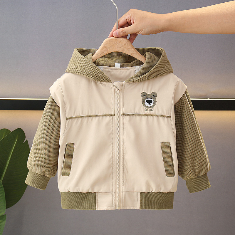 소년의 봄과 가을 코트 후드 서양식 유행 2025 어린이 아기의 가을 옷을위한 새로운 도착 만화 탑스토어 가기