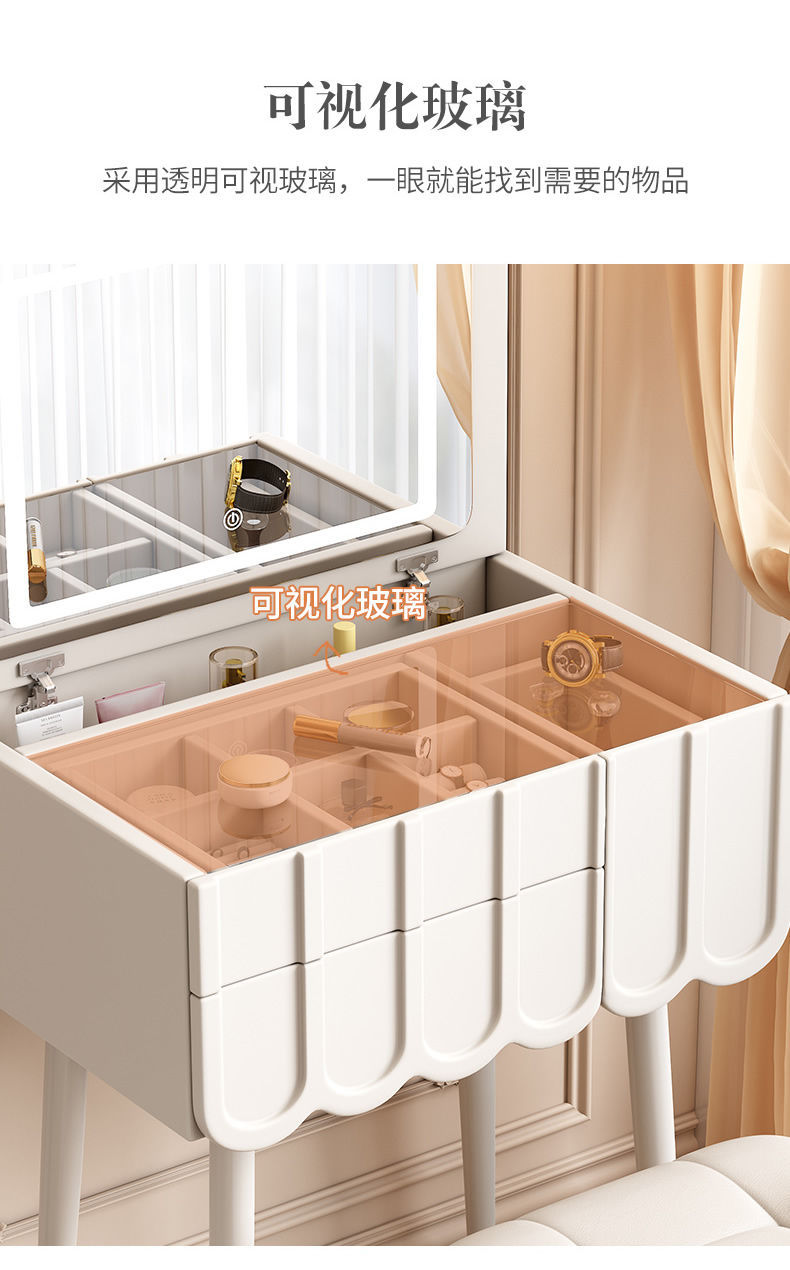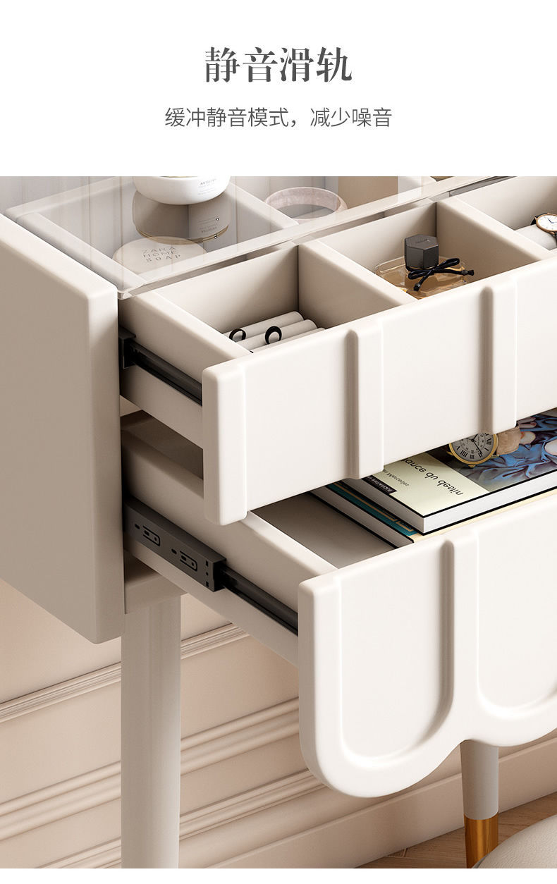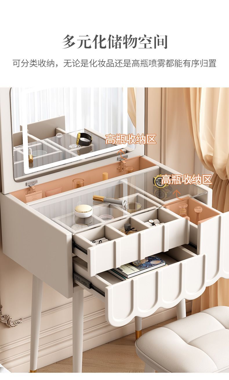프랑스 크림 스타일 드레싱 테이블 작은 침실 가구 작은 아파트 미니 침대 옆 메이크업 테이블 저장 캐비닛 통합 좁은스토어 가기