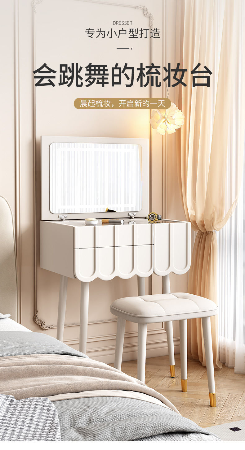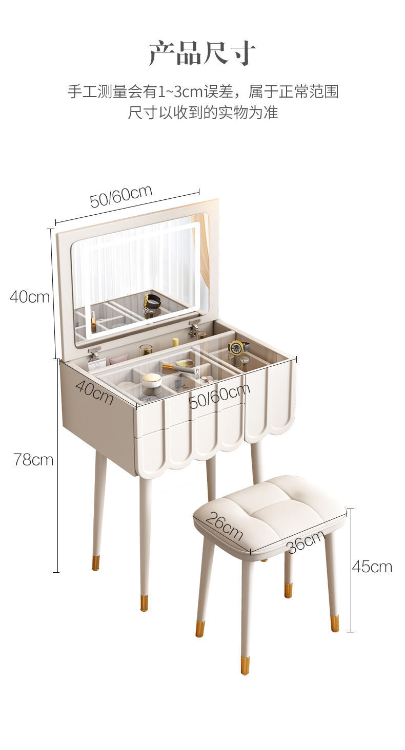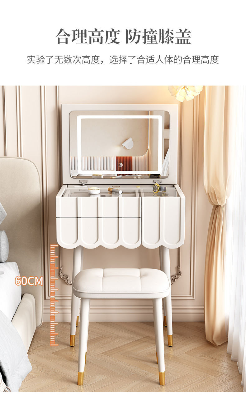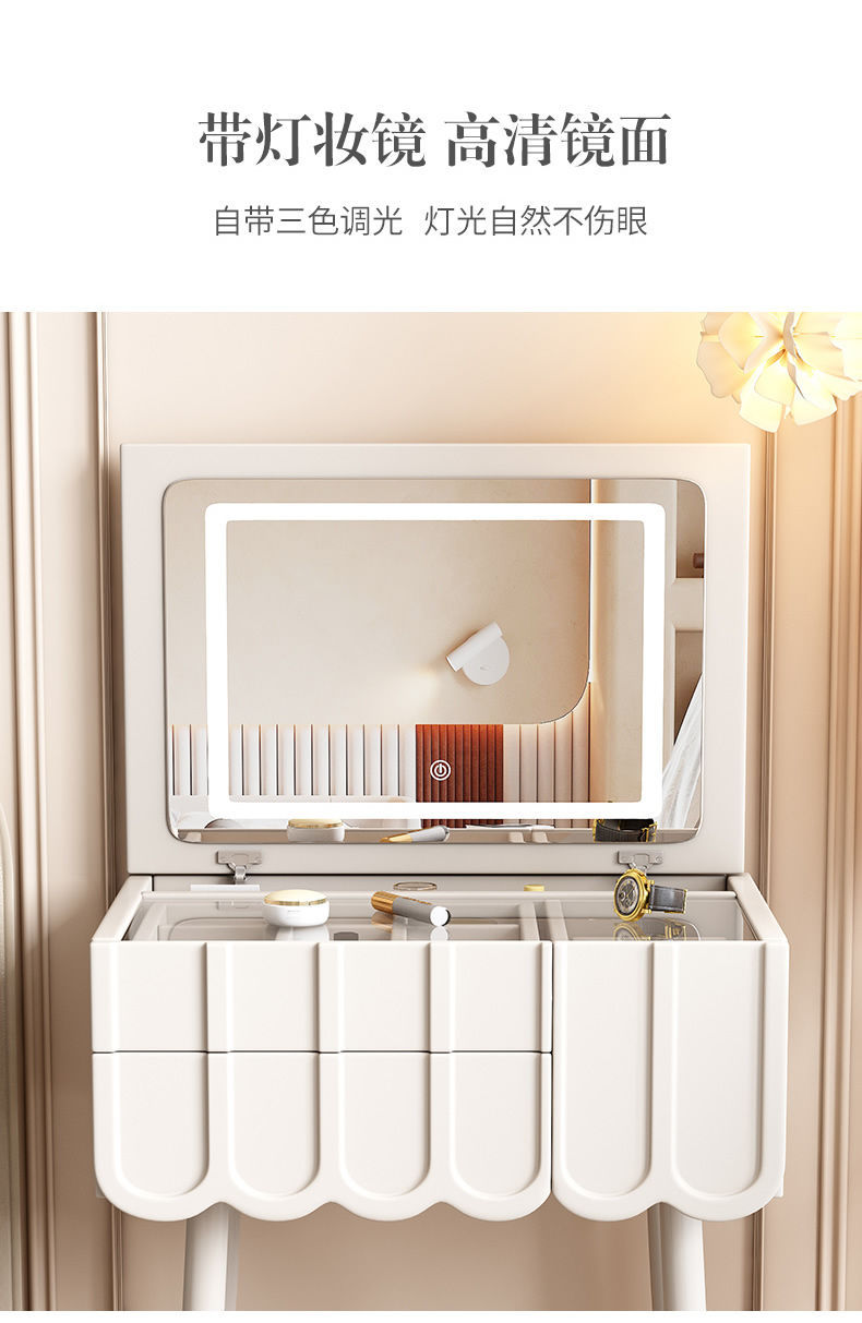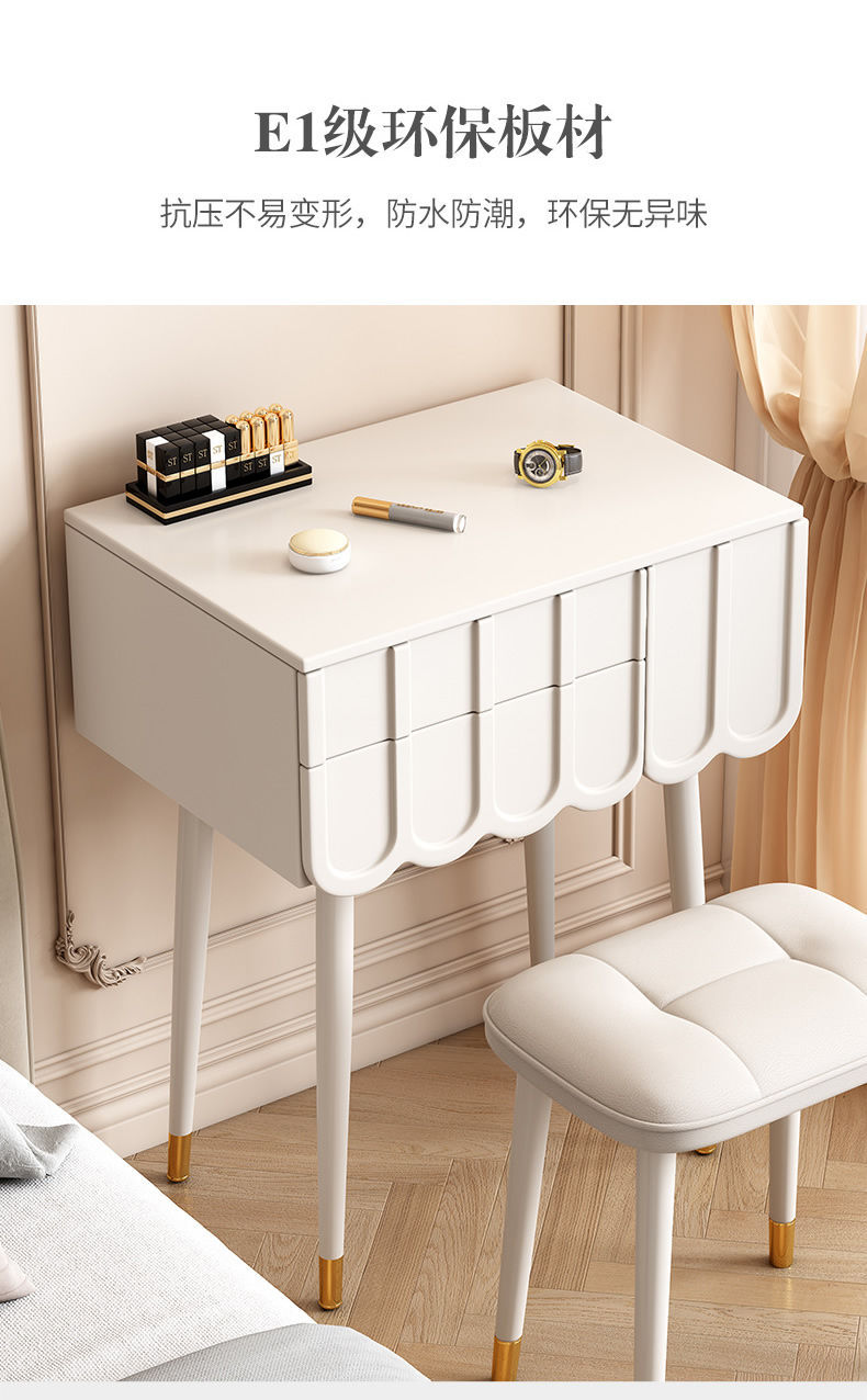 프랑스 크림 스타일 드레싱 테이블 작은 침실 가구 작은 아파트 미니 침대 옆 메이크업 테이블 저장 캐비닛 통합 좁은
