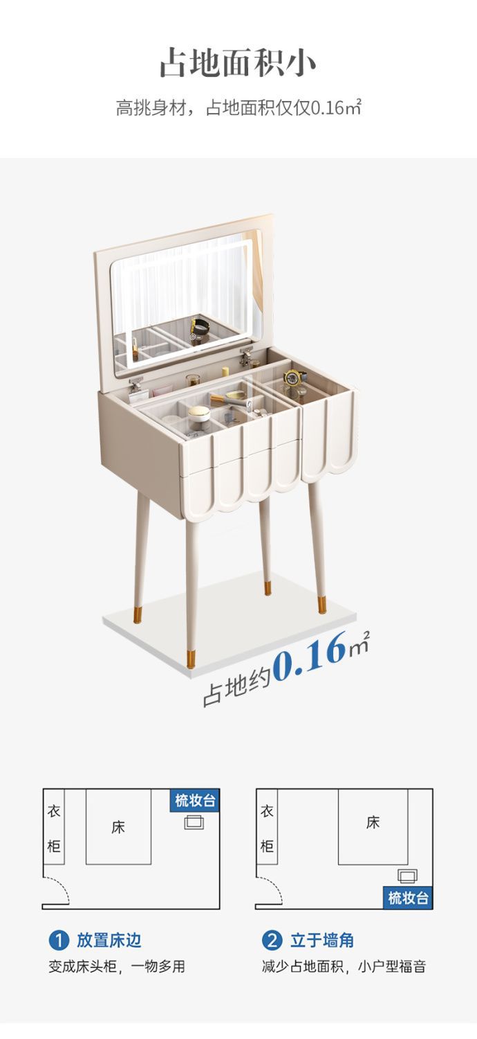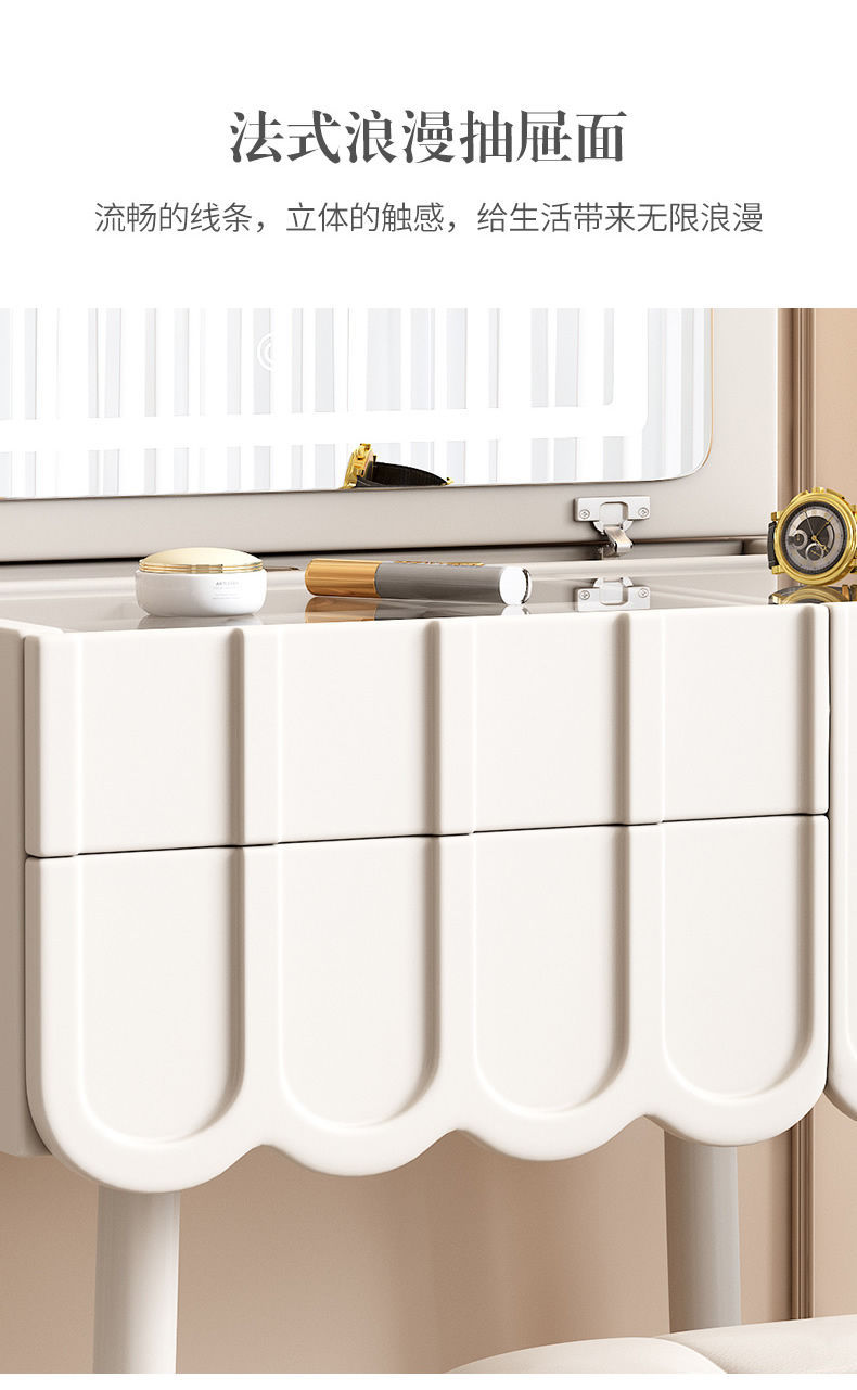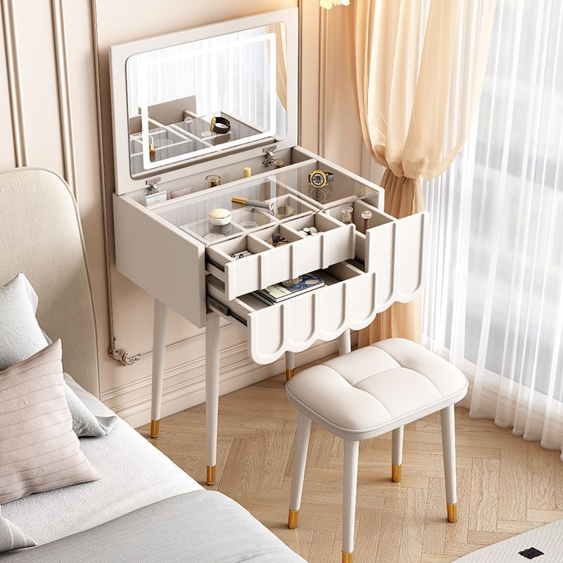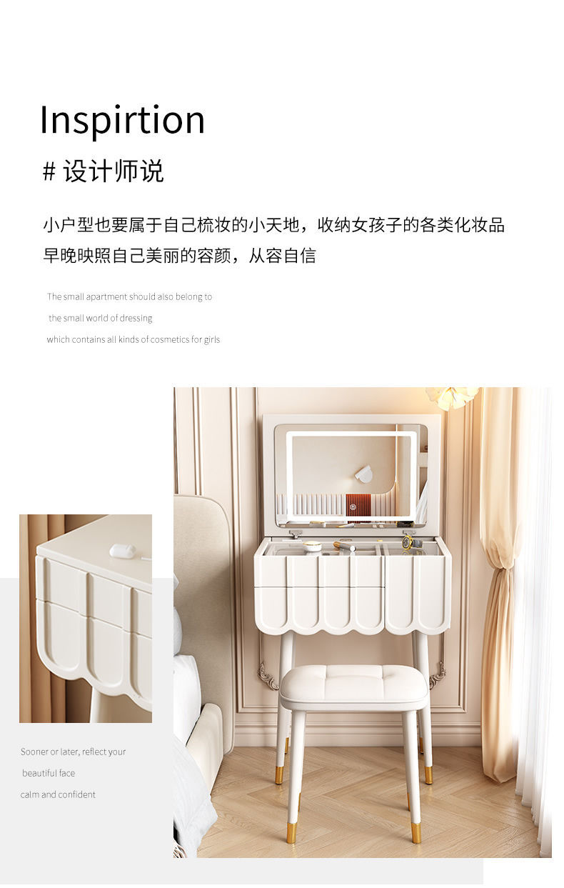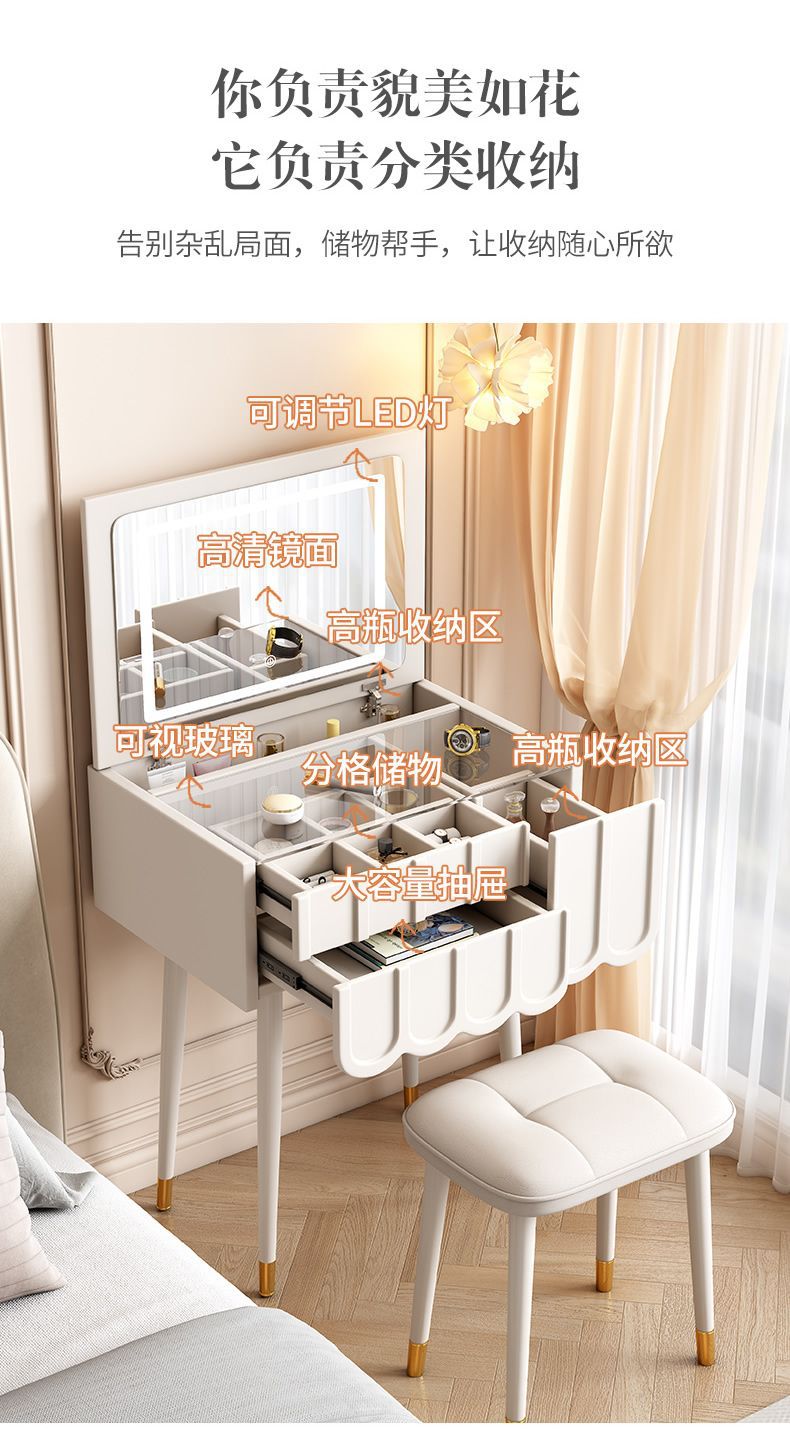 프랑스 크림 스타일 드레싱 테이블 작은 침실 가구 작은 아파트 미니 침대 옆 메이크업 테이블 저장 캐비닛 통합 좁은