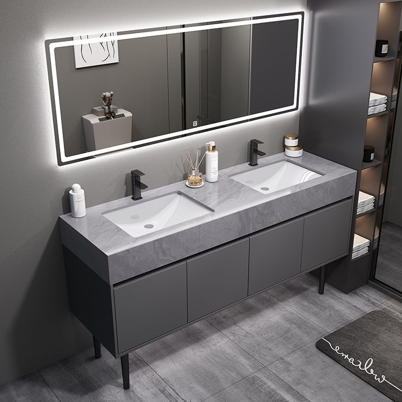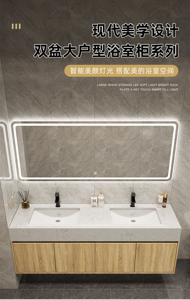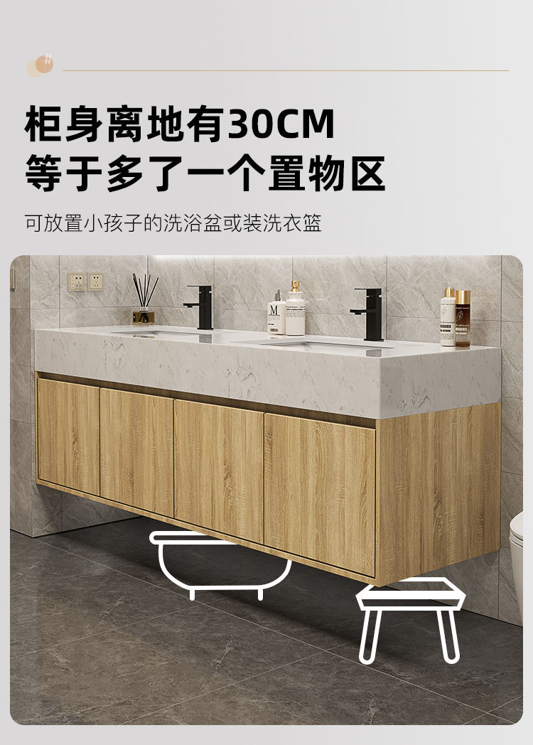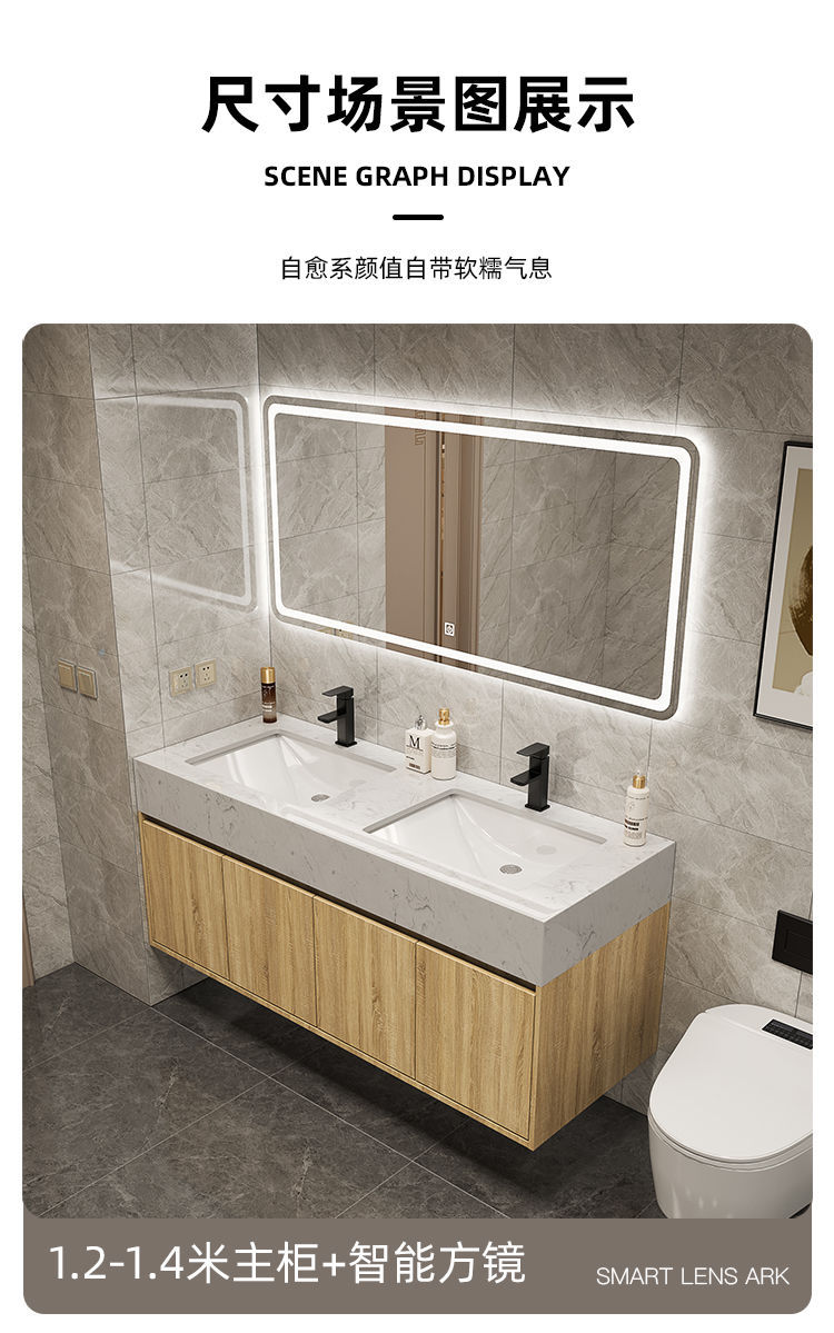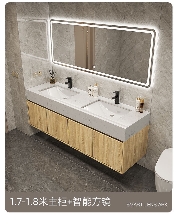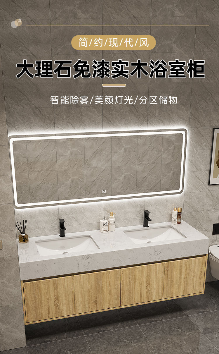 가벼운 고급 대리석 이중 분지 바닥 욕실 캐비닛 조합 공공 화장실 스마트 세면기 캐비닛