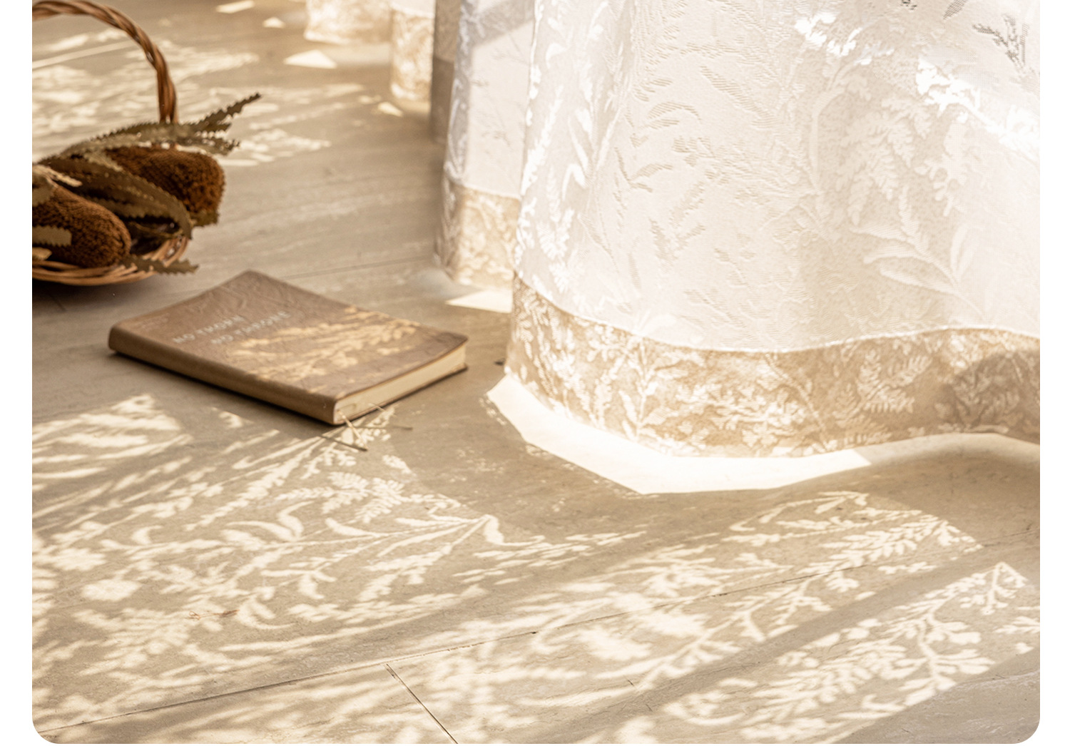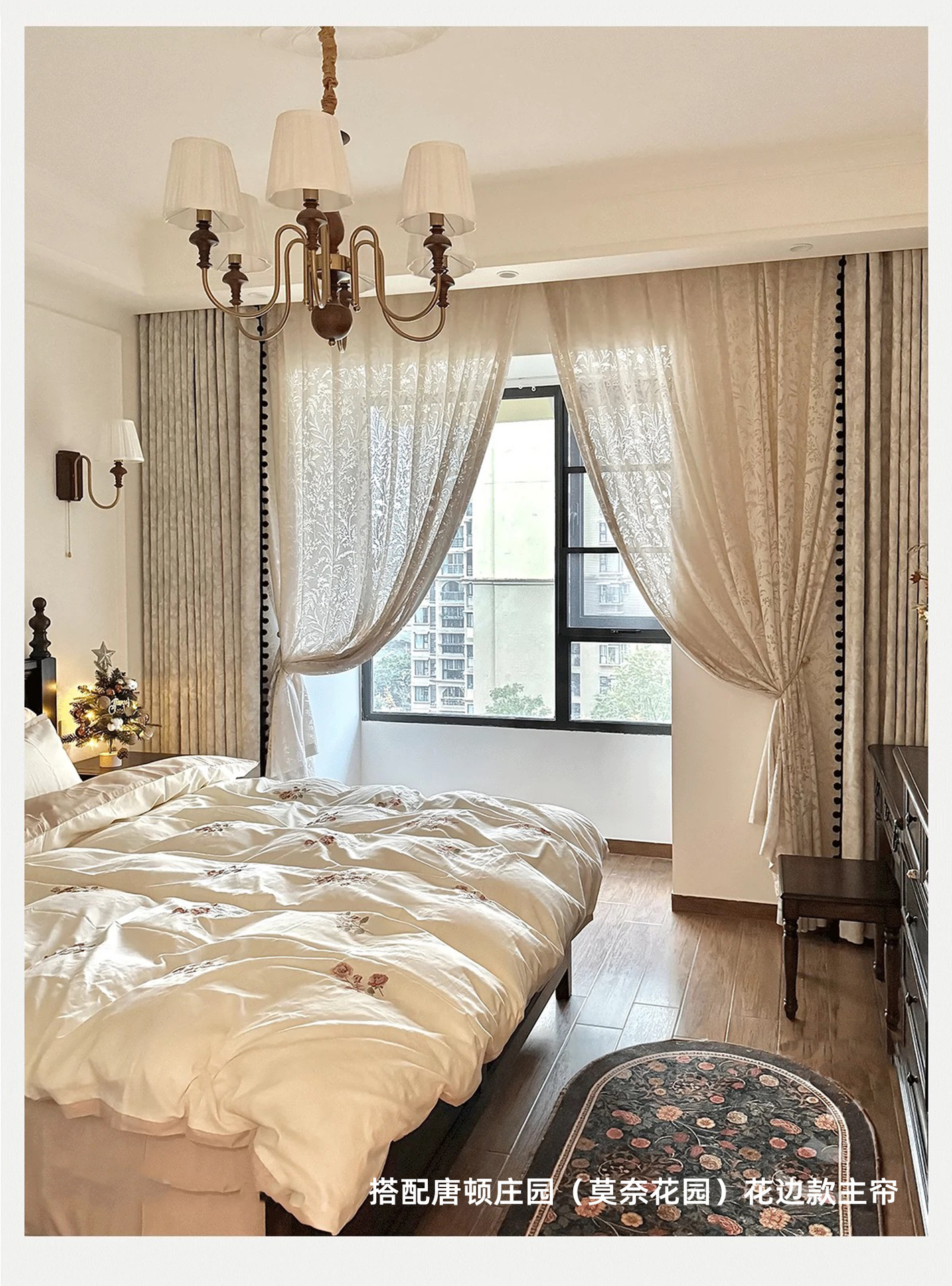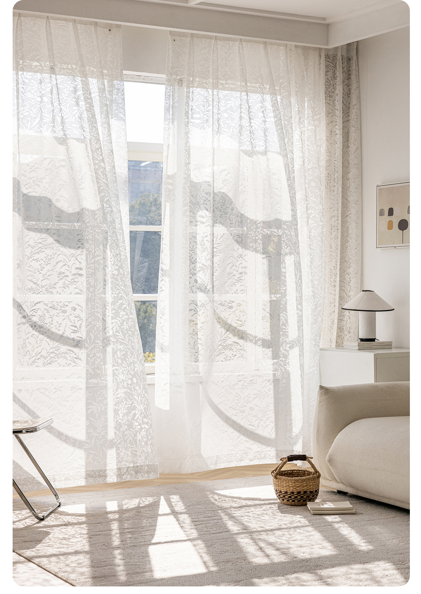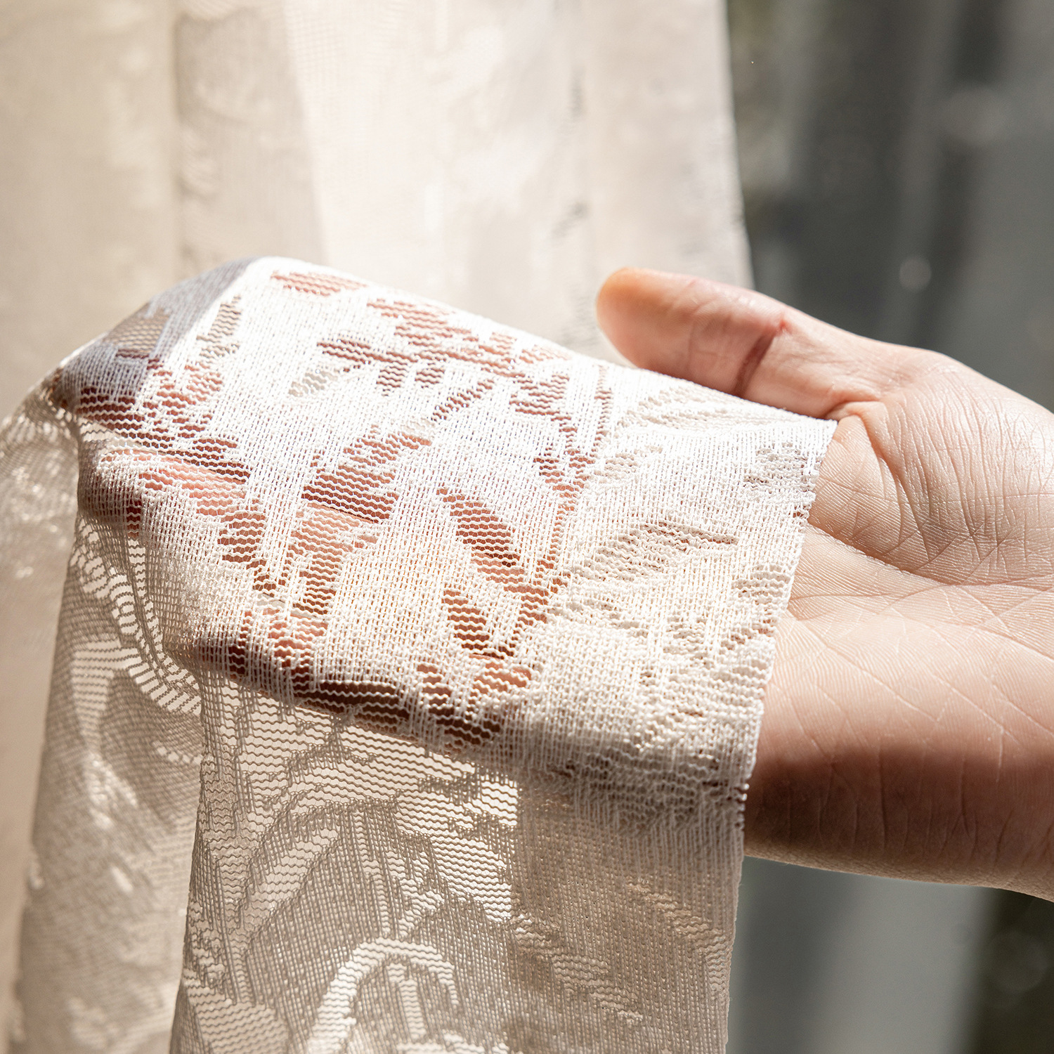 프랑스 로맨틱 [문 브랜치 그림자] 베이지 색 할로우 거즈 커튼 투명 부러워하는 침실 빛 럭셔리 고급 감각 창 화면스토어 가기