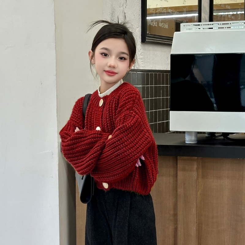 여아용 봄 가을 스웨터 가디건 코트 2025 신상 패셔너블 여아 가을 캐주얼 데님 와이드 팬츠 세트스토어 가기