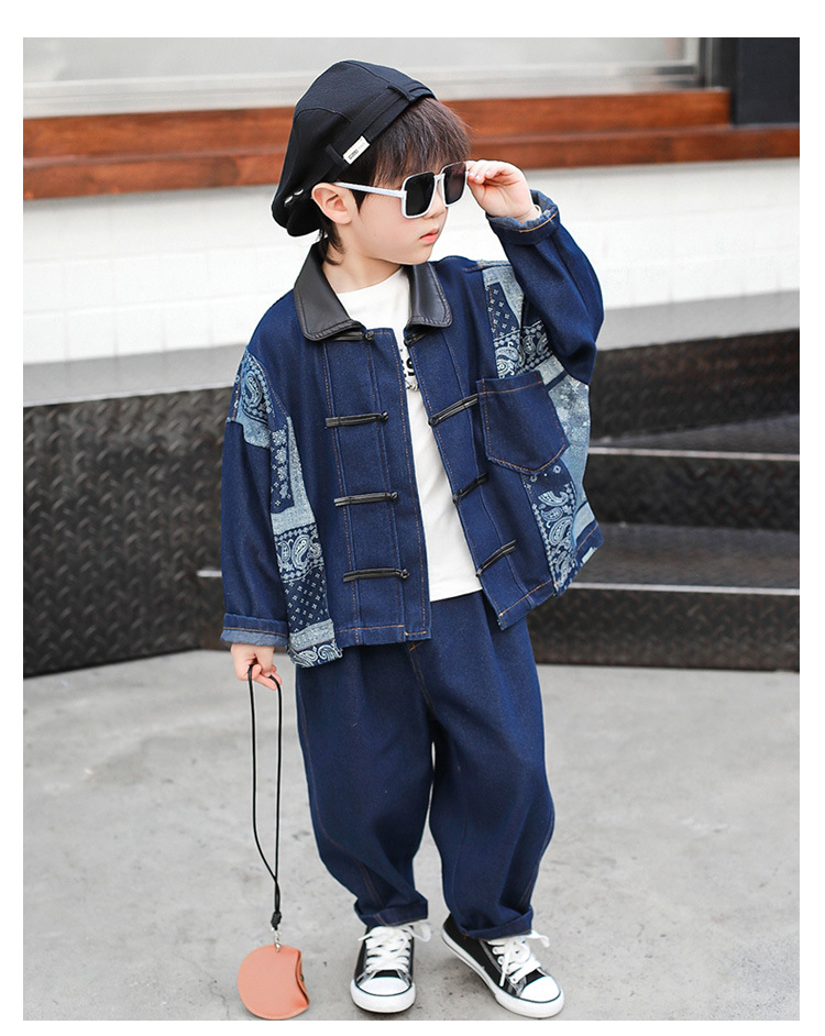 소년 데님 세트 2025 봄과 가을 새로운 중국 스타일 레트로 잘 생긴 어린이 코트 가을 착용 젊은 마스터 세트