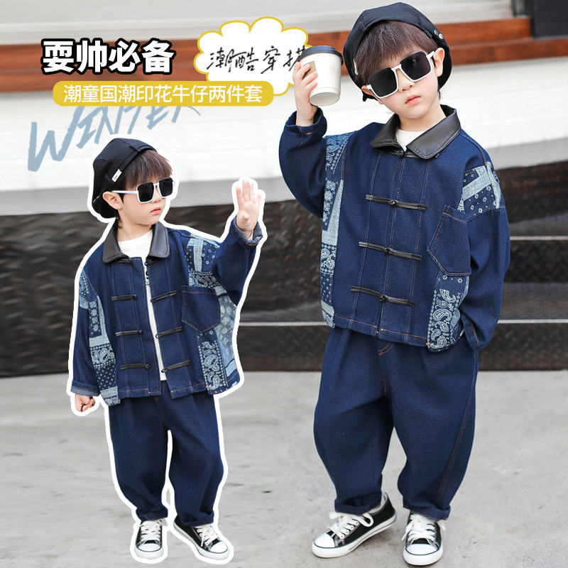 소년 데님 세트 2025 봄과 가을 새로운 중국 스타일 레트로 잘 생긴 어린이 코트 가을 착용 젊은 마스터 세트스토어 가기