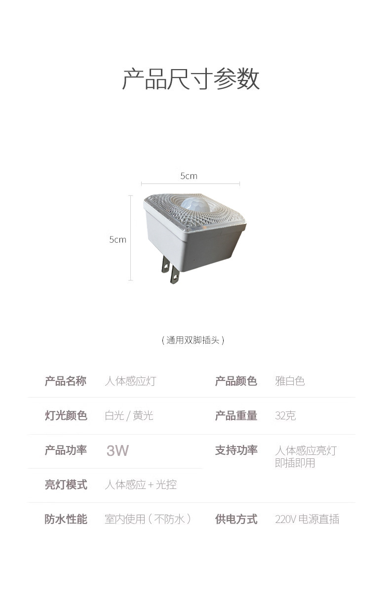 • 사각 투명 모델 220v 플러그인 인체 센서 야간 조명 백색광