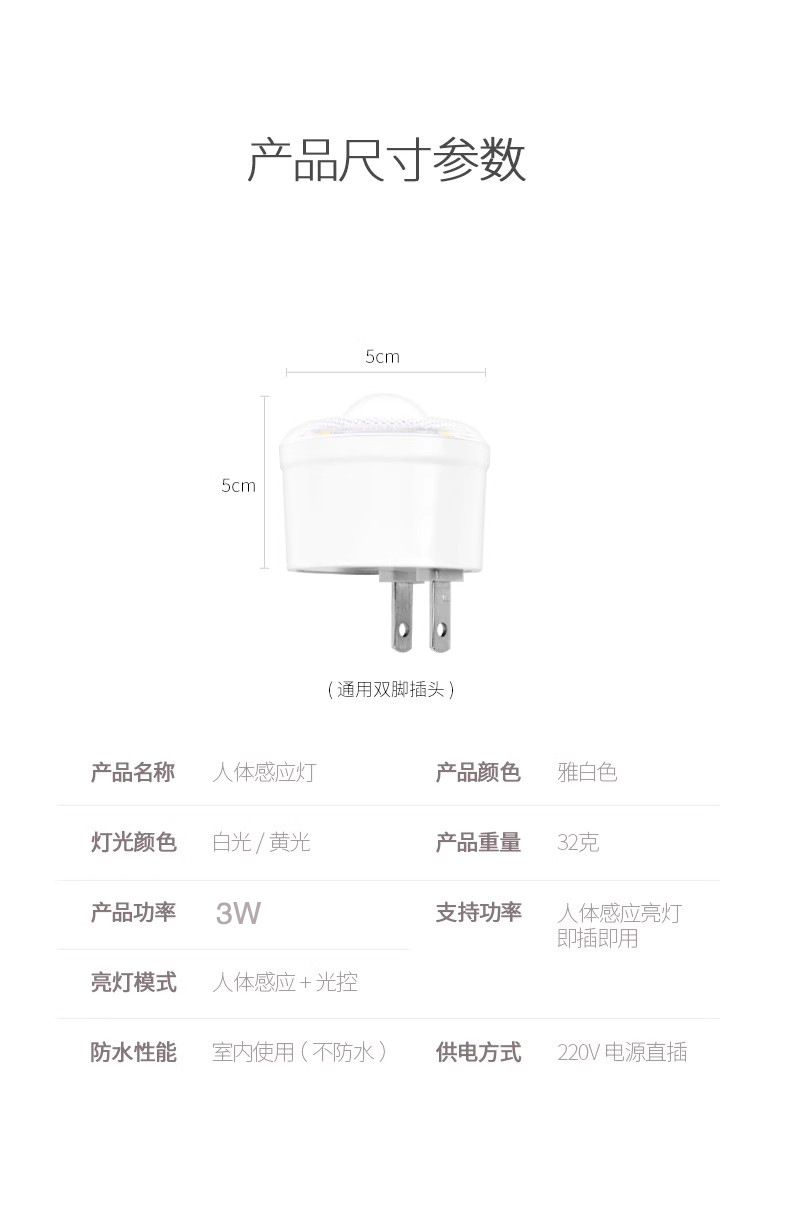 • 원형 투명 220v 플러그인 인체 센서 야간 조명 백색광