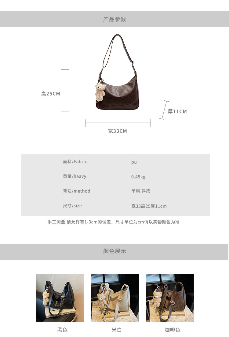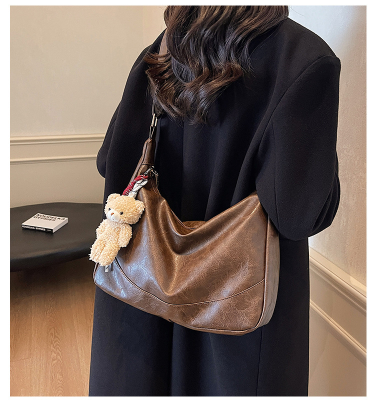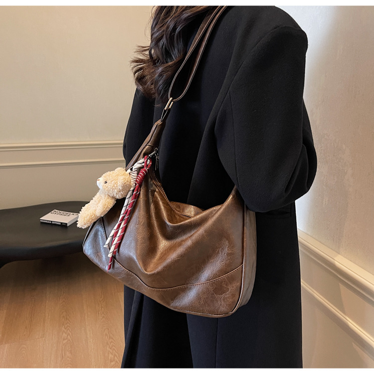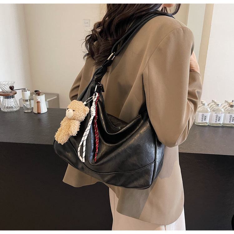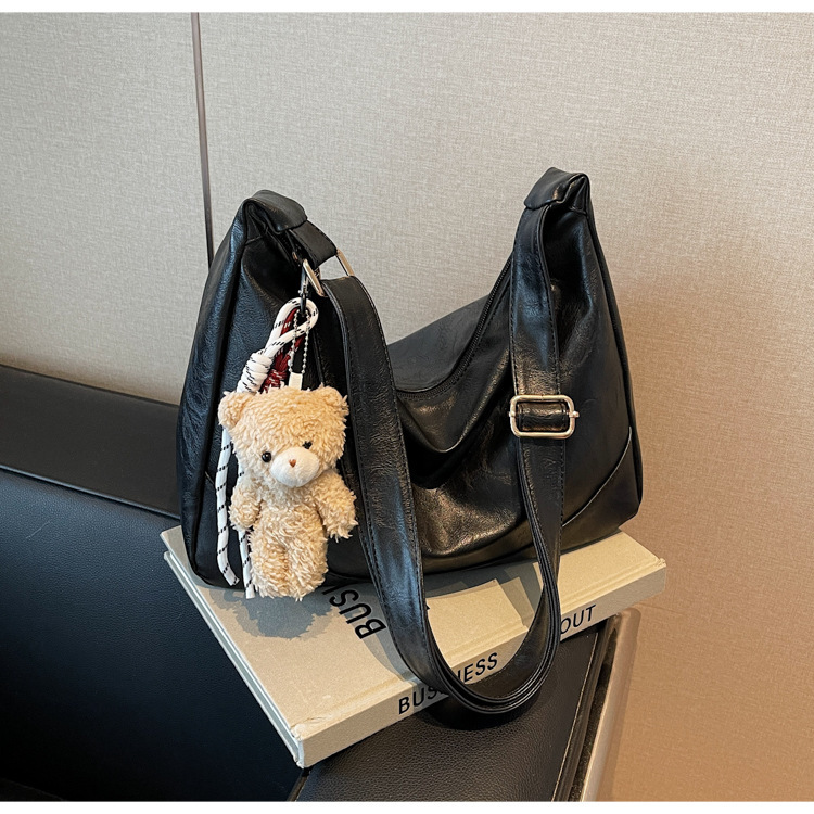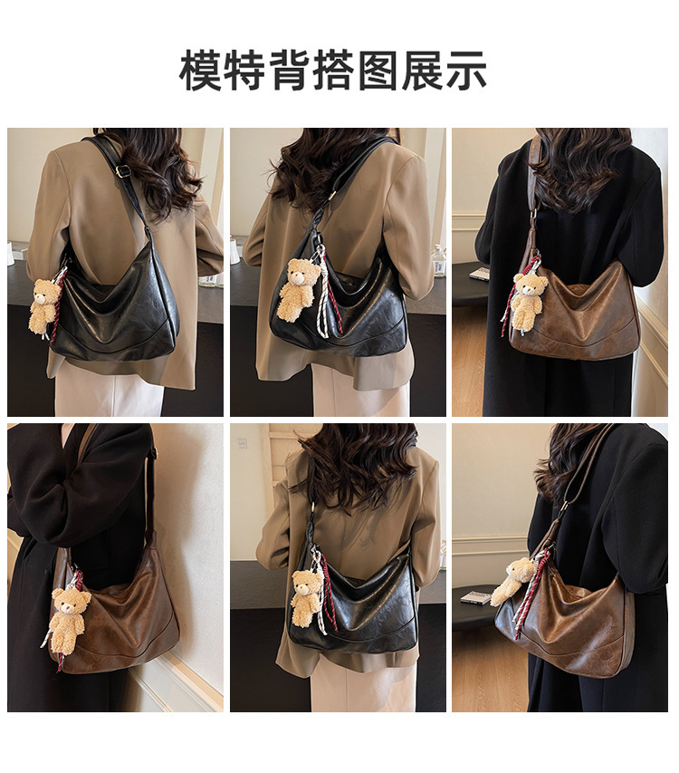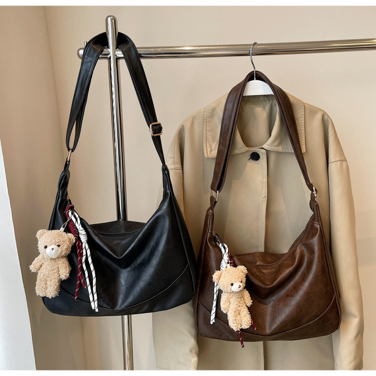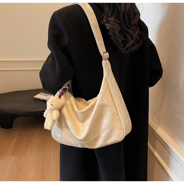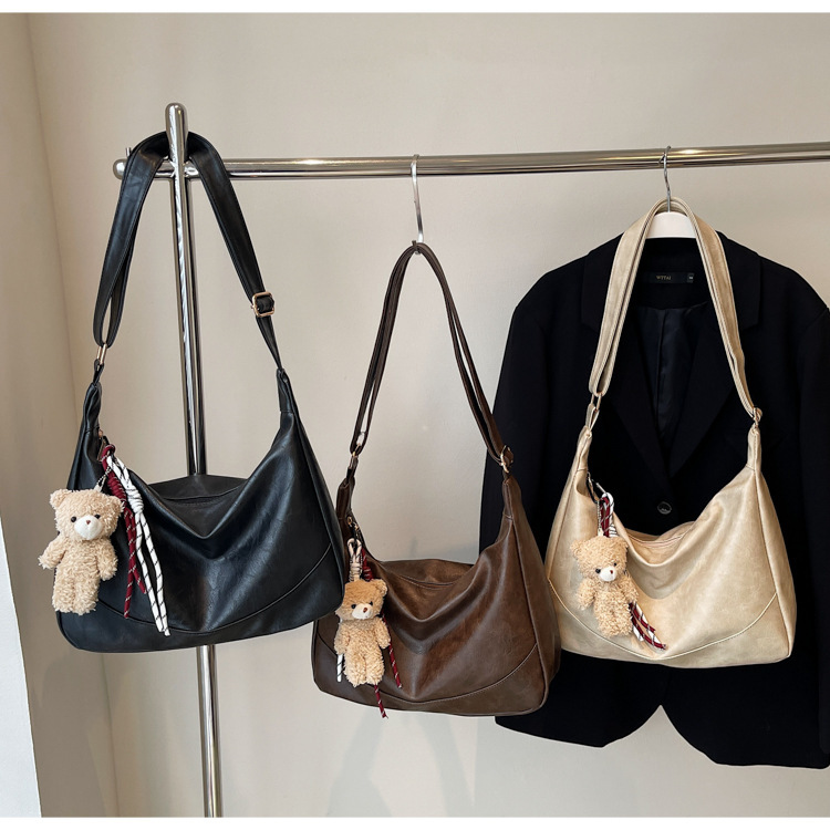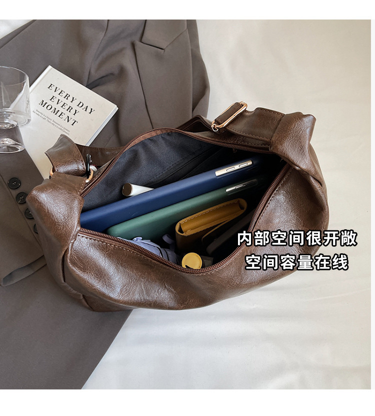 여성용 메신저 백 PU 소프트 국수 간단한 통근 작업 어깨 가방 복고풍 패션 대용량 올 매치 만두 백