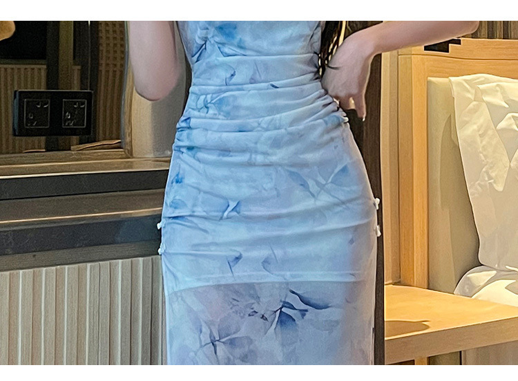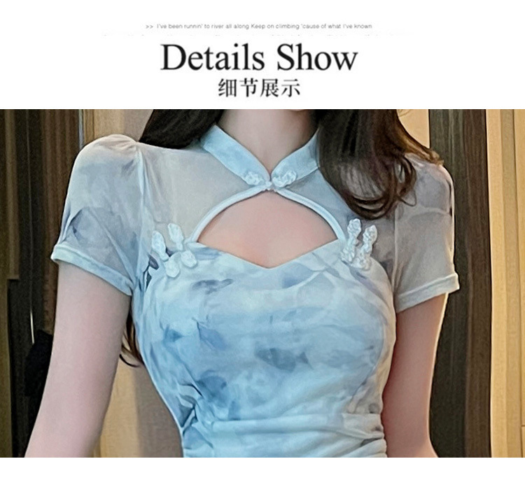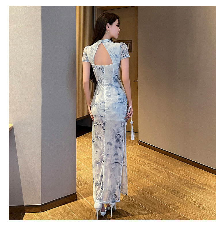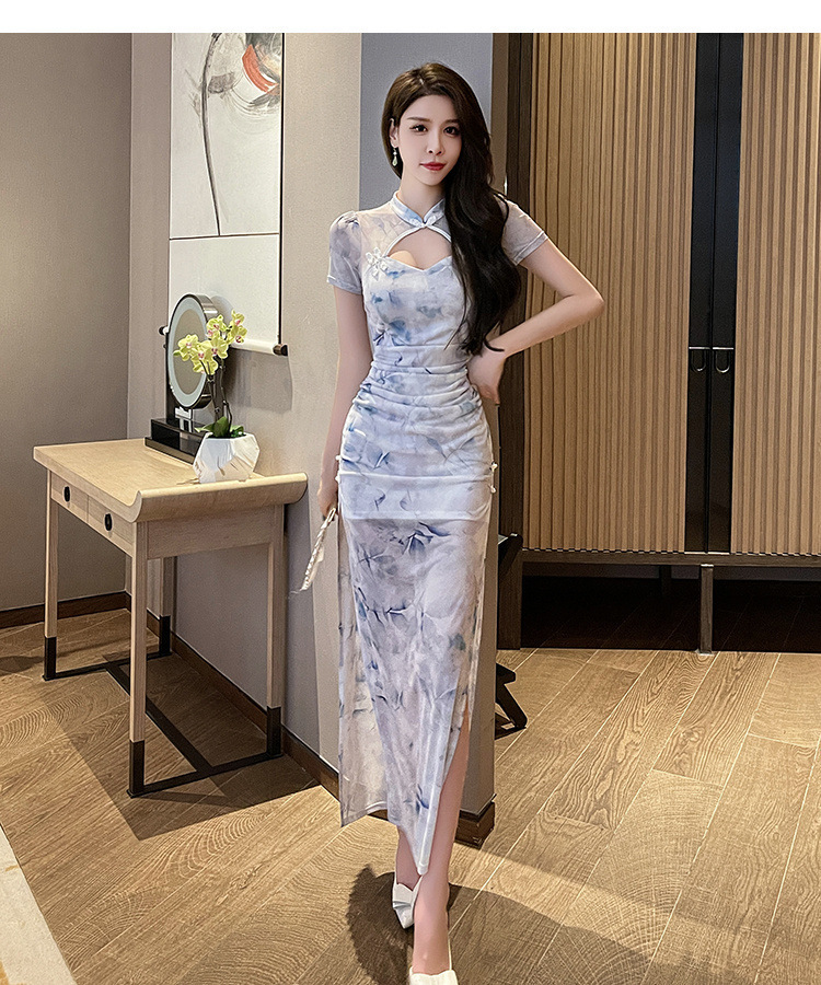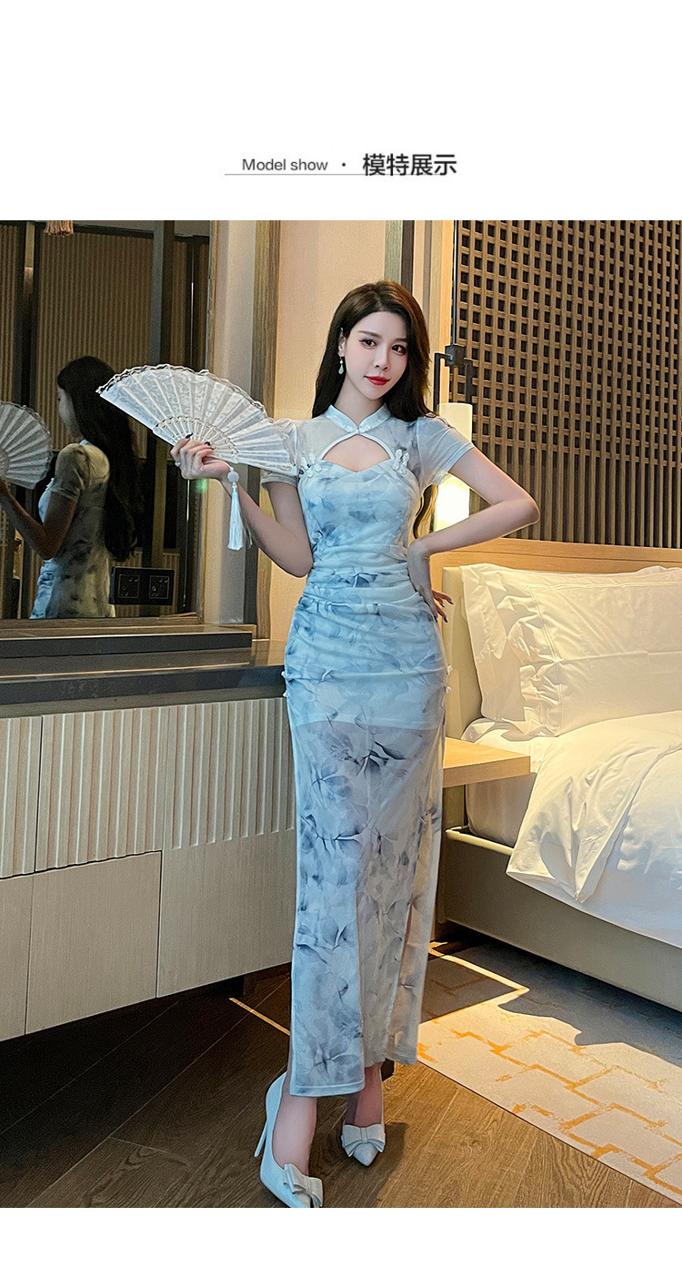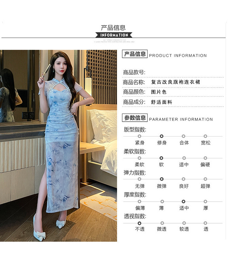 패션 국가 스타일 개선 된 청삼 원피스 발 목욕 K 송 스파 소프트 기술자 작업복 섹시한 슬림 핏 배꼽 원피스스토어 가기