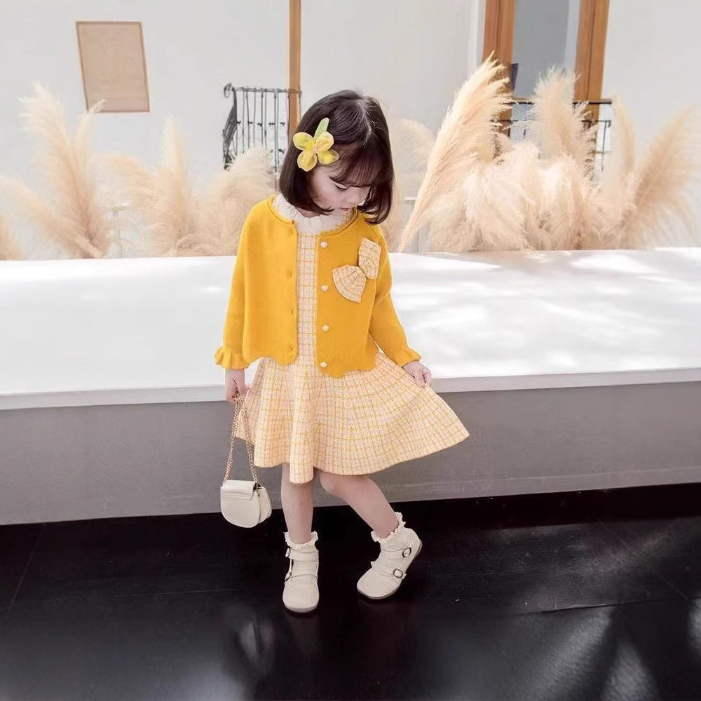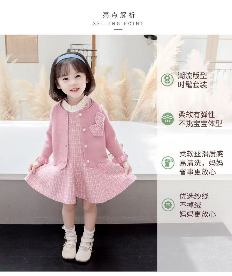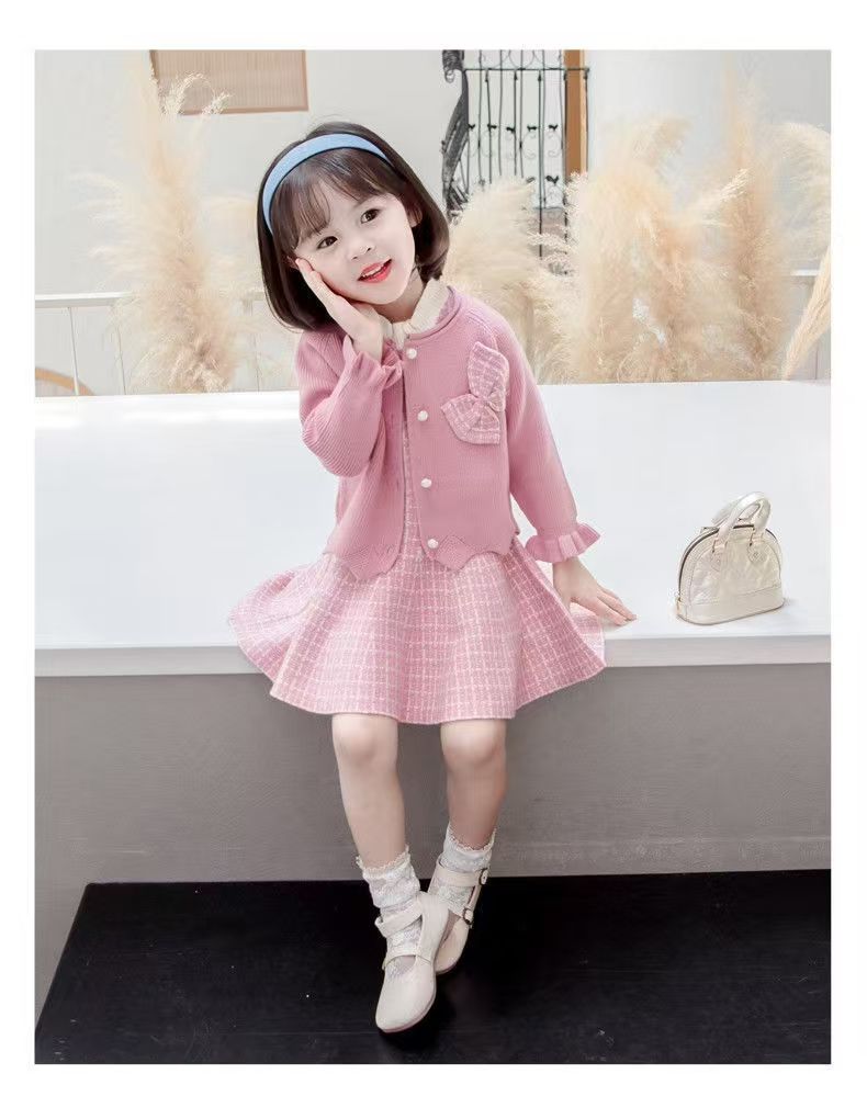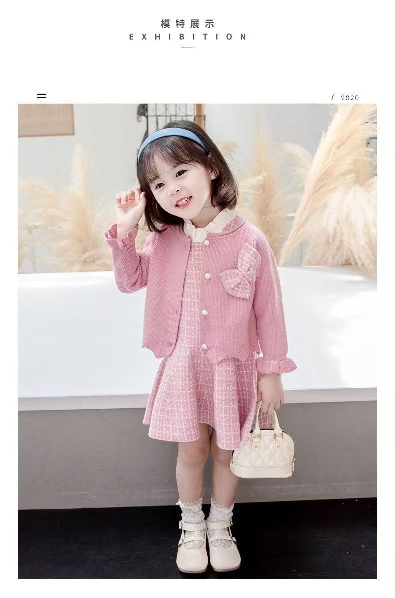 작은 향기로운 스타일 소녀의 원피스 2025 세트 봄과 가을 새로운 스타일 어린이 니트 카디건 2 피스 공주 스타일스토어 가기