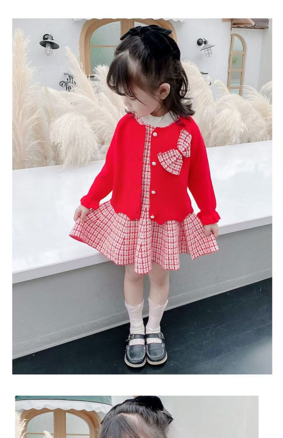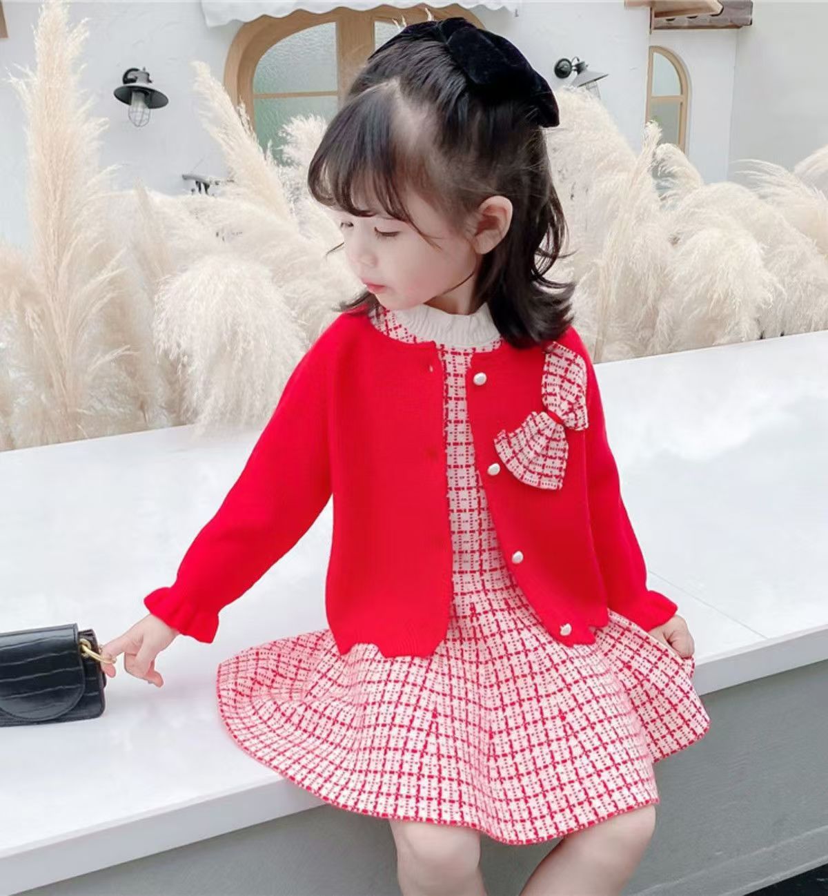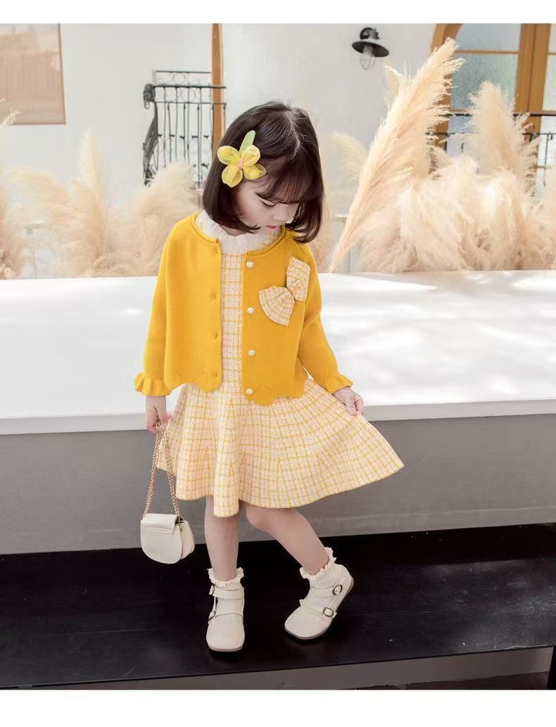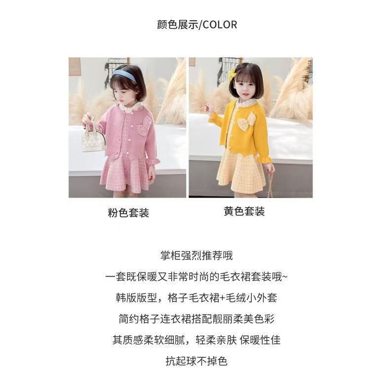 작은 향기로운 스타일 소녀의 원피스 2025 세트 봄과 가을 새로운 스타일 어린이 니트 카디건 2 피스 공주 스타일스토어 가기