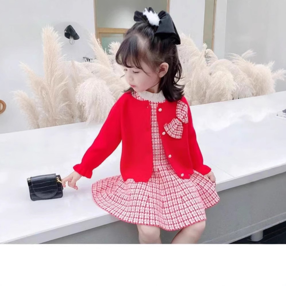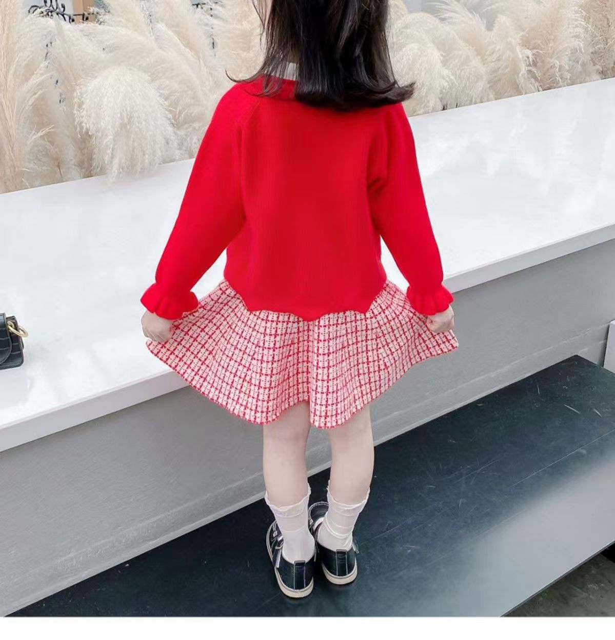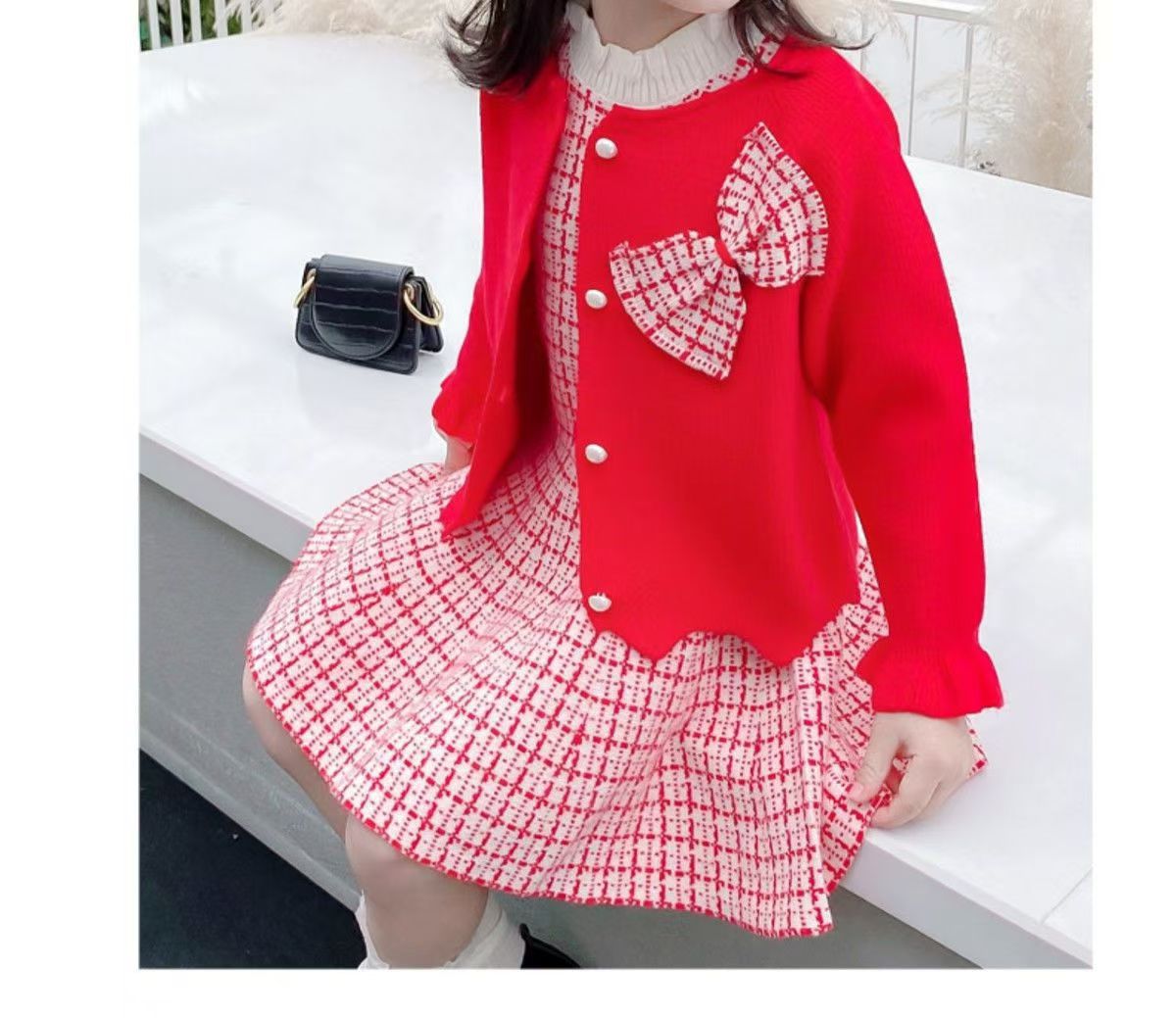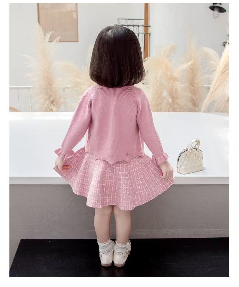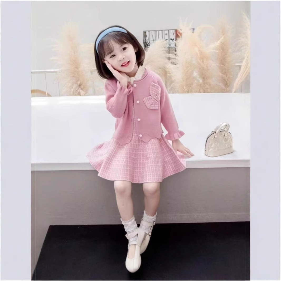 작은 향기로운 스타일 소녀의 원피스 2025 세트 봄과 가을 새로운 스타일 어린이 니트 카디건 2 피스 공주 스타일