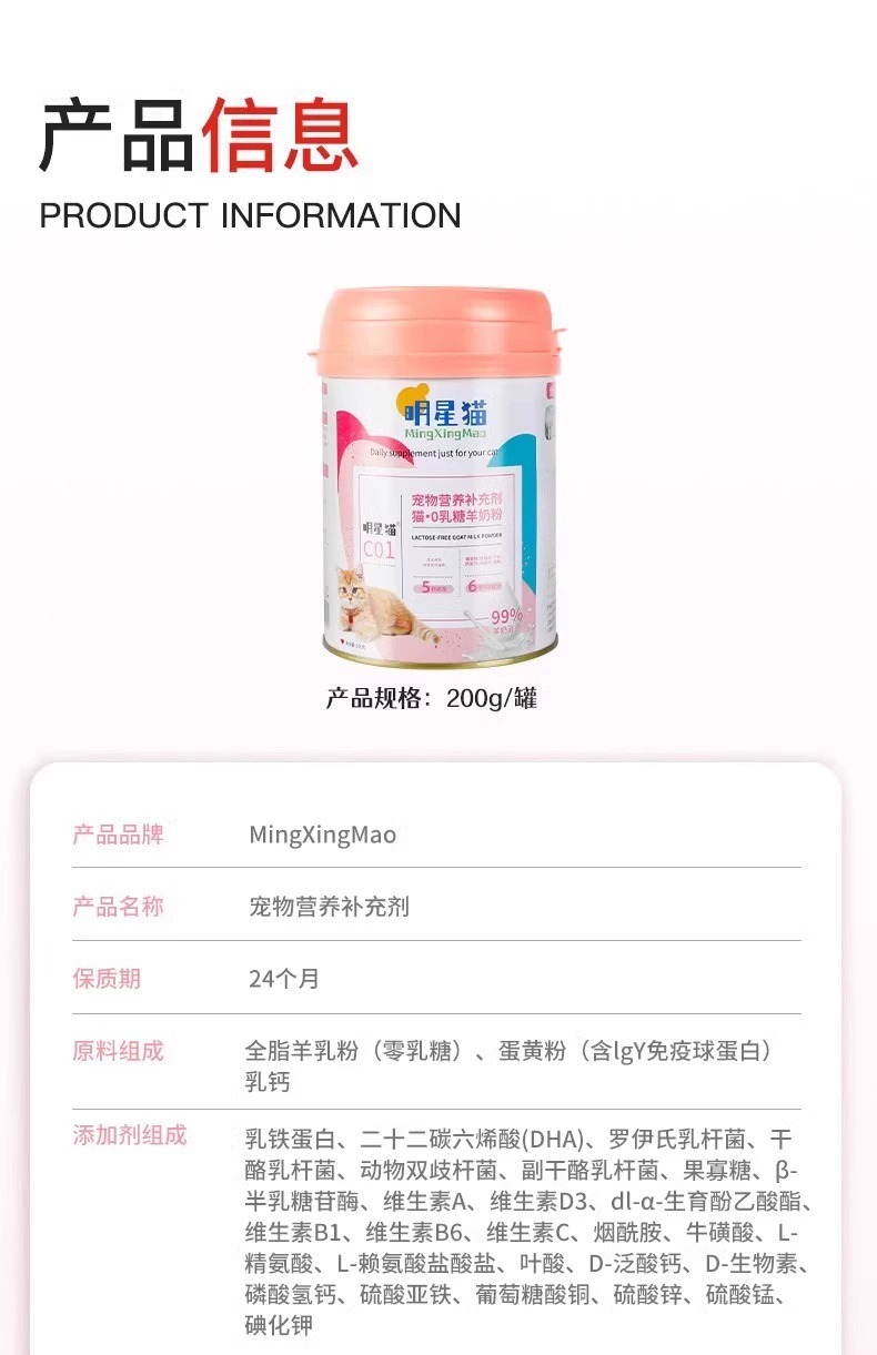 새끼 고양이를 위한 염소 우유 분말, 유당 0 고양이, 새끼 고양이를 위한 염소 우유, 칼슘 보충제, 애완 동물 영양 보충제