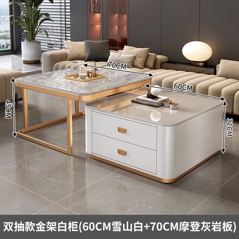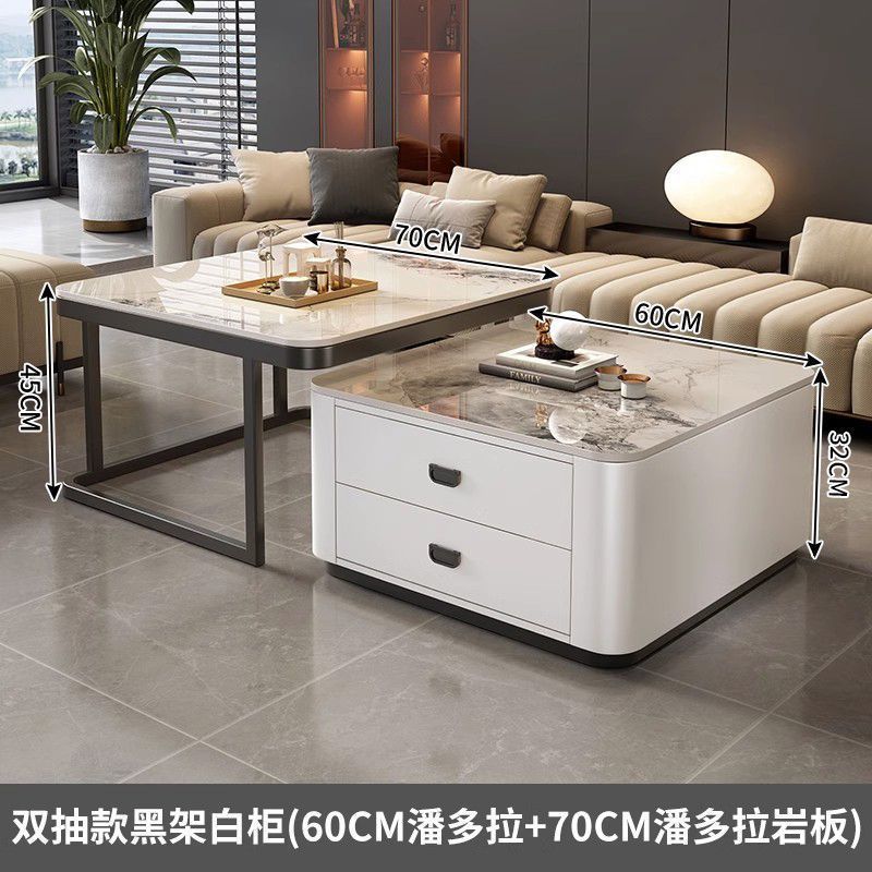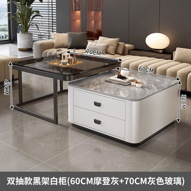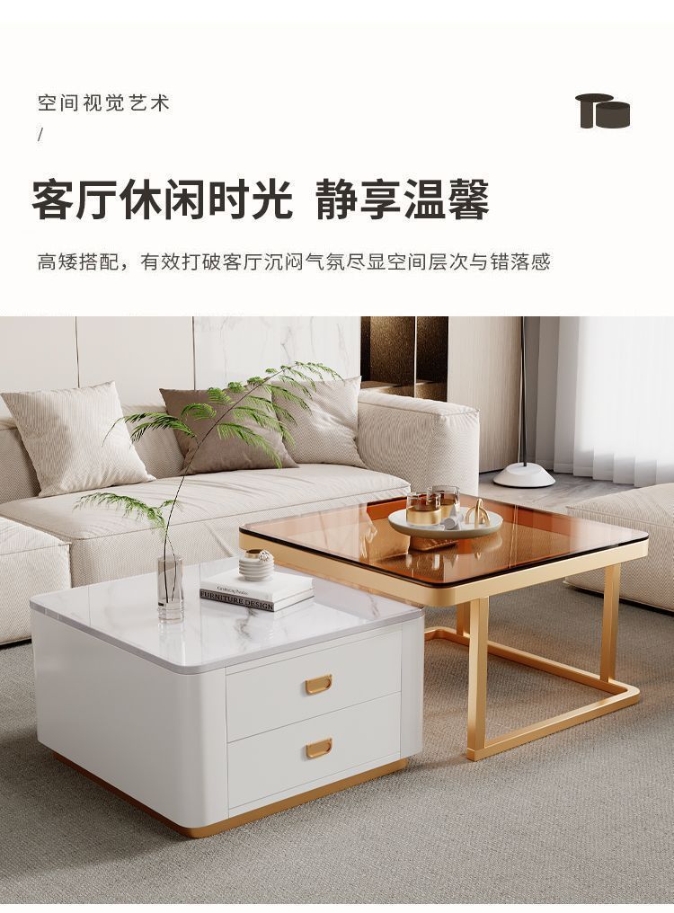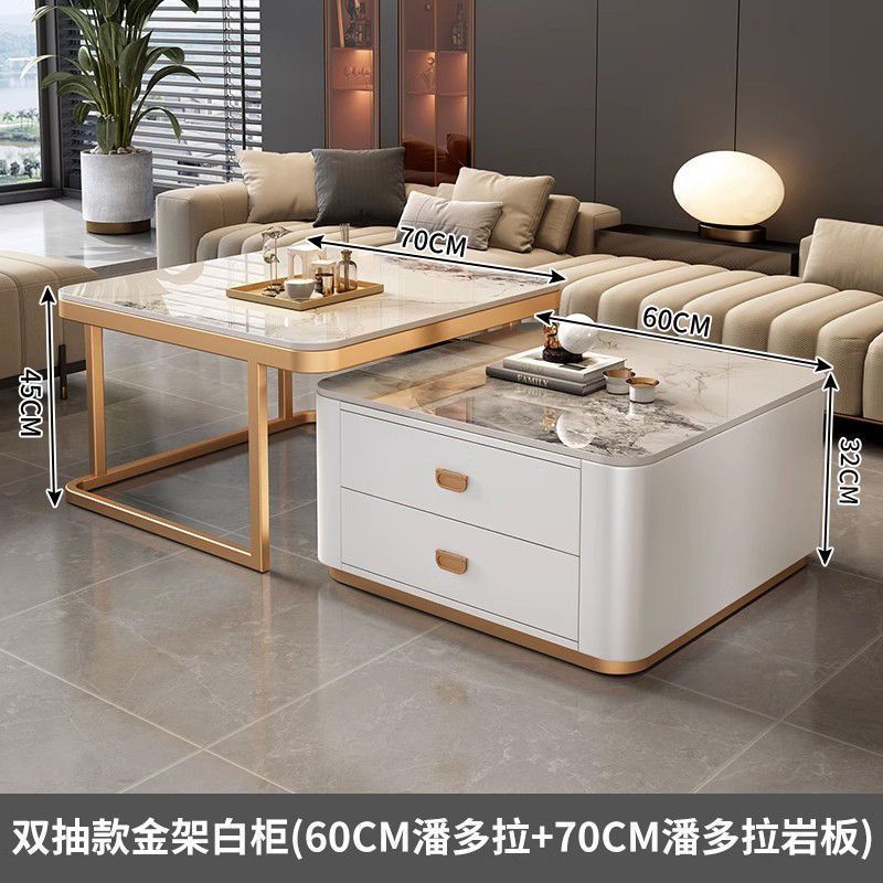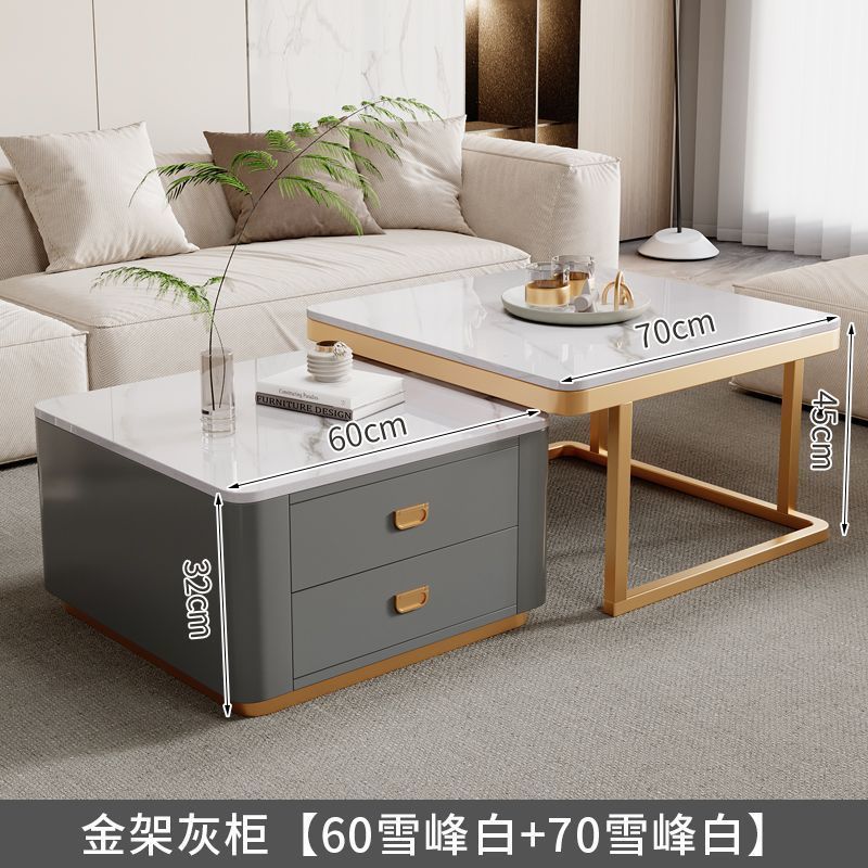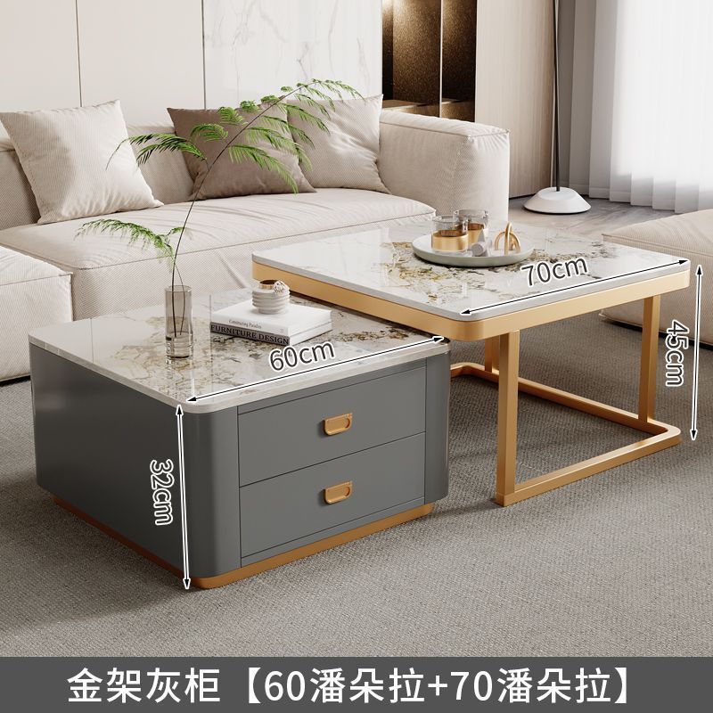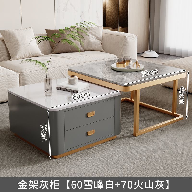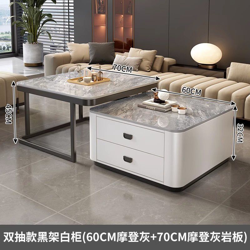 록 플레이트 스퀘어 커피 테이블 거실 홈 작은 아파트 2024 새로운 입장 럭셔리 인터넷 인기있는 창조적 인 작은 커피 테이블 간단한 현대