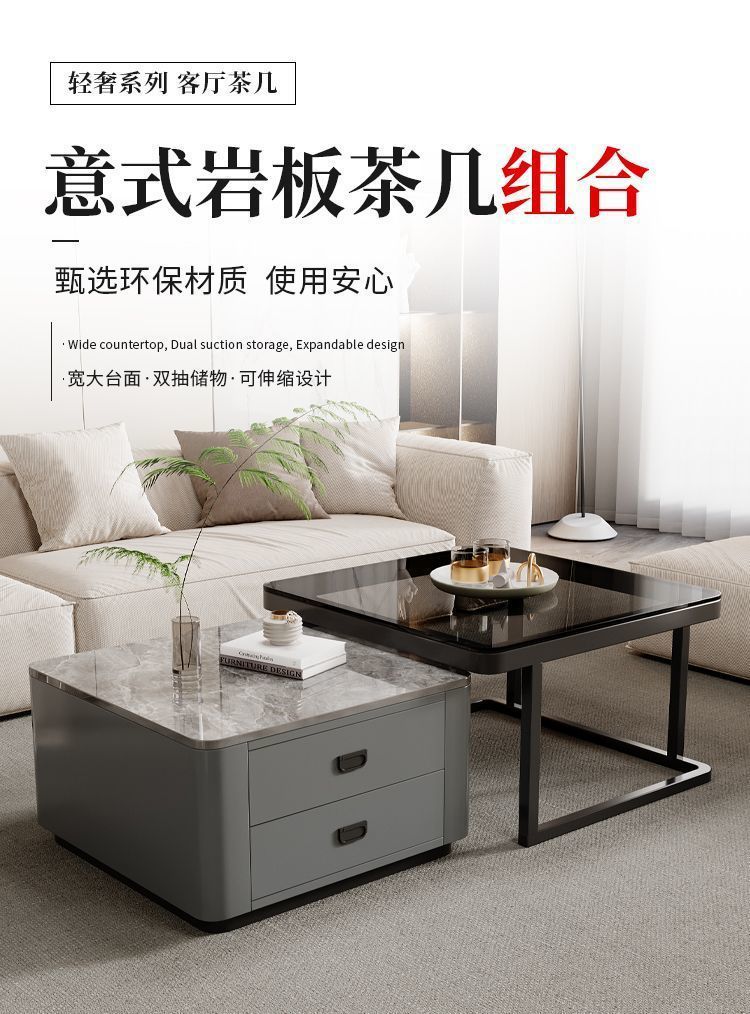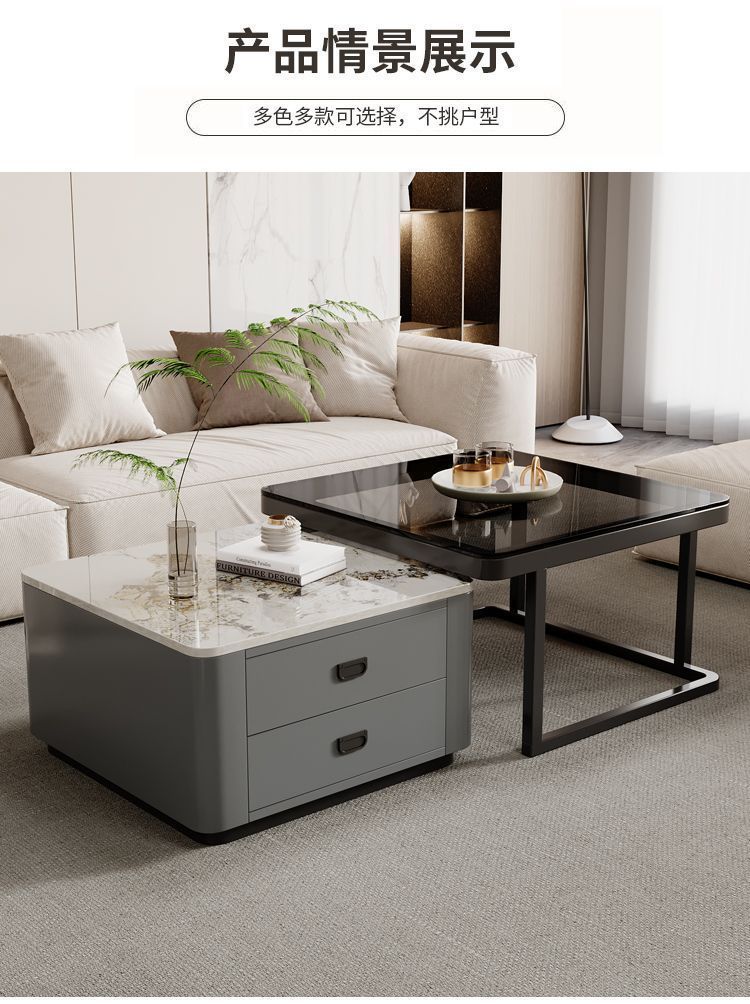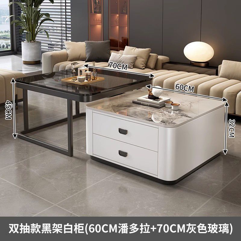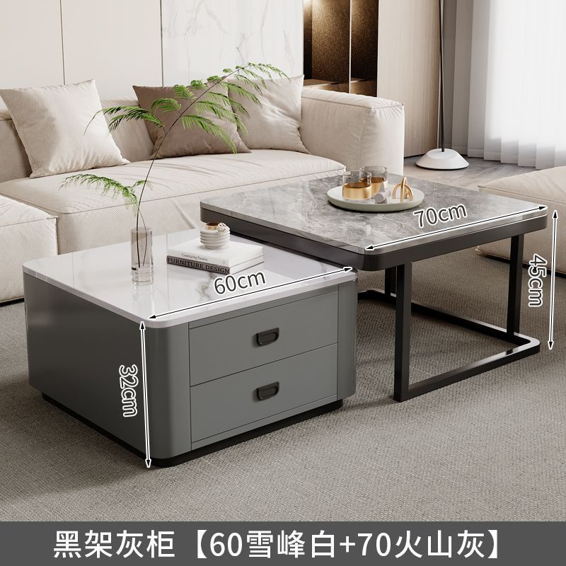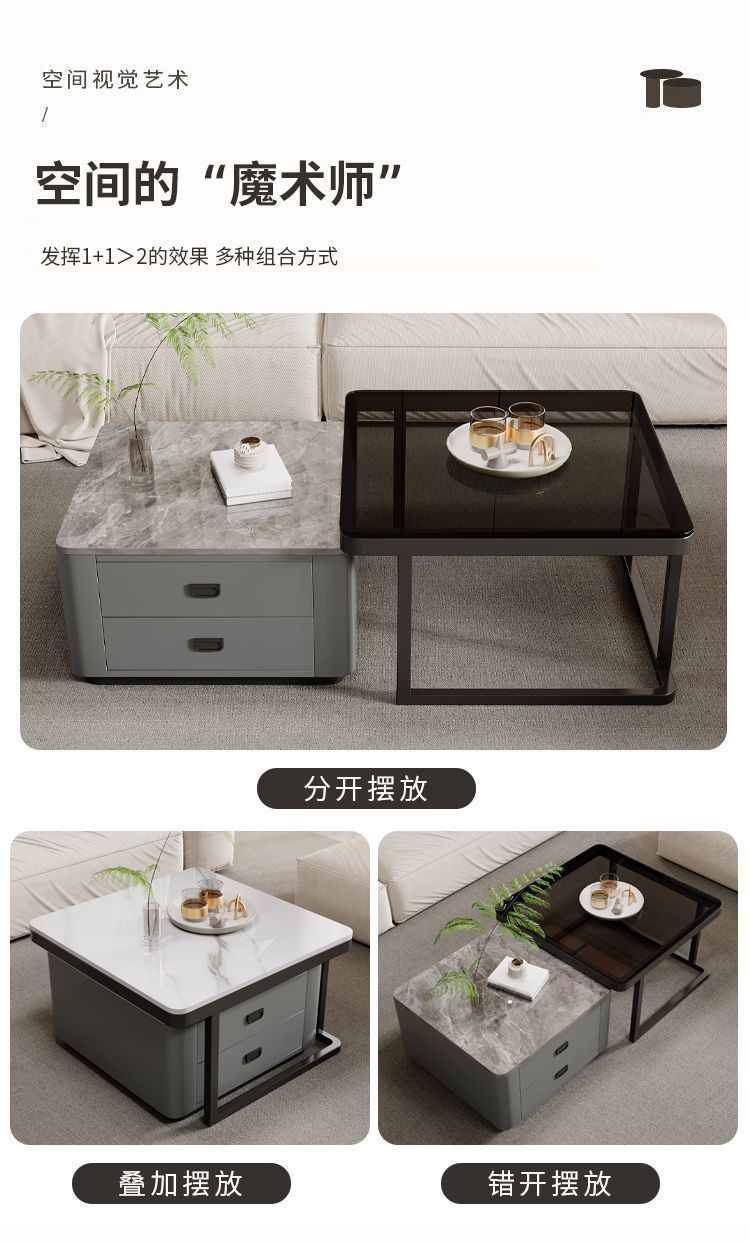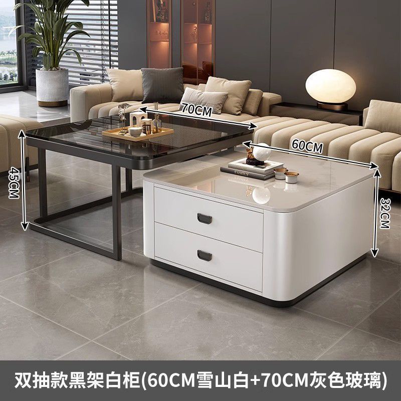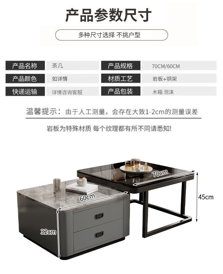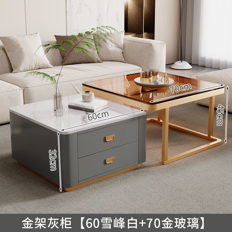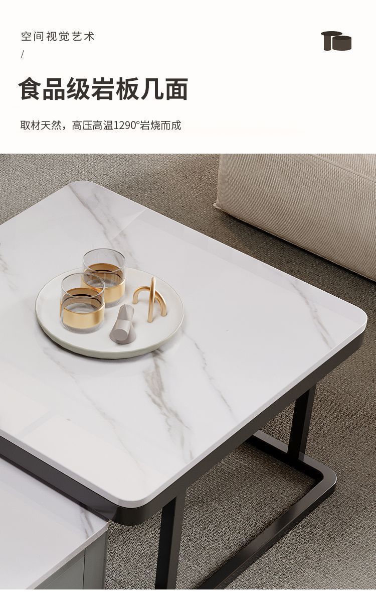 록 플레이트 스퀘어 커피 테이블 거실 홈 작은 아파트 2024 새로운 입장 럭셔리 인터넷 인기있는 창조적 인 작은 커피 테이블 간단한 현대