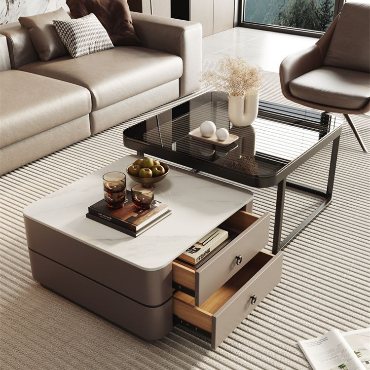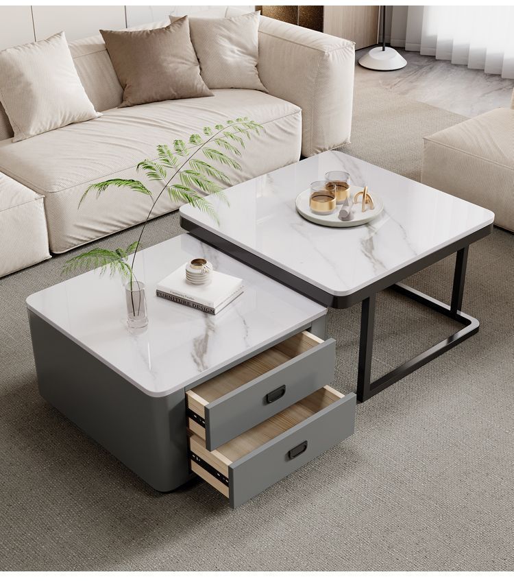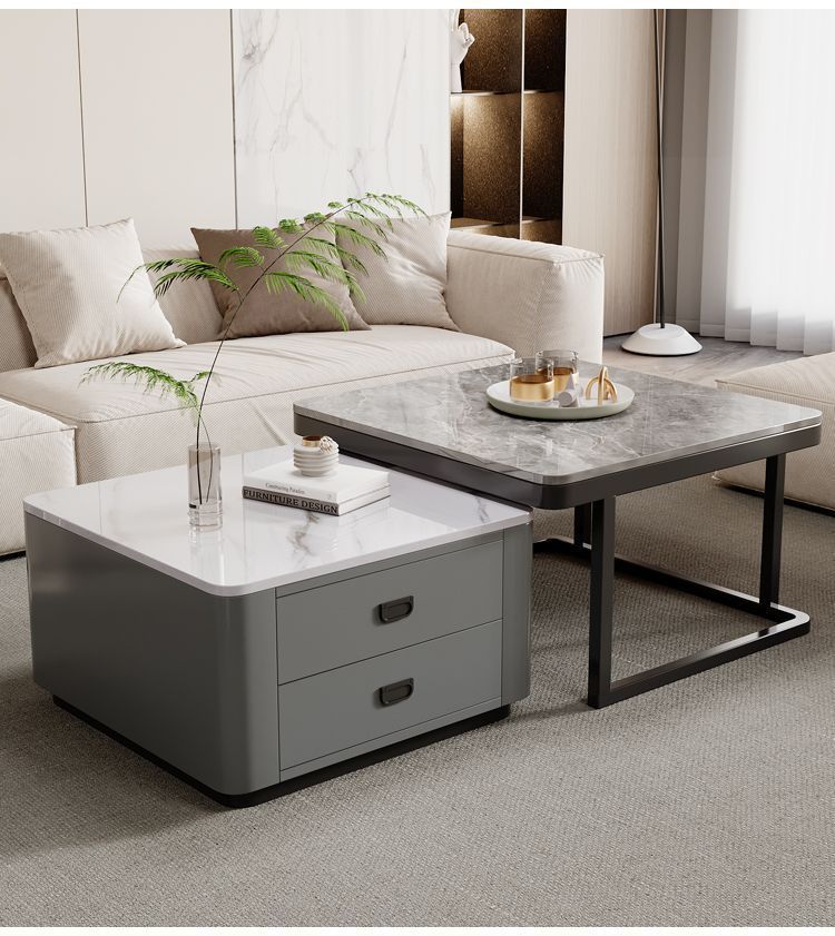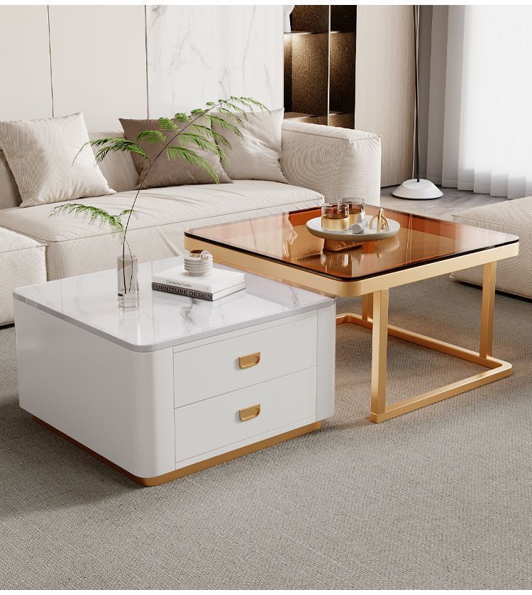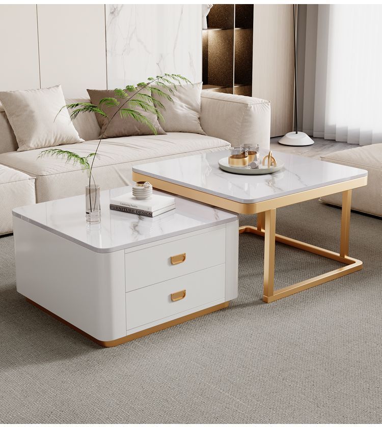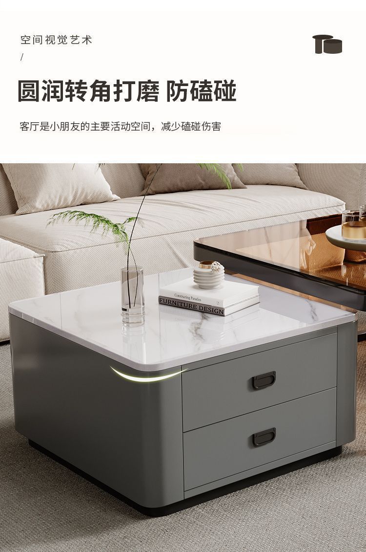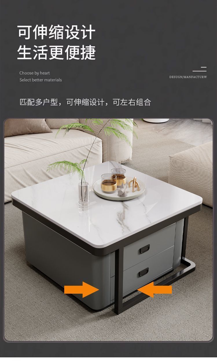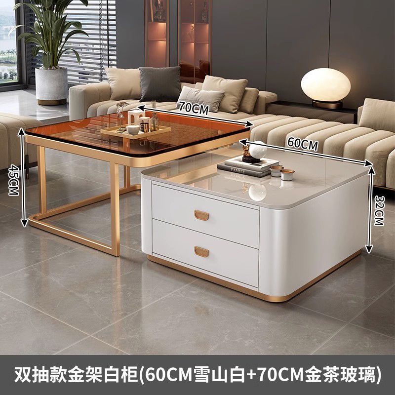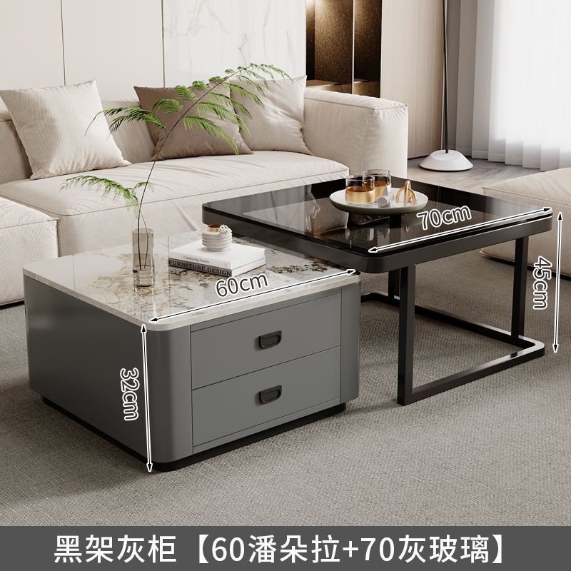 록 플레이트 스퀘어 커피 테이블 거실 홈 작은 아파트 2024 새로운 입장 럭셔리 인터넷 인기있는 창조적 인 작은 커피 테이블 간단한 현대