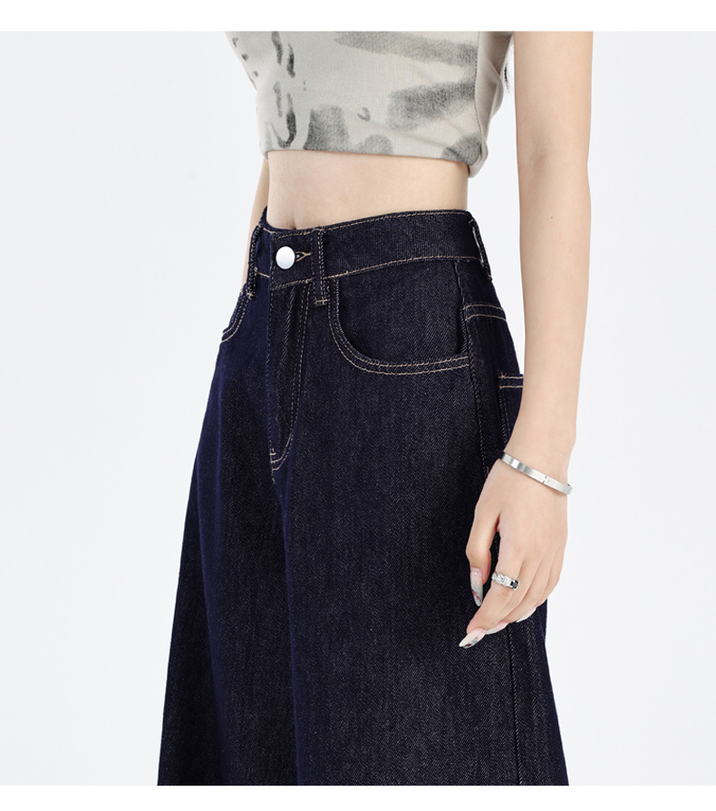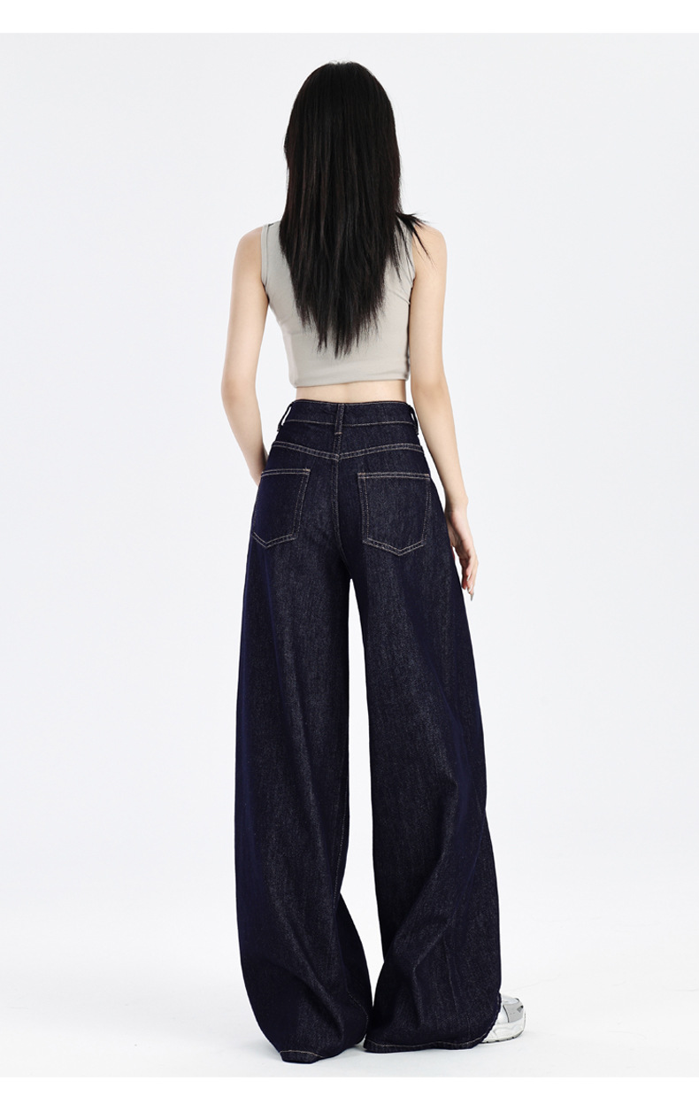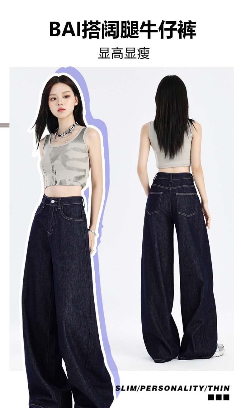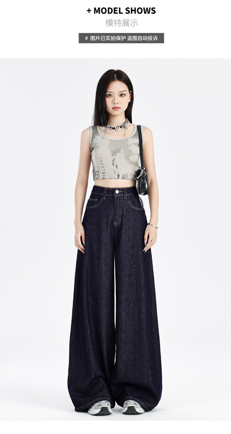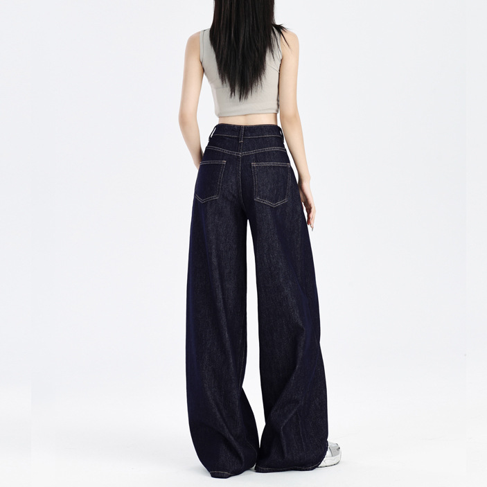 주의 순간 봄과 여름 다크 블루 미국 스타일 드레이핑 넓은 다리 청바지 높은 허리 슬리밍 작은 직선 다리 바지 여성스토어 가기