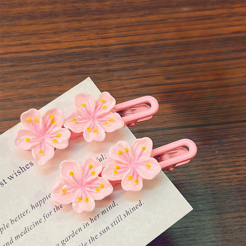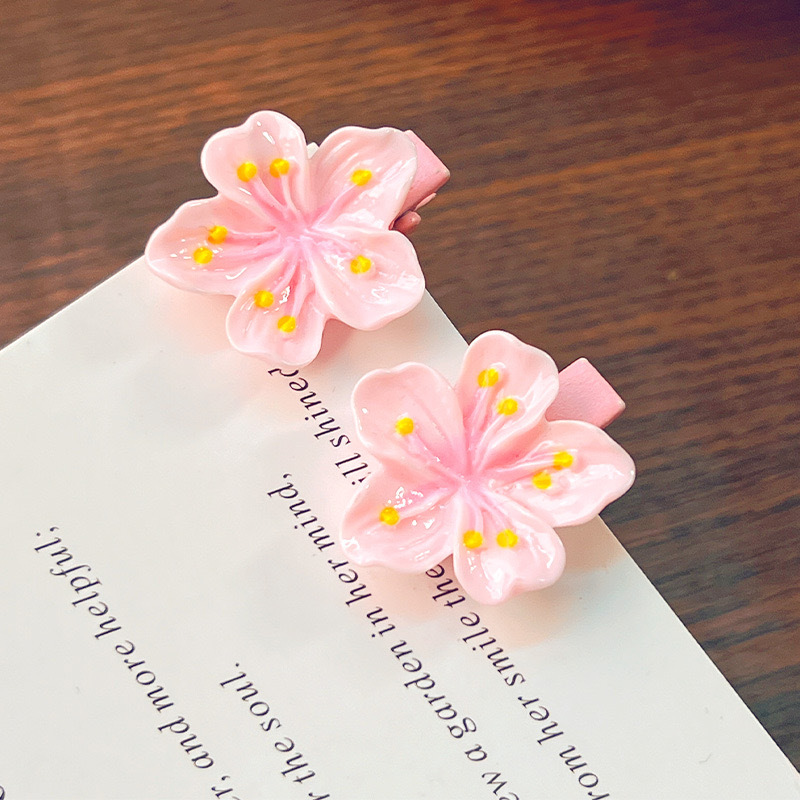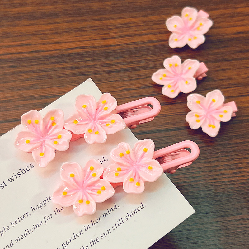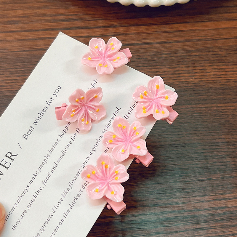 핑크 벚꽃 클립 어린이 헤어핀 고무 텐돈 물결 모양의 사이드 클립 어린 소녀의 헤어 밴드 헤어 로프 헤어 클립 머리 부상 머리 머리 머리 클립 없음 머리 부상 머리 주소