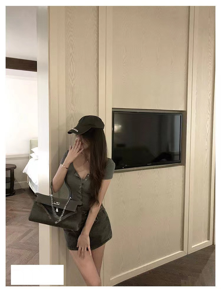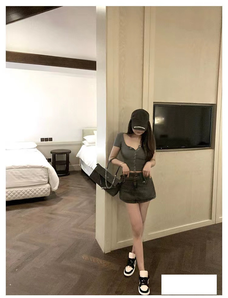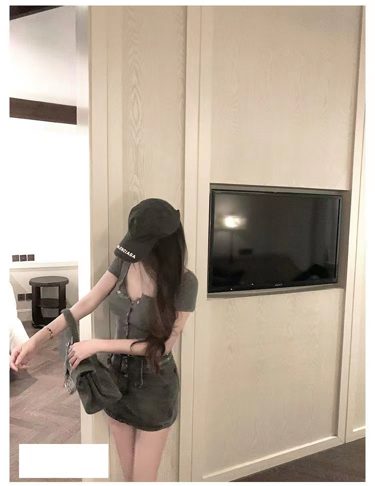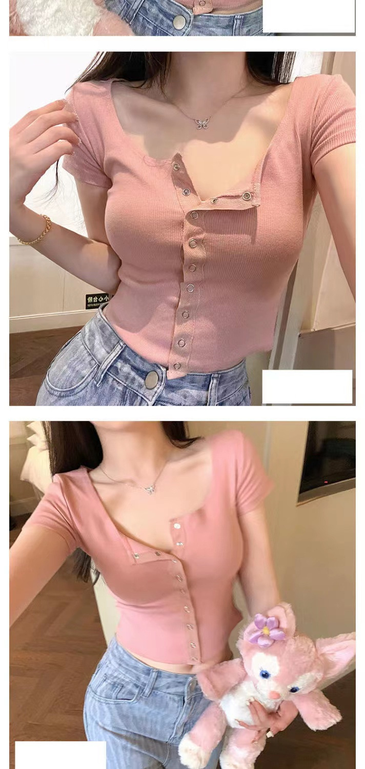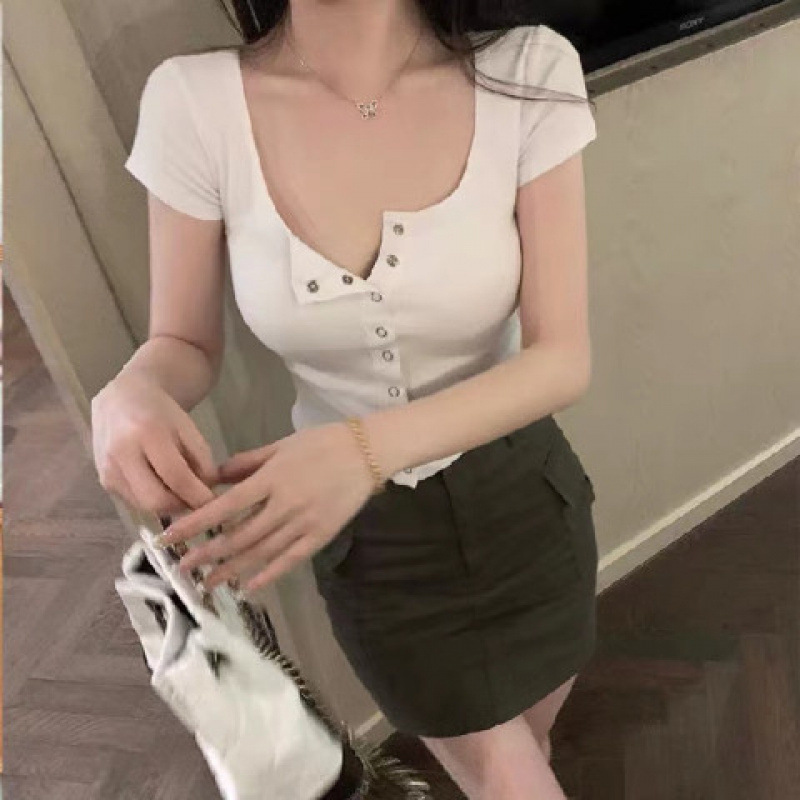 순수한 욕망 스타일 U-넥 반팔 티셔츠 여성 2025 년 여름 새로운 디자인 센스 슬림핏 베이스 셔츠 뜨거운 여자 섹시한 탑 쇼트