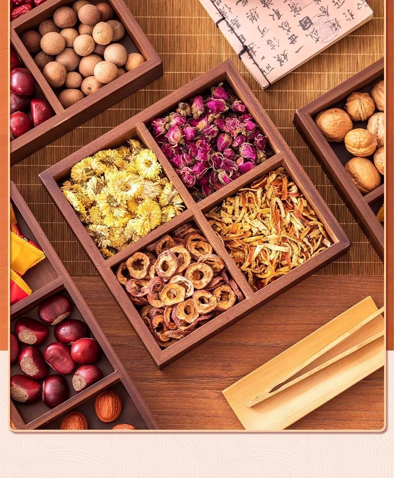 티 트레이 과일 플레이트 스낵 플레이트 4 사각형 나무 9 사각형 말린 과일 플레이트