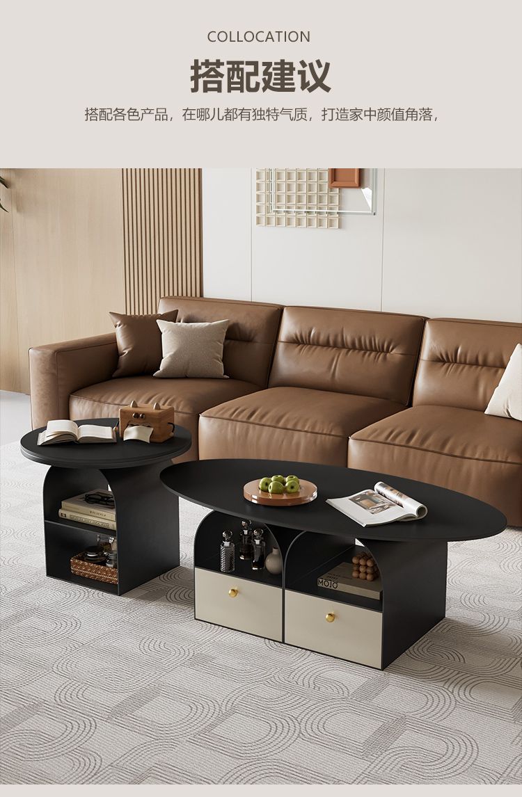 타원형 크림 락 보드 커피 테이블 거실 홈 라이트 럭셔리 간단한 현대 새로운 창조적 인 작은 아파트 인터넷 유명 인사 조합
