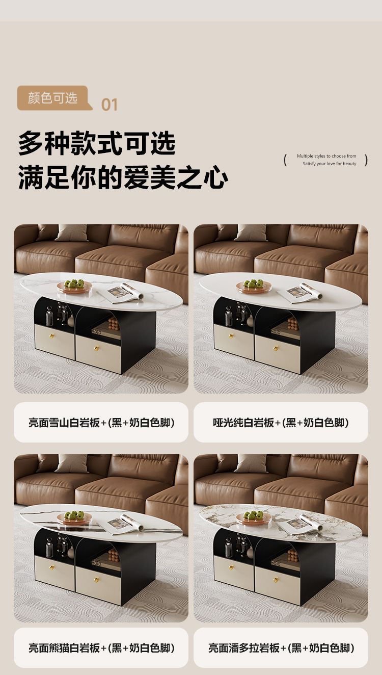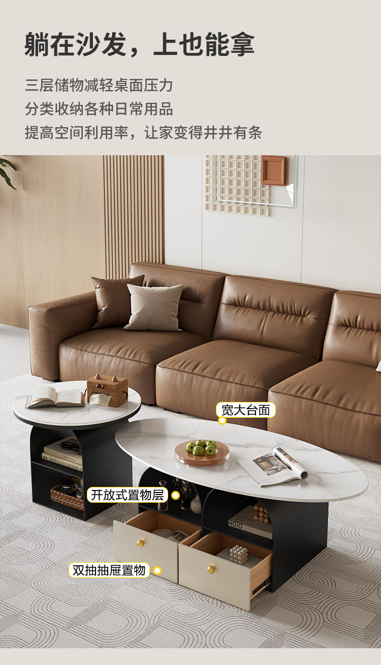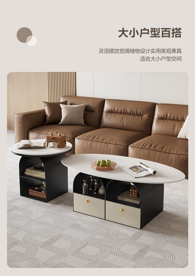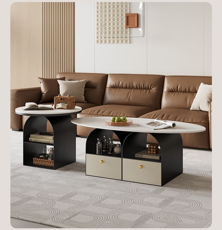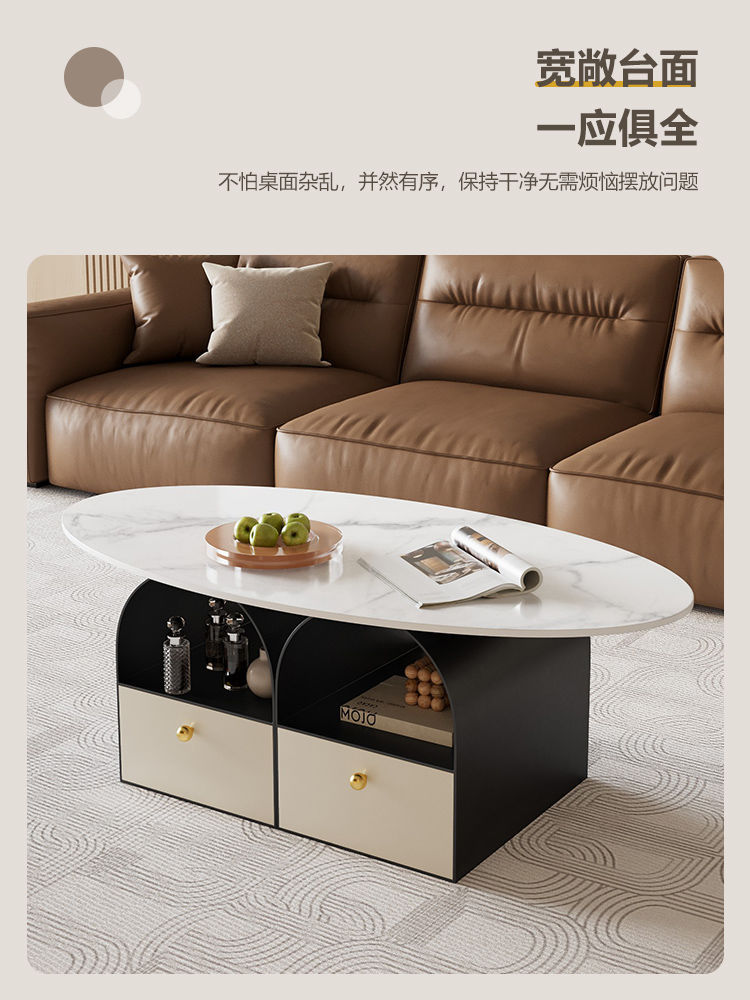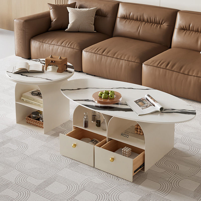 타원형 크림 락 보드 커피 테이블 거실 홈 라이트 럭셔리 간단한 현대 새로운 창조적 인 작은 아파트 인터넷 유명 인사 조합스토어 가기