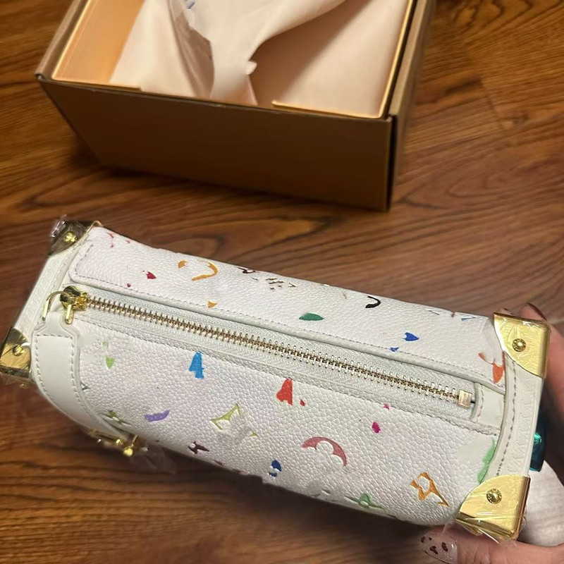 새로운 Tricolor 시리즈 Gu Ailing Crossbody 가방 정품 가죽 양각 상자 쉘 가방 패션 휴대용 하이 엔드 언더암