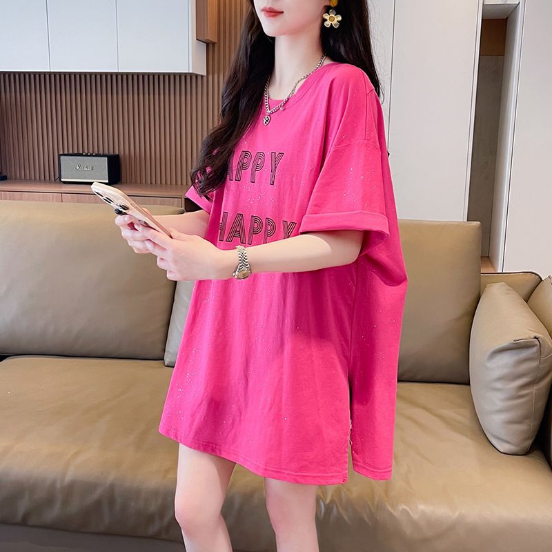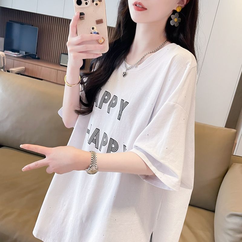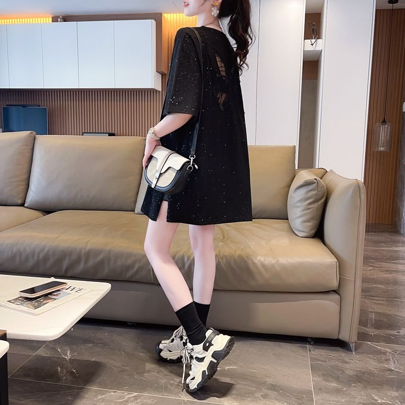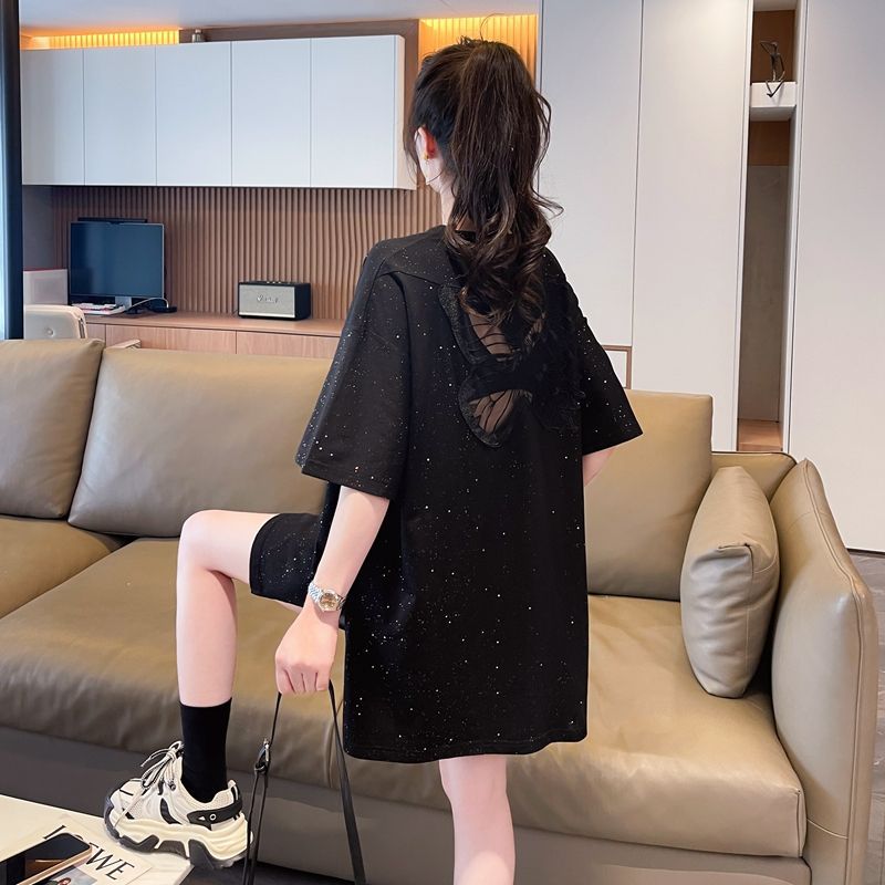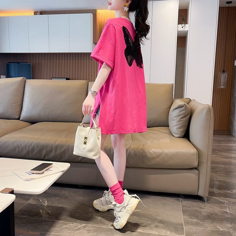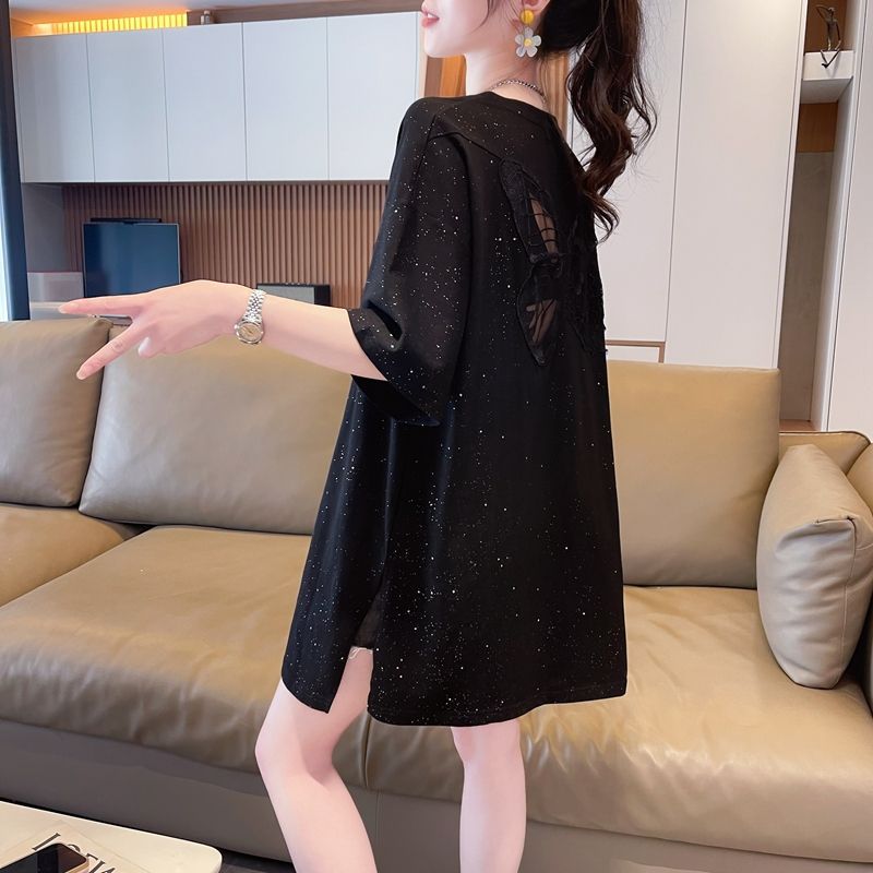 나비 메쉬 백리스 코튼 반팔 티셔츠 여성 여름 새로운 한국식 느슨한 플러스 사이즈 분할 디자인 탑스토어 가기