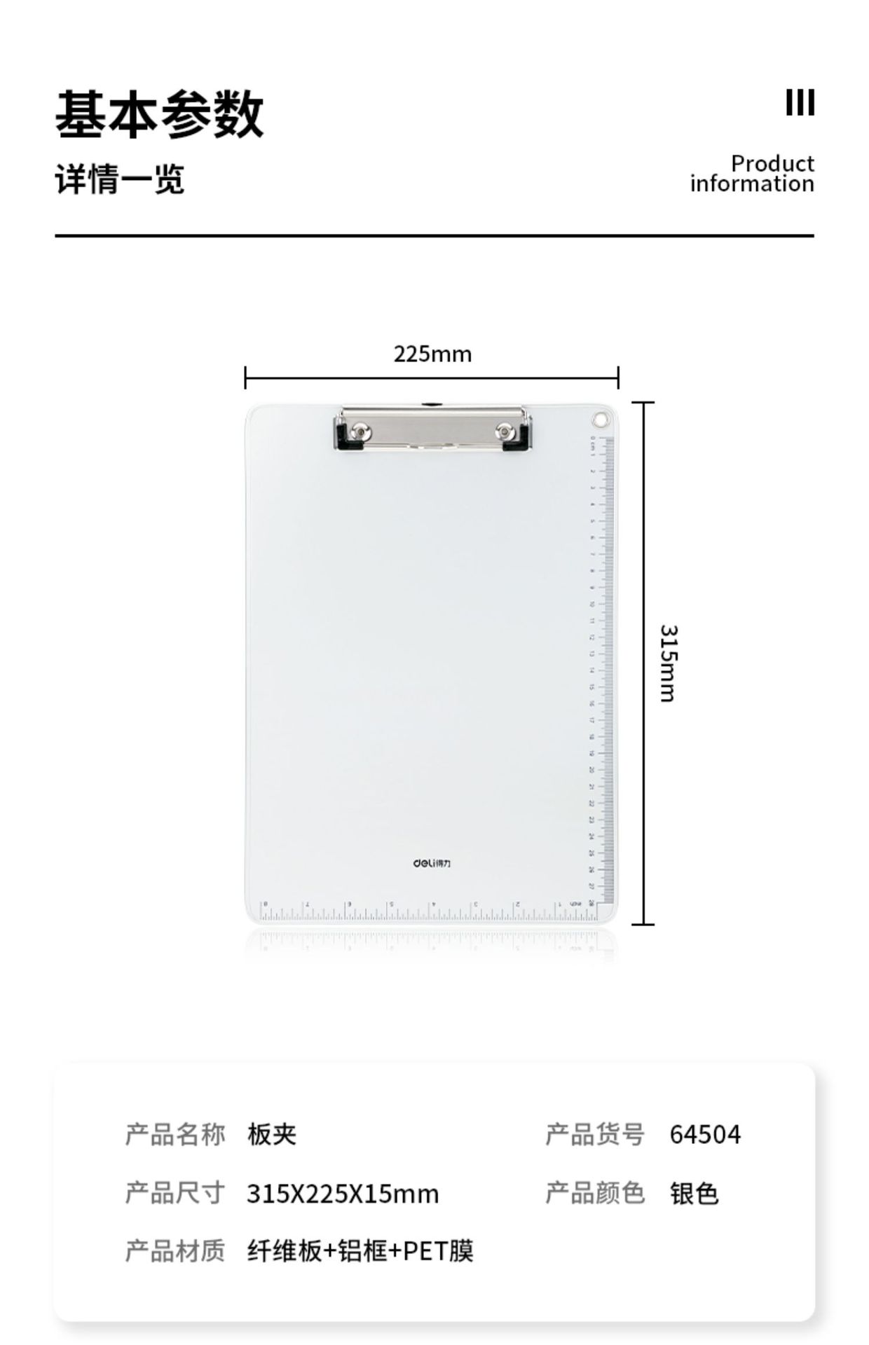 델리 보드 클립 64504 알루미늄 프레임 A4 필기용 하드 노트보드 패드 보드 클립 도매스토어 가기