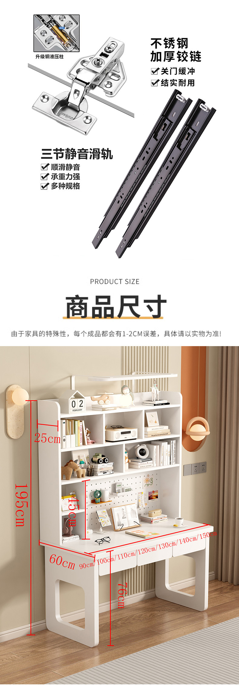 • ENF 구형 모델 [크림 화이트] 40mm 두께의 데스크탑/테이블 다리 + LED 접이식 조명 + 패키지 설치