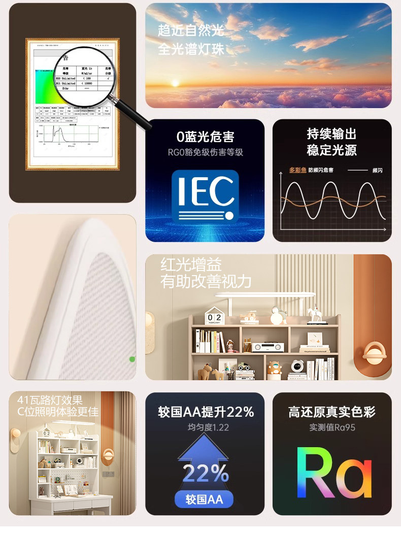 • ENF 신형 [크림 화이트] 40mm 두께의 데스크탑/테이블 다리 + 풀 스펙트럼 눈 보호 램프(Mijia)|Xiaoai AI 지능형 연결) + 설치 패키지