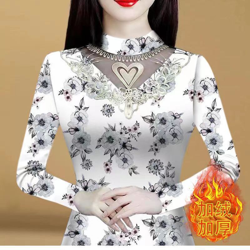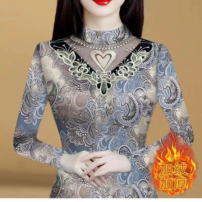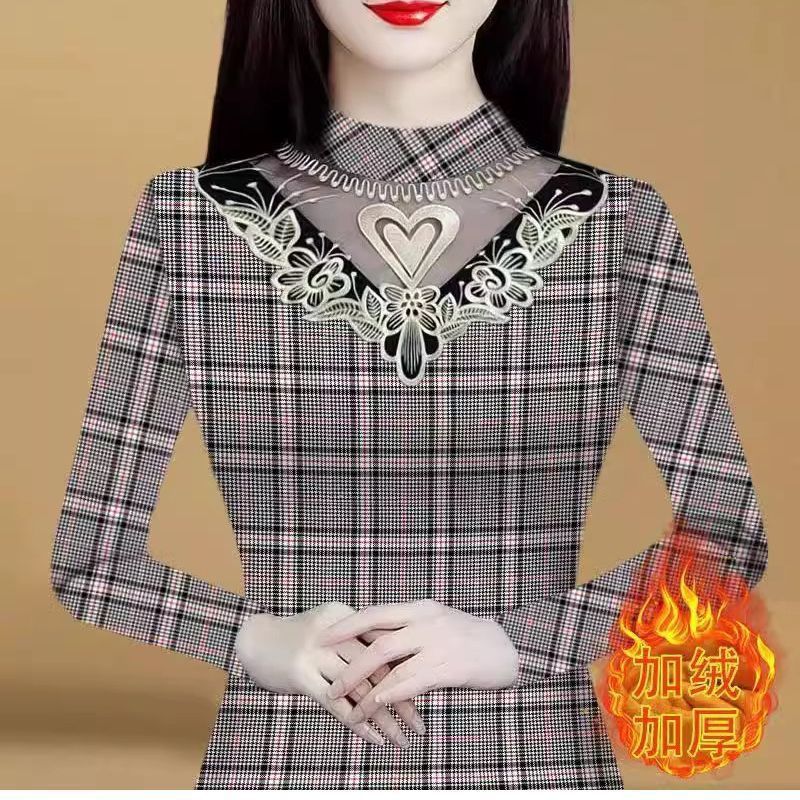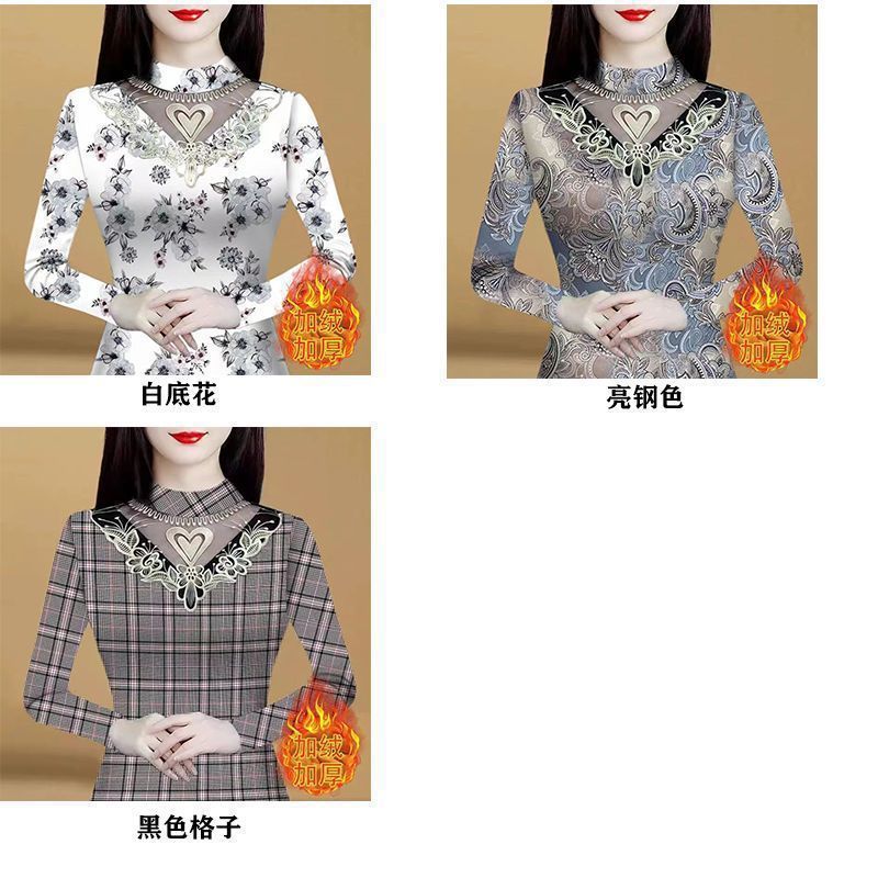 2024 새로운 양면 벨벳 바닥 셔츠 여성의 가을과 겨울 따뜻한 중년 어머니 싱글 착용 이너 긴팔 티셔츠 탑스토어 가기